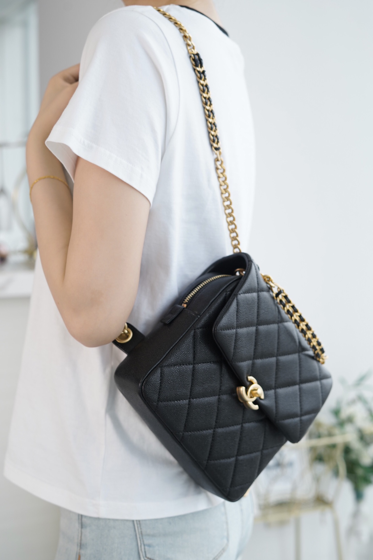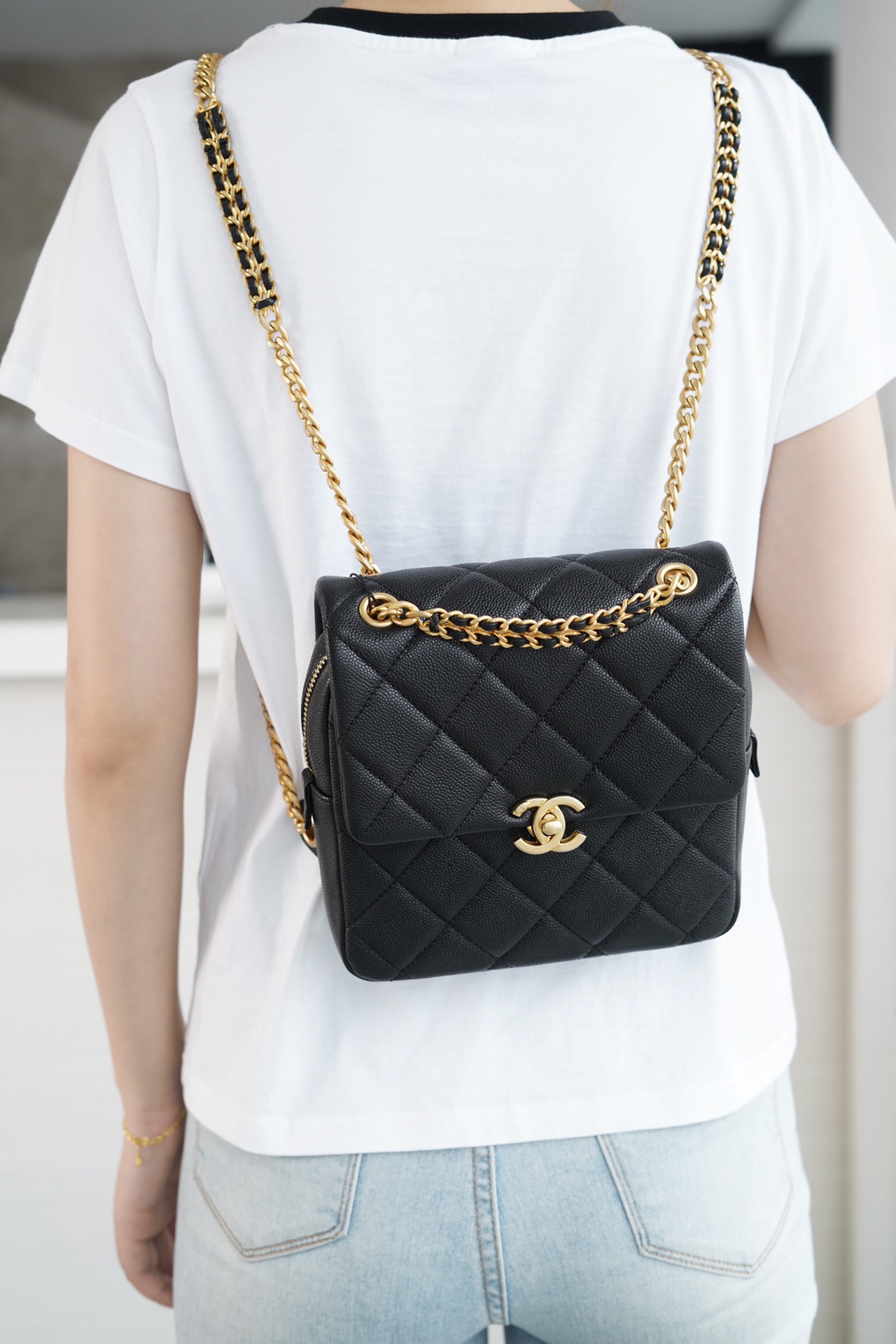 成功解放双手神器,优雅小巧、精致可爱,丝毫没有双肩包的厚重感,尤其表扬肩带的设计,虽是金属链条??,但是做了加宽得处理,不累肩膀轻松出行,容量很ok,日常出行放的全都能放得下,赞赞赞??