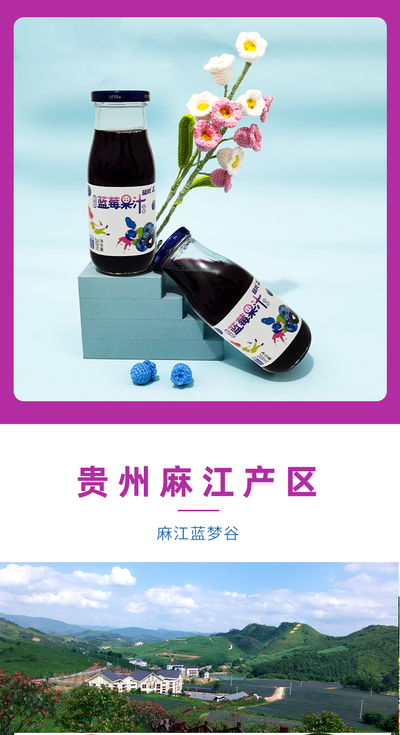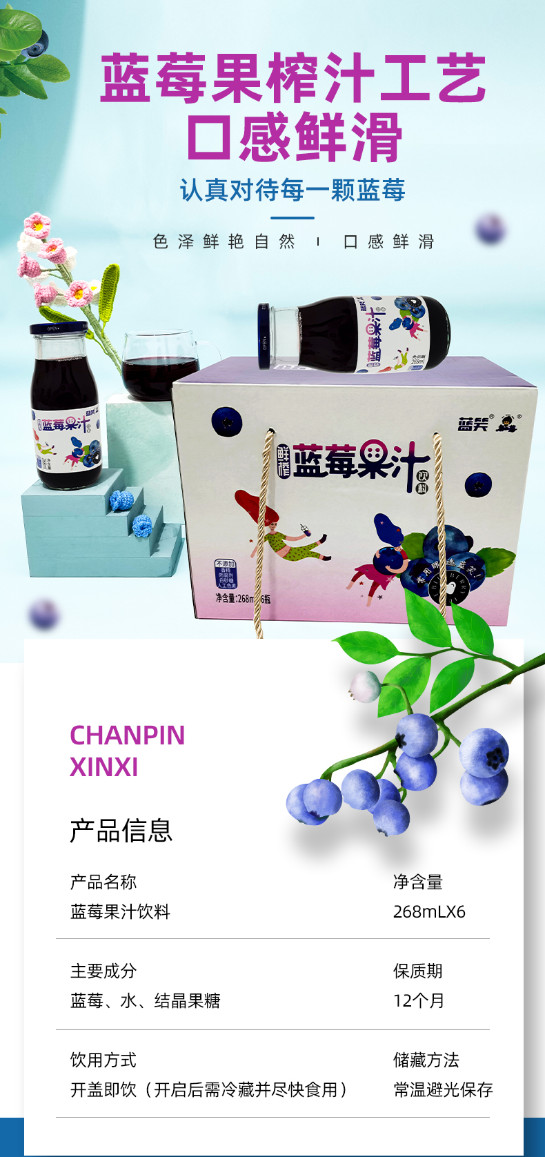 贵州黔东南蓝笑蓝莓果汁((原汁含量≥80%)268ml*6瓶 礼盒装