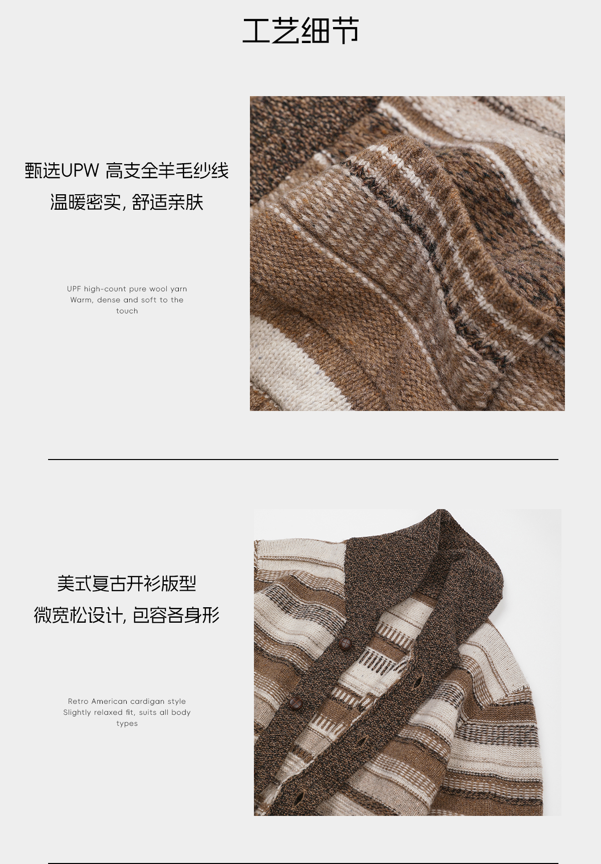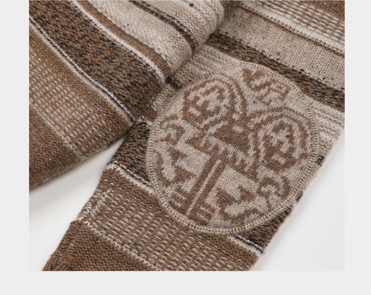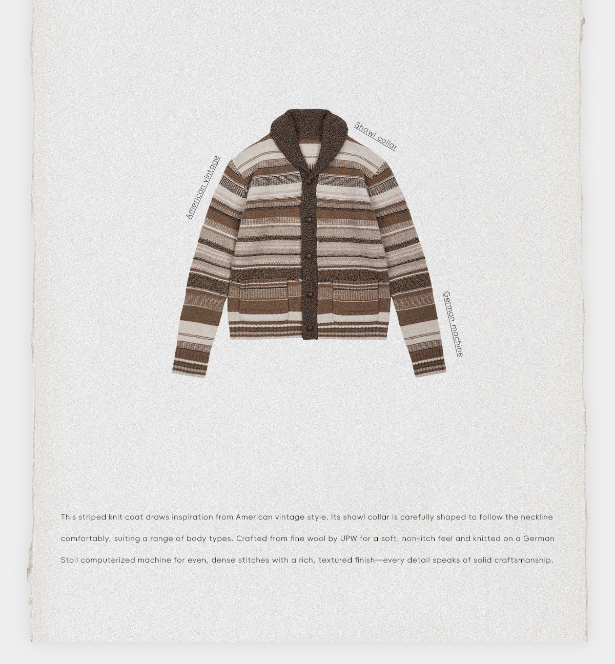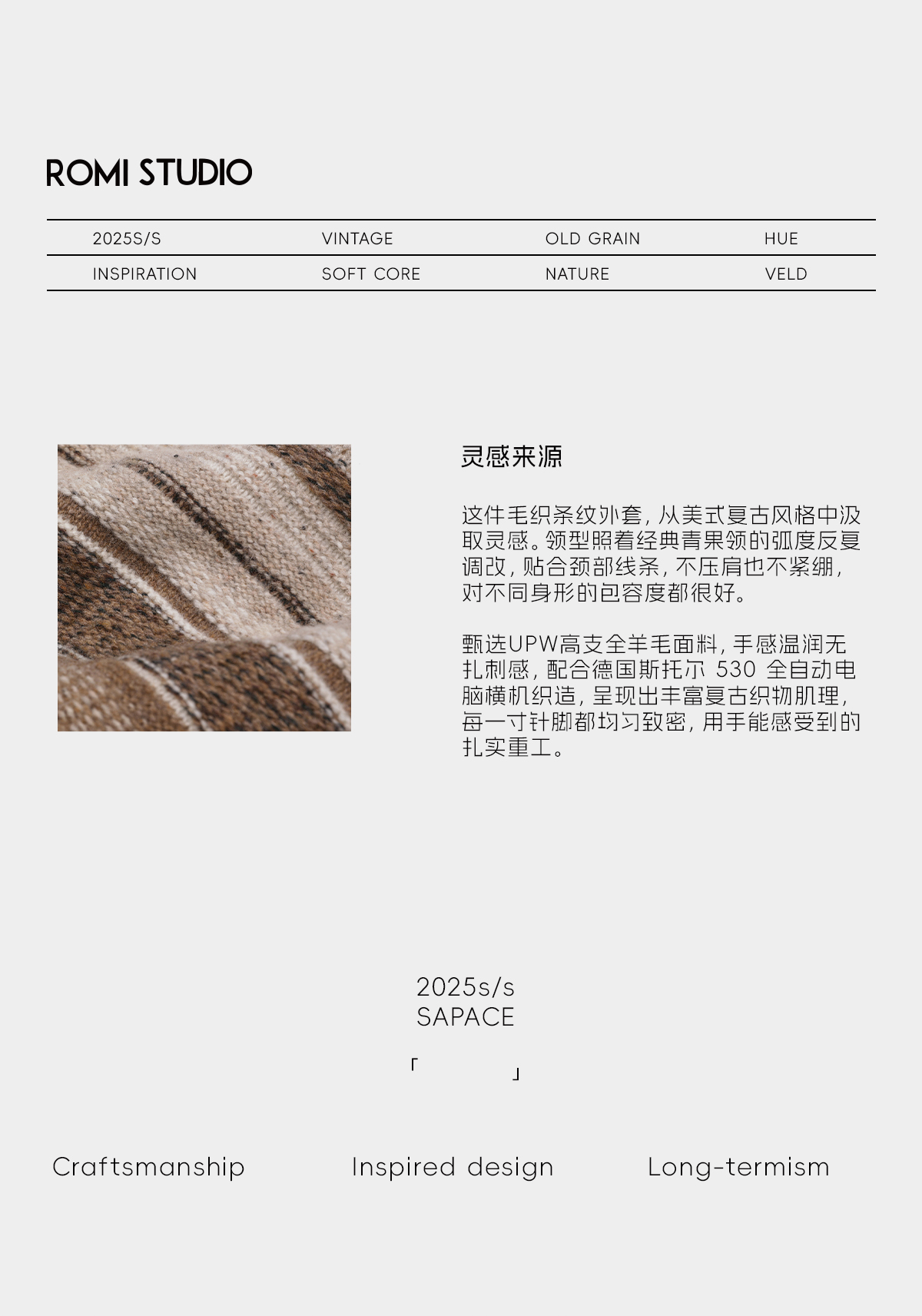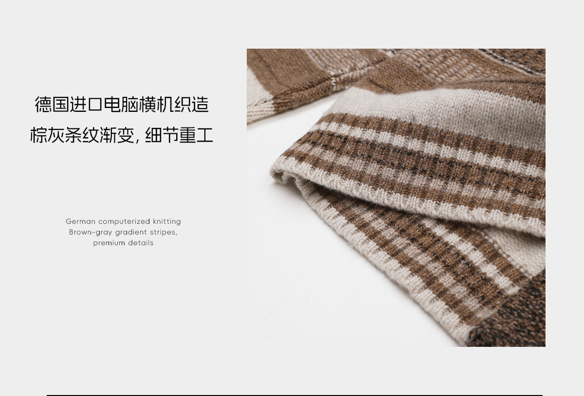ROMI STUDIO100%UPW高支羊毛复古条纹翻边毛织外套 RWDSS82209