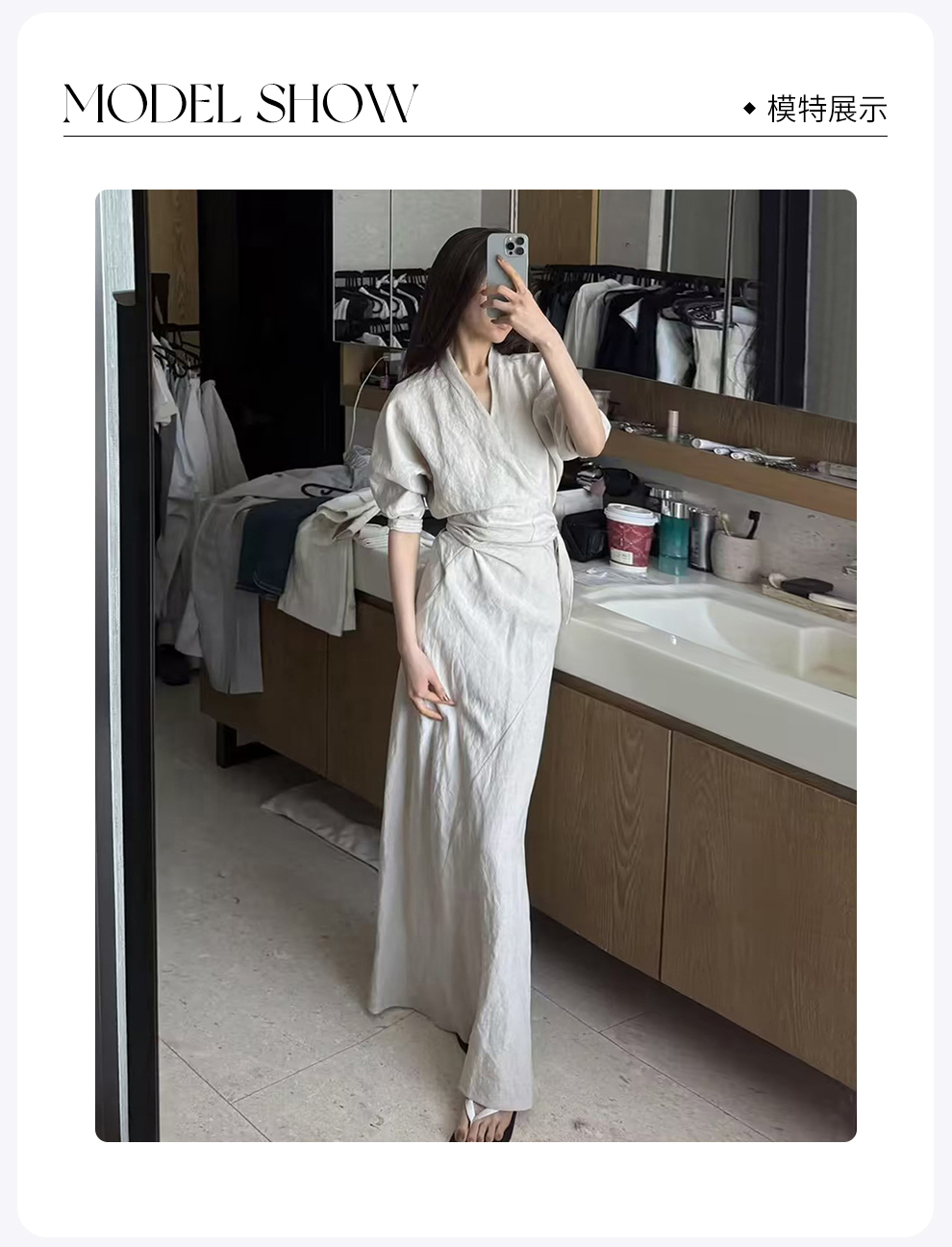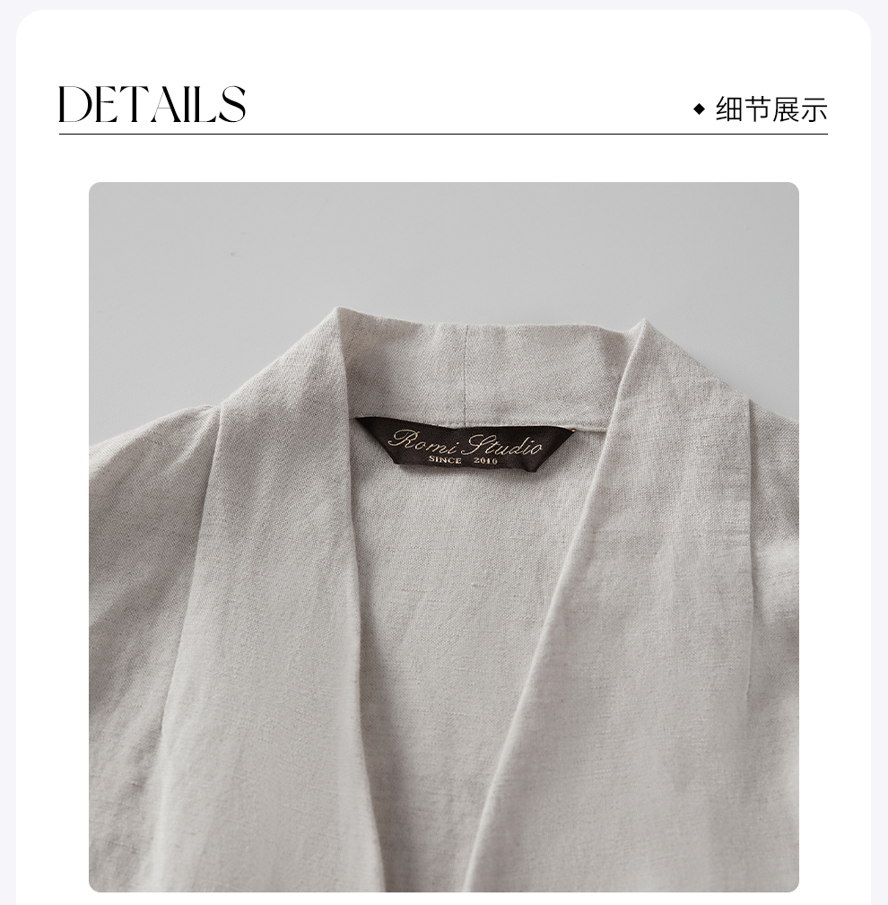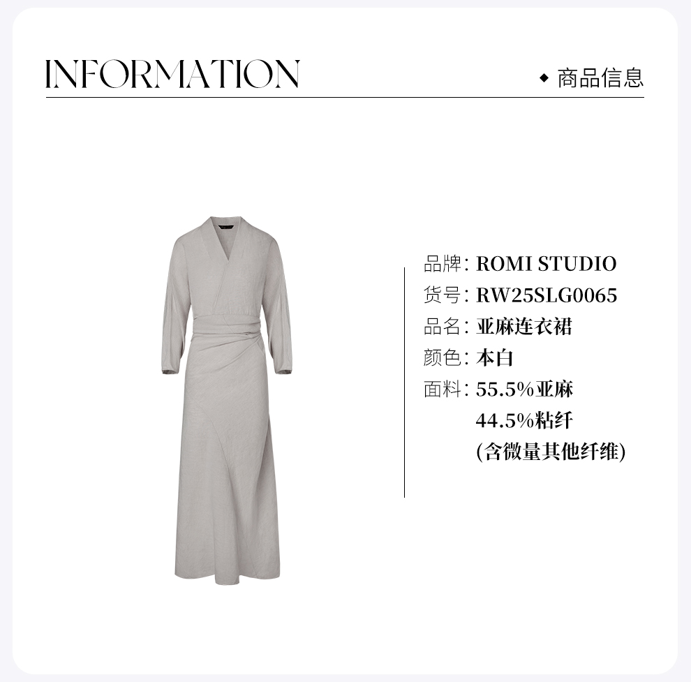 ROMI STUDIO“随性自然”雨露麻肌理微皱收腰亚麻连衣裙RW25SLG0065