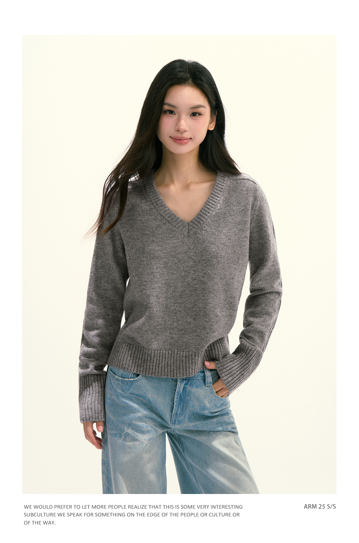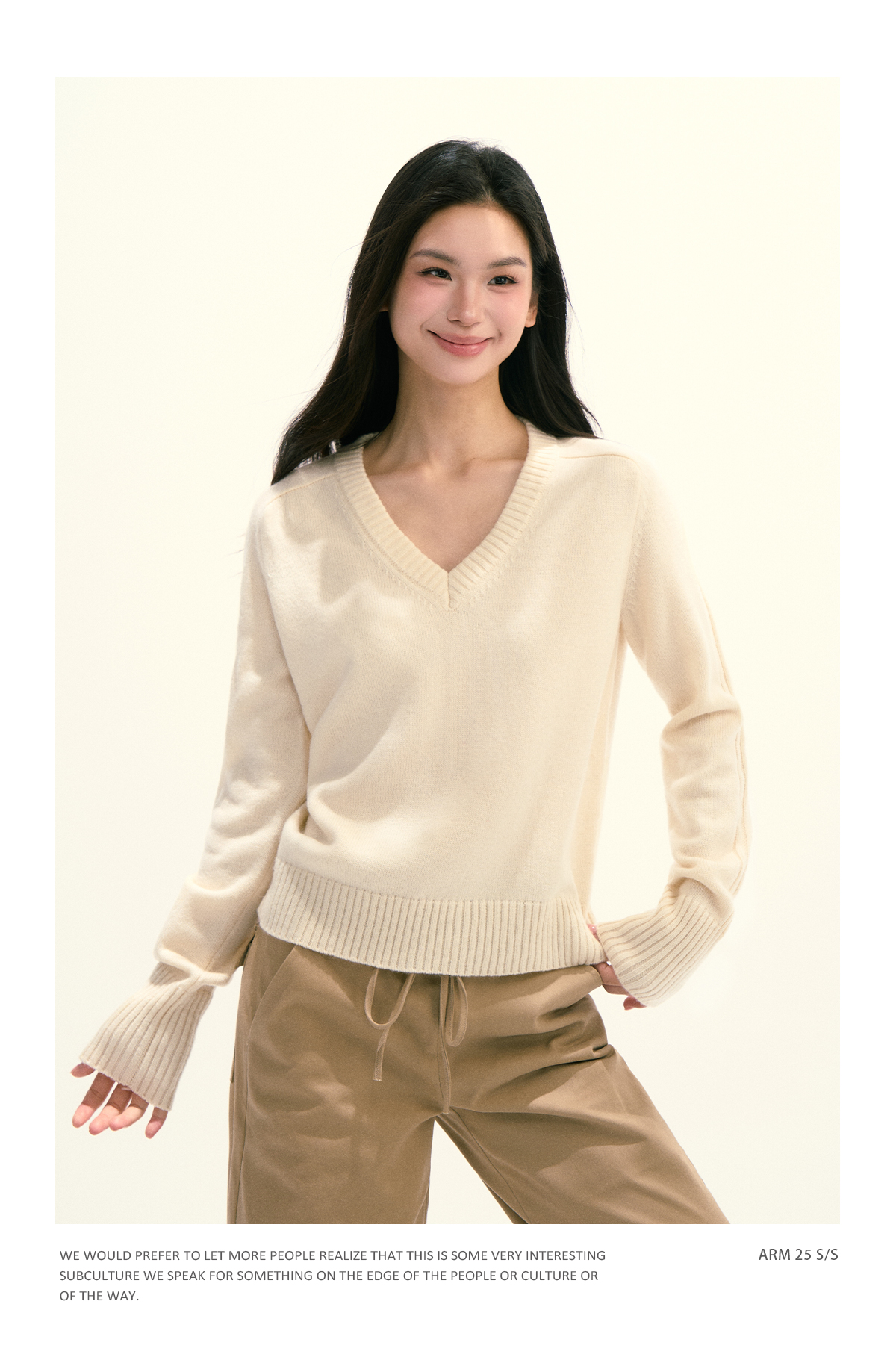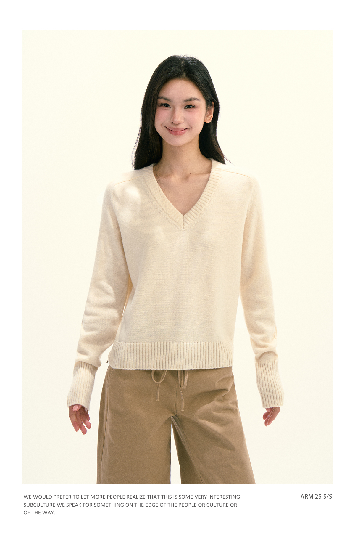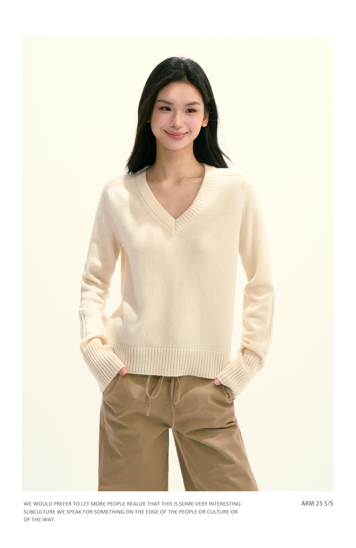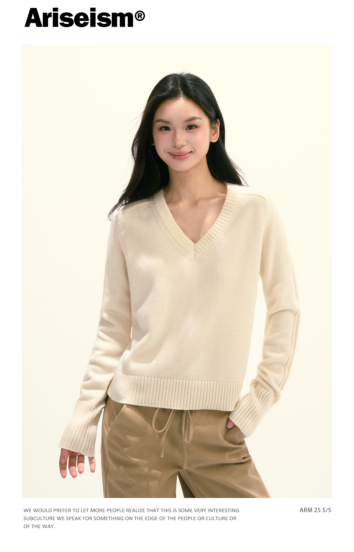Ariseism 美式复古设计感绵羊毛v领针织毛衣女秋季新款修身上衣
