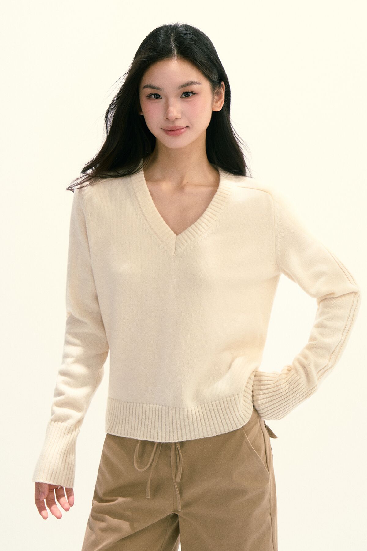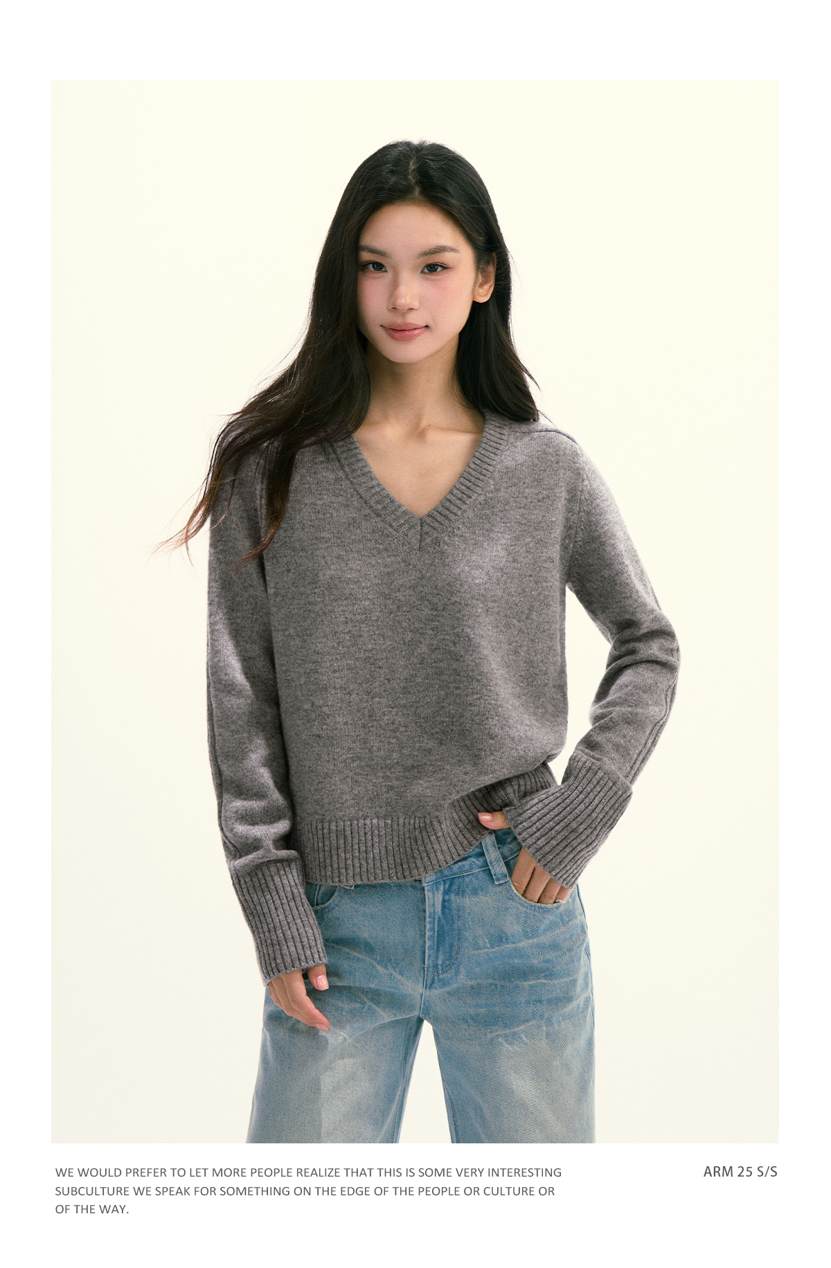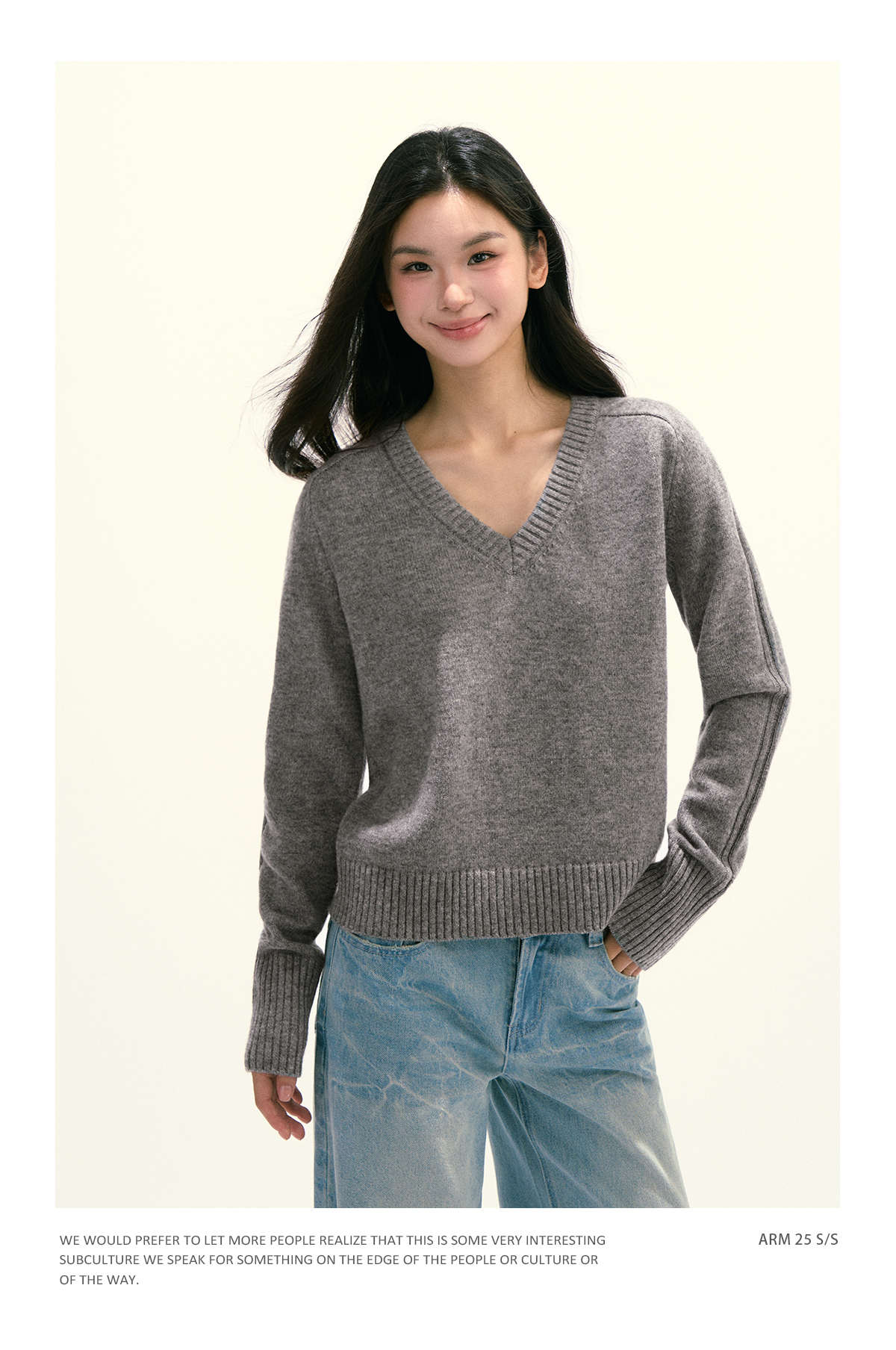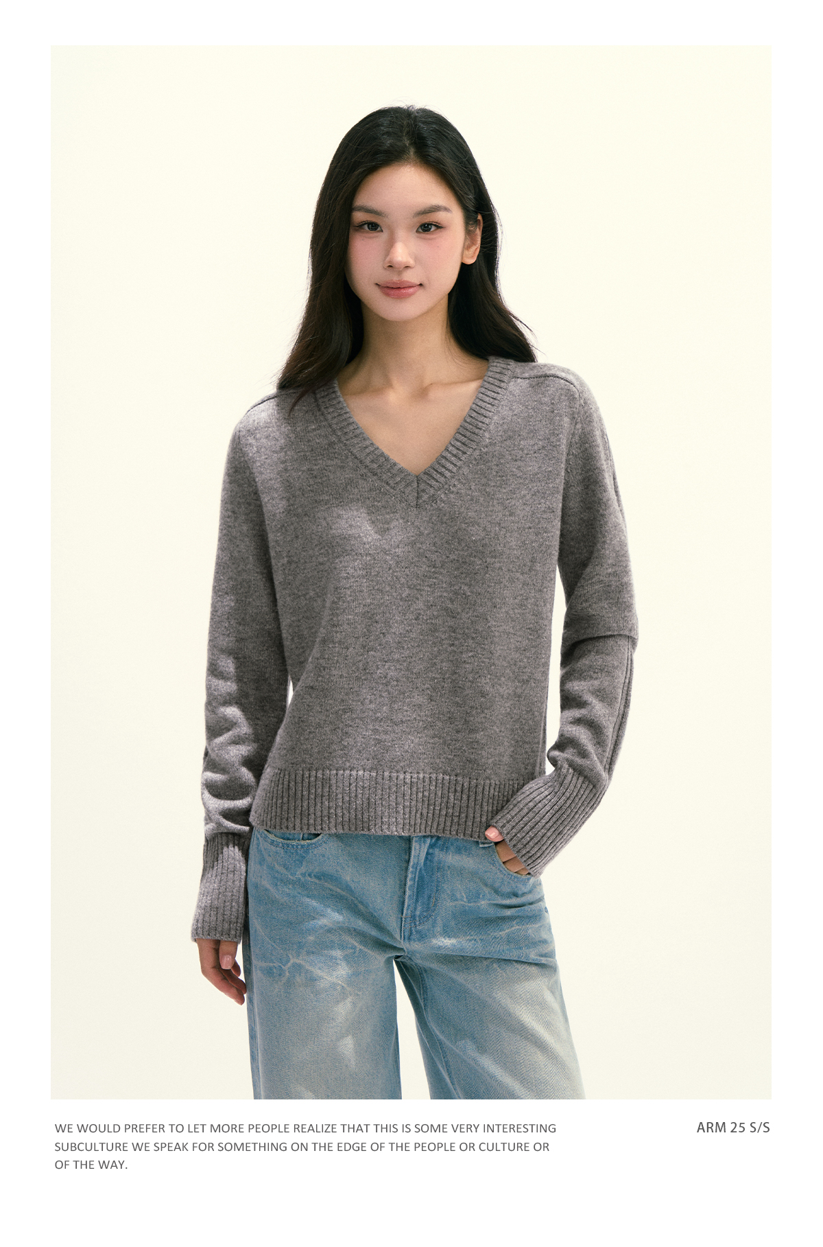 Ariseism 美式复古设计感绵羊毛v领针织毛衣女秋季新款修身上衣