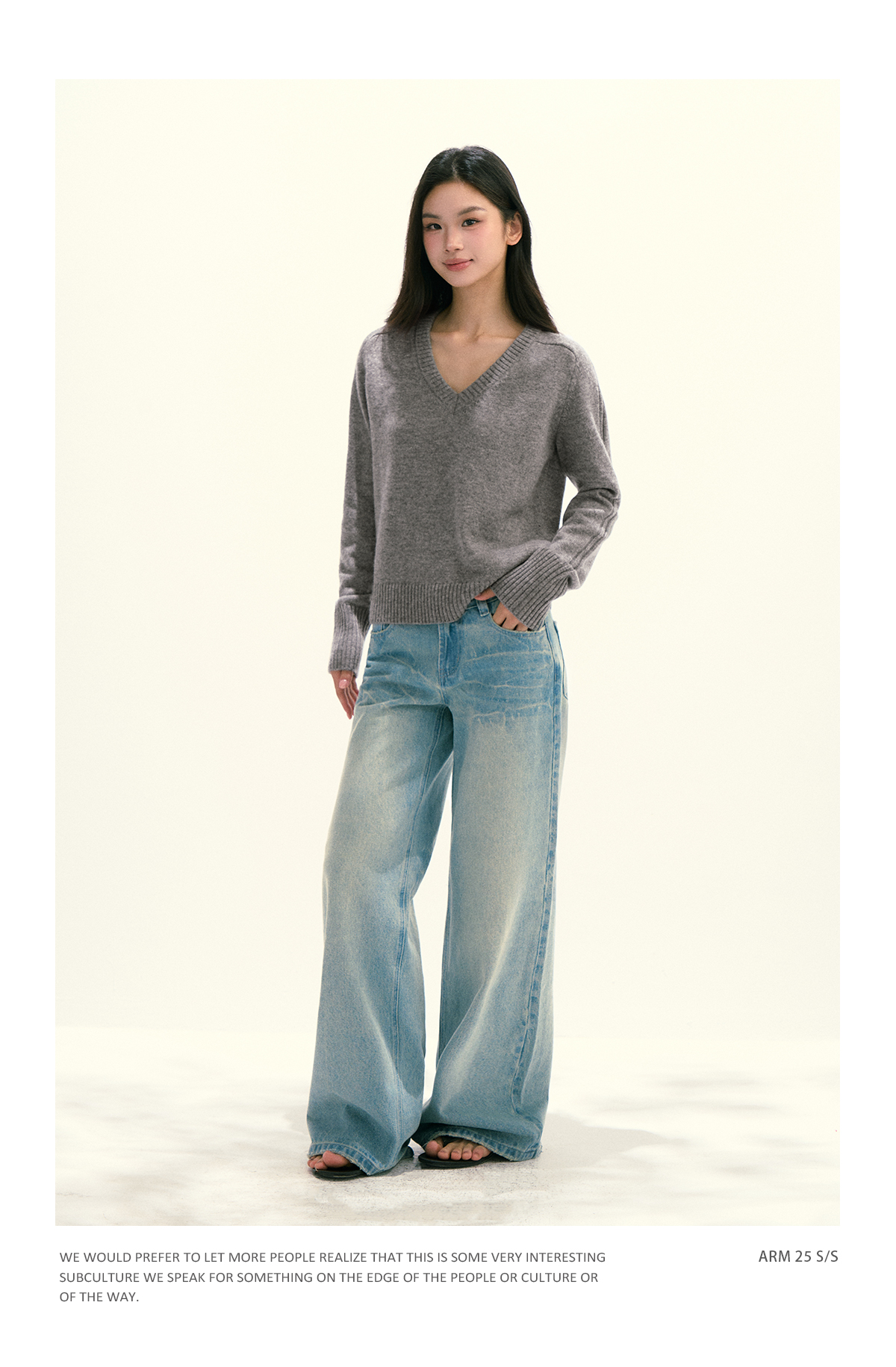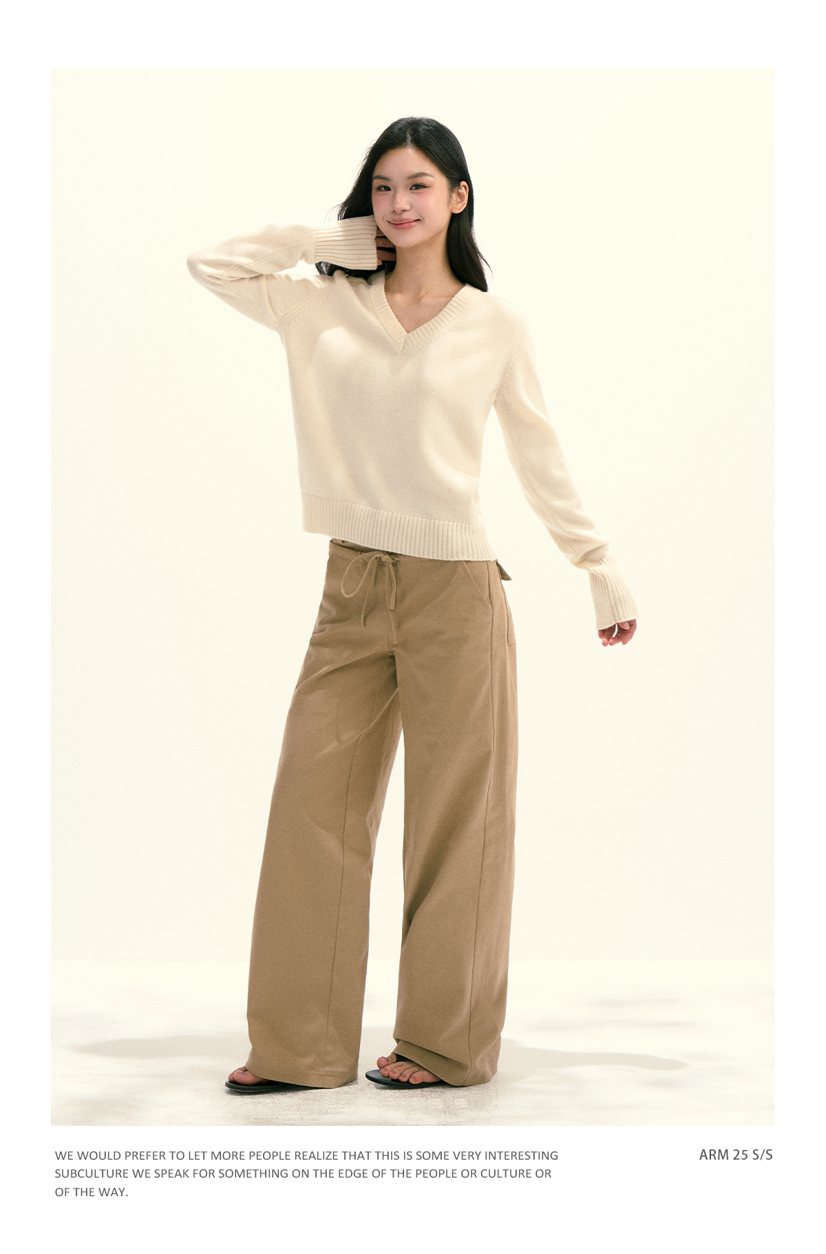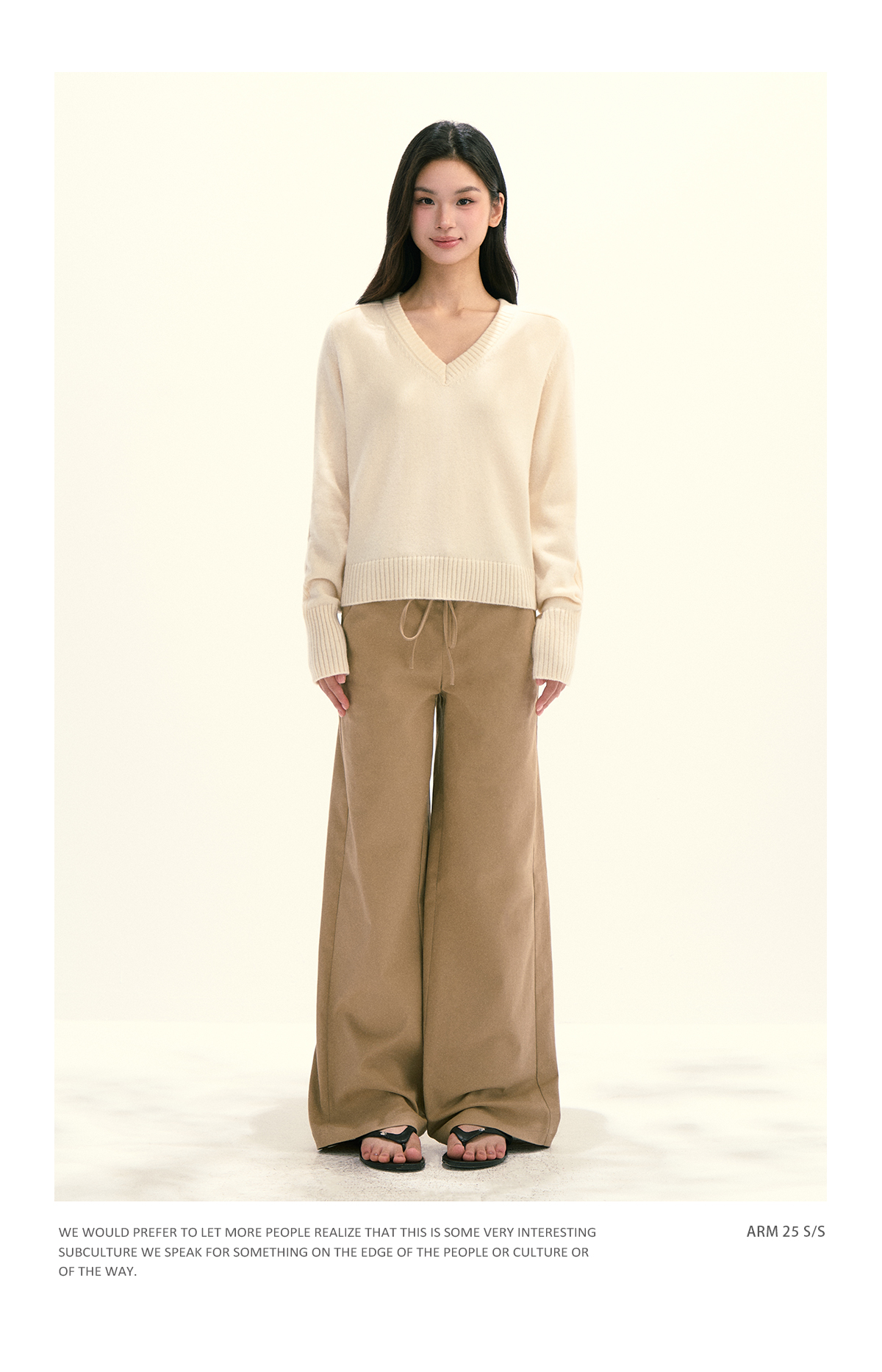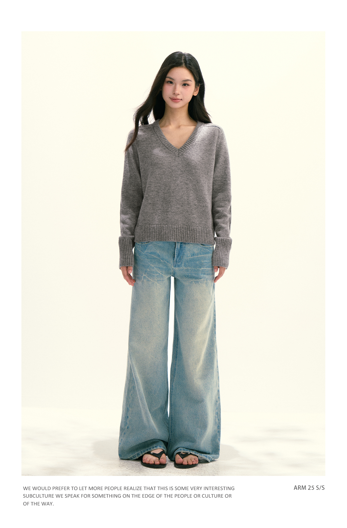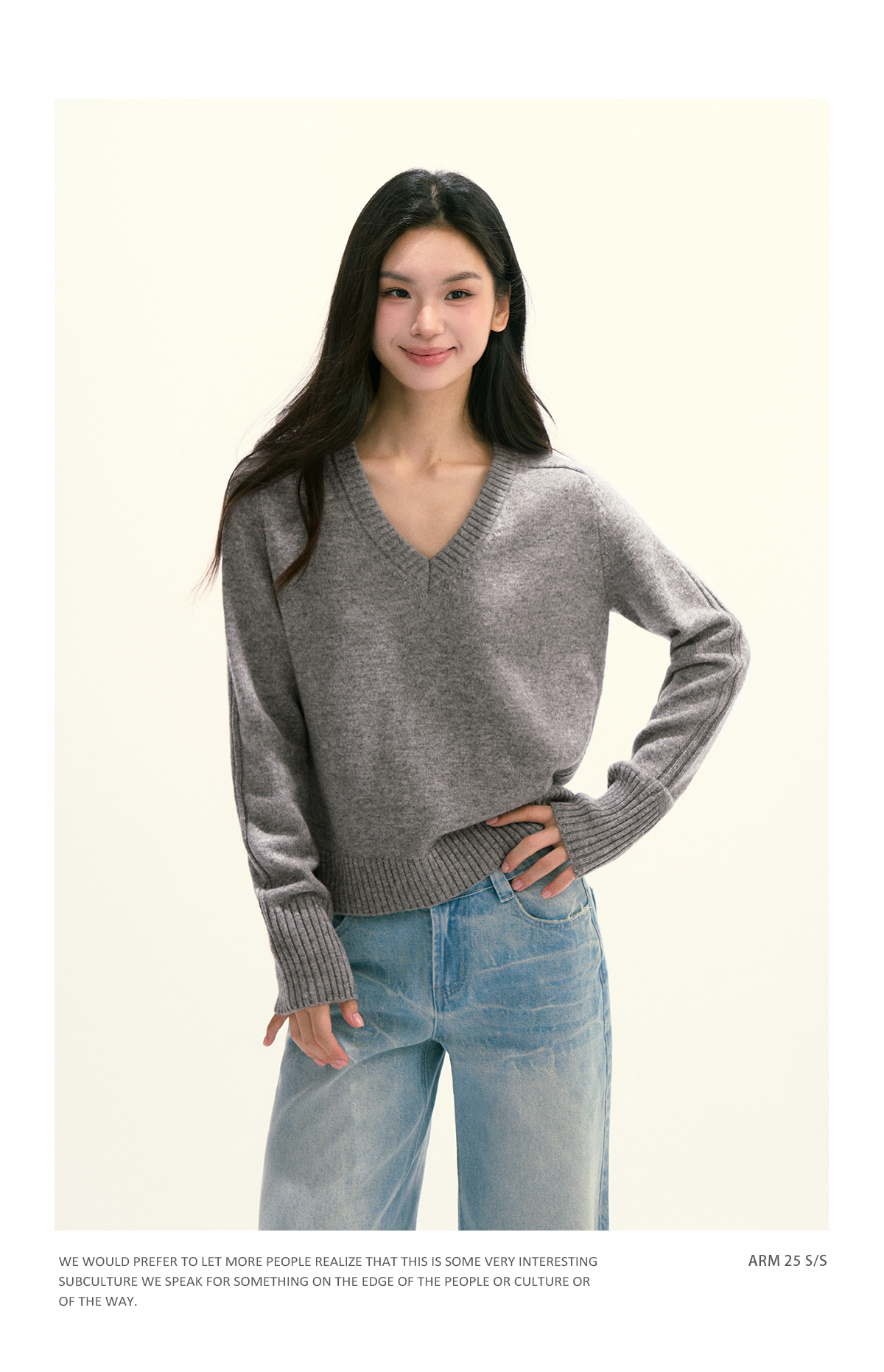 Ariseism 美式复古设计感绵羊毛v领针织毛衣女秋季新款修身上衣