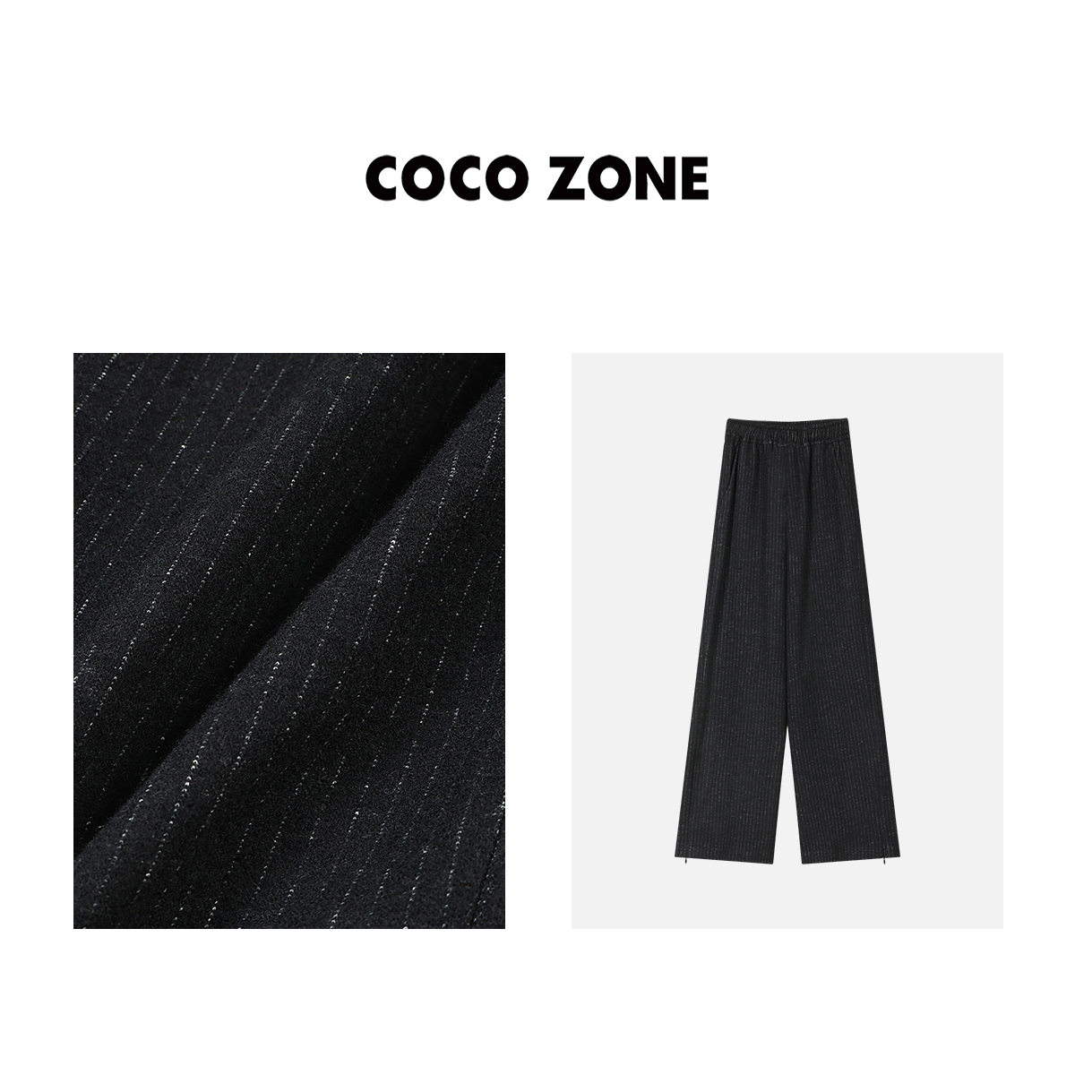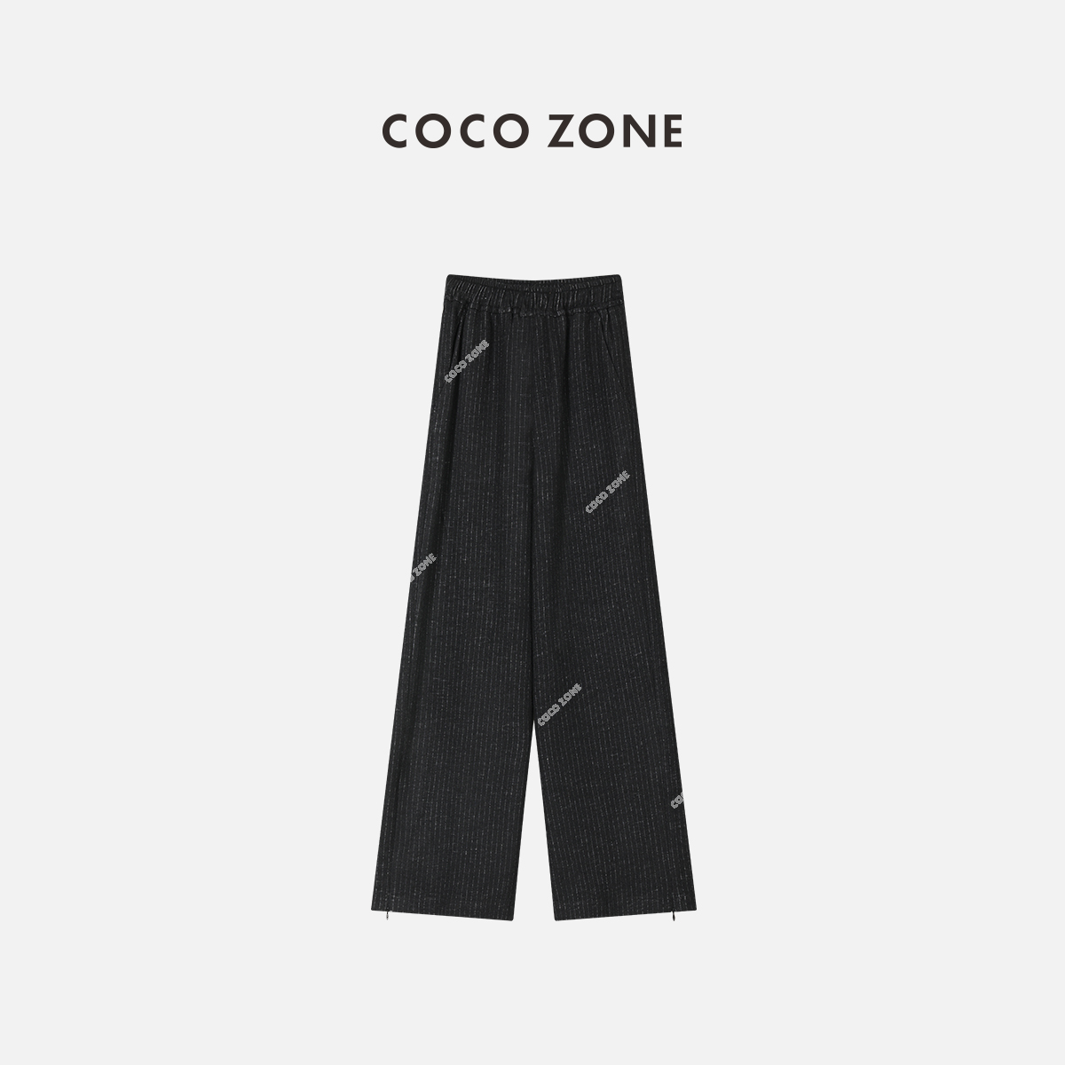 COCO ZONE早秋松紧腰系绳阔腿裤通勤风直筒休闲裤23C19560