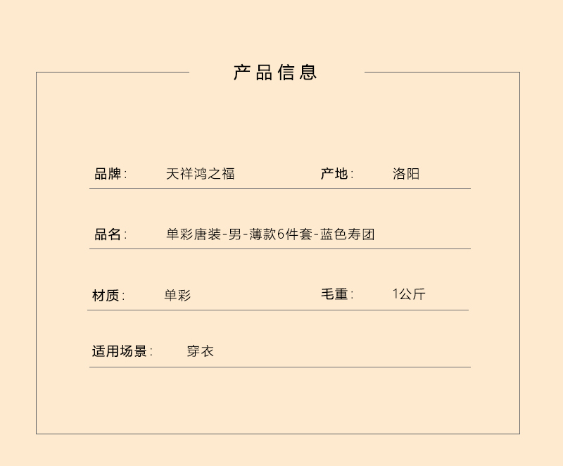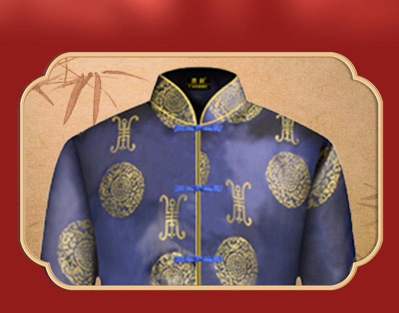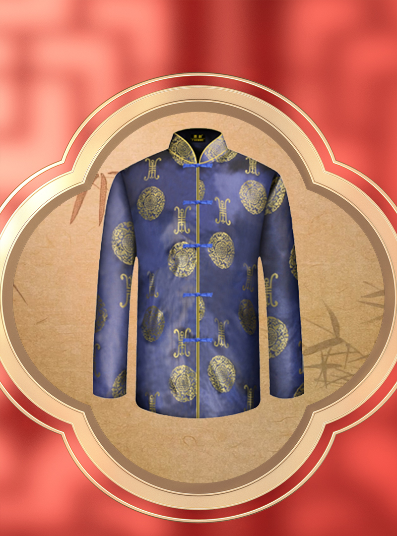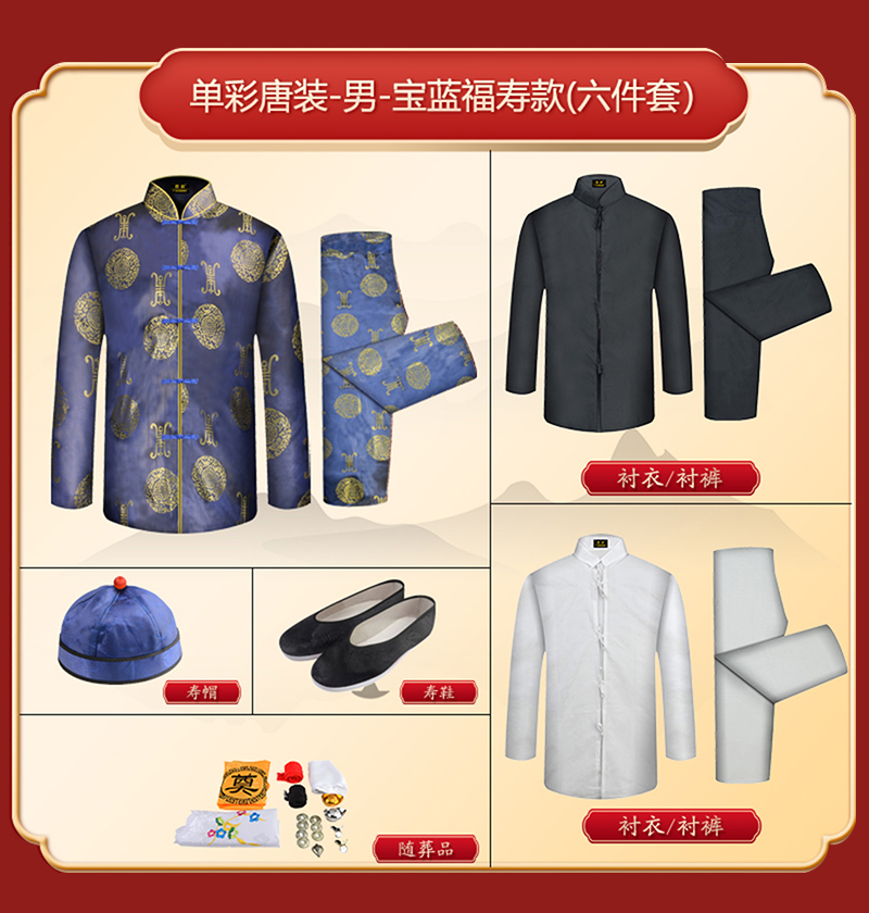 男士寿衣单彩唐装-蓝色寿团薄款6件套寿衣寿服套装