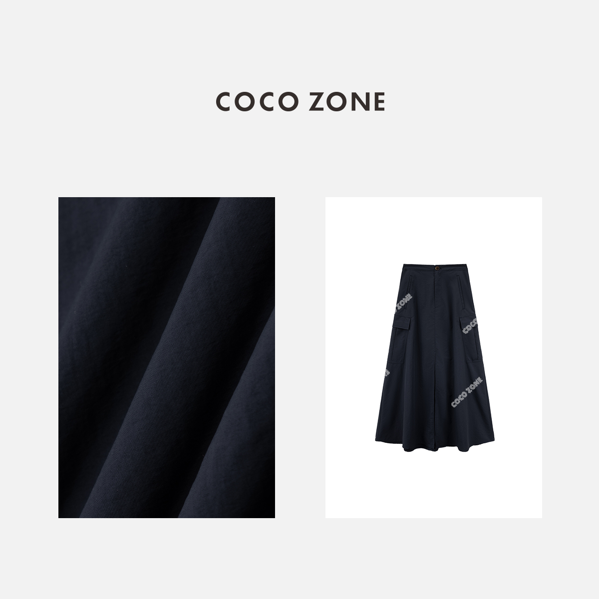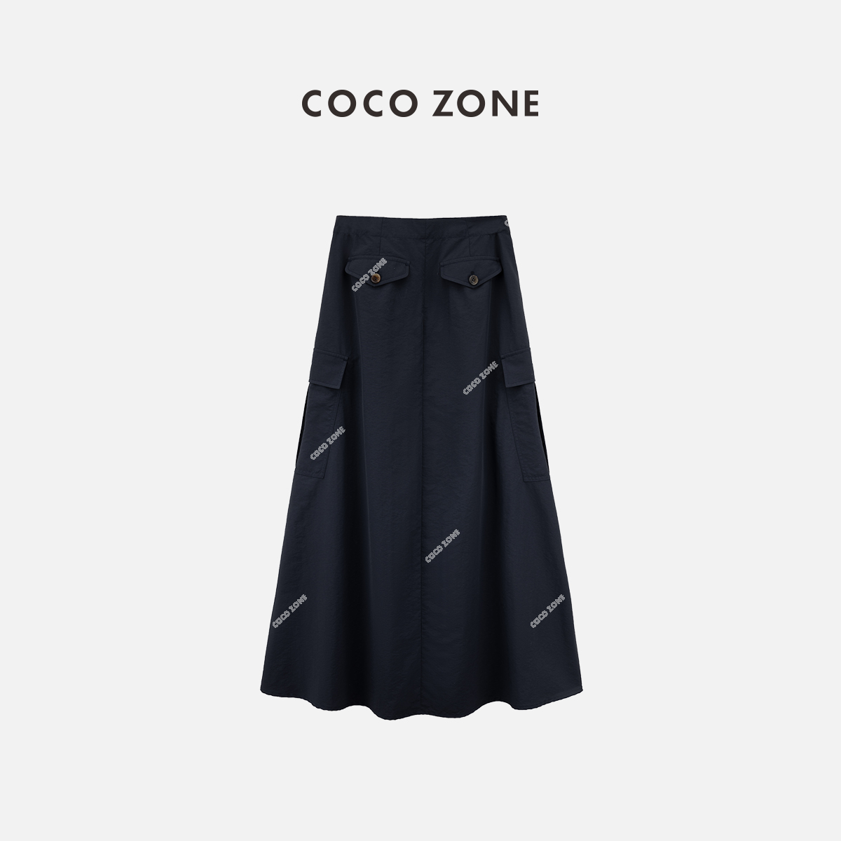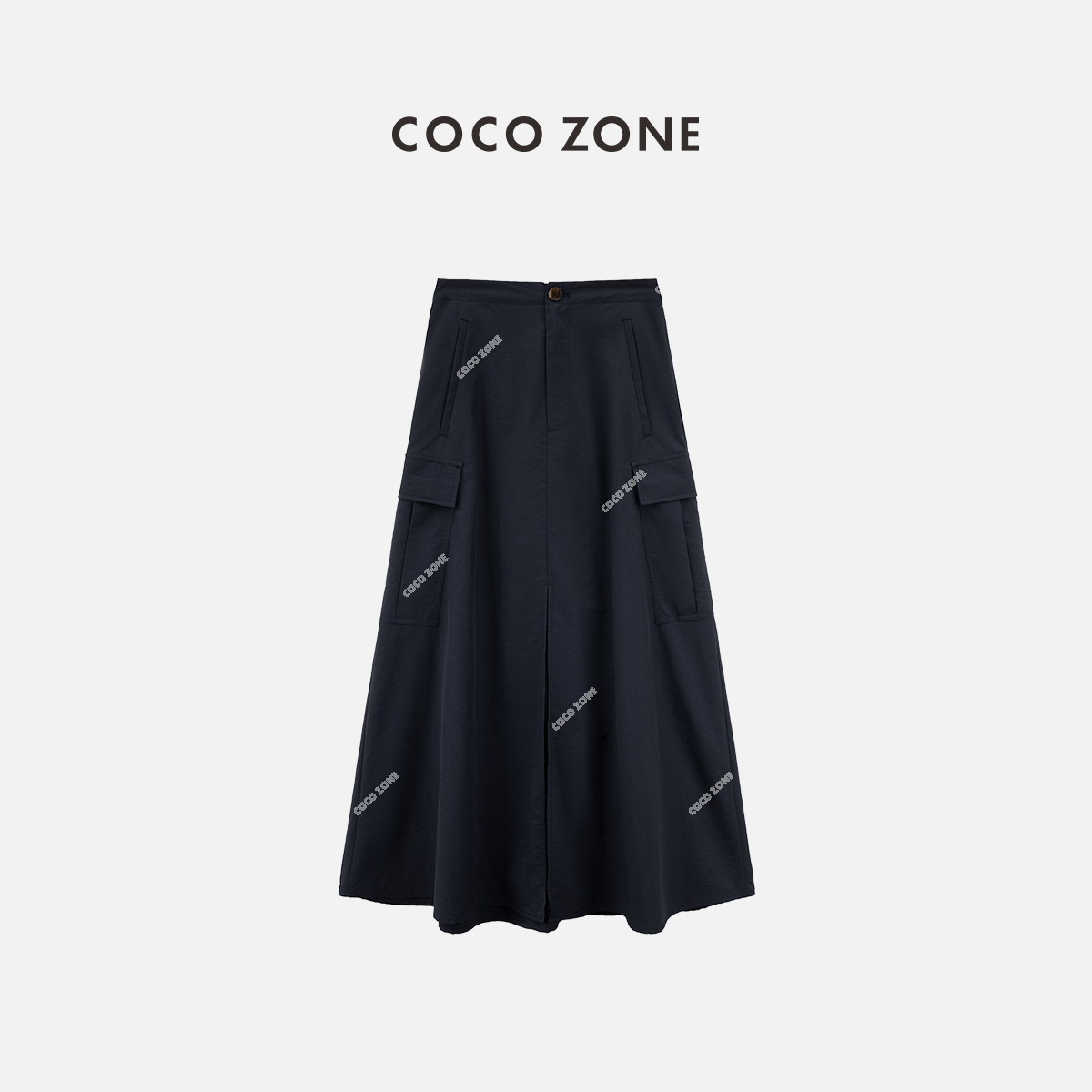 COCO ZONE“Bf工装裙”时尚简约开叉A字工装半身裙百搭气质中长裙CC2B0778