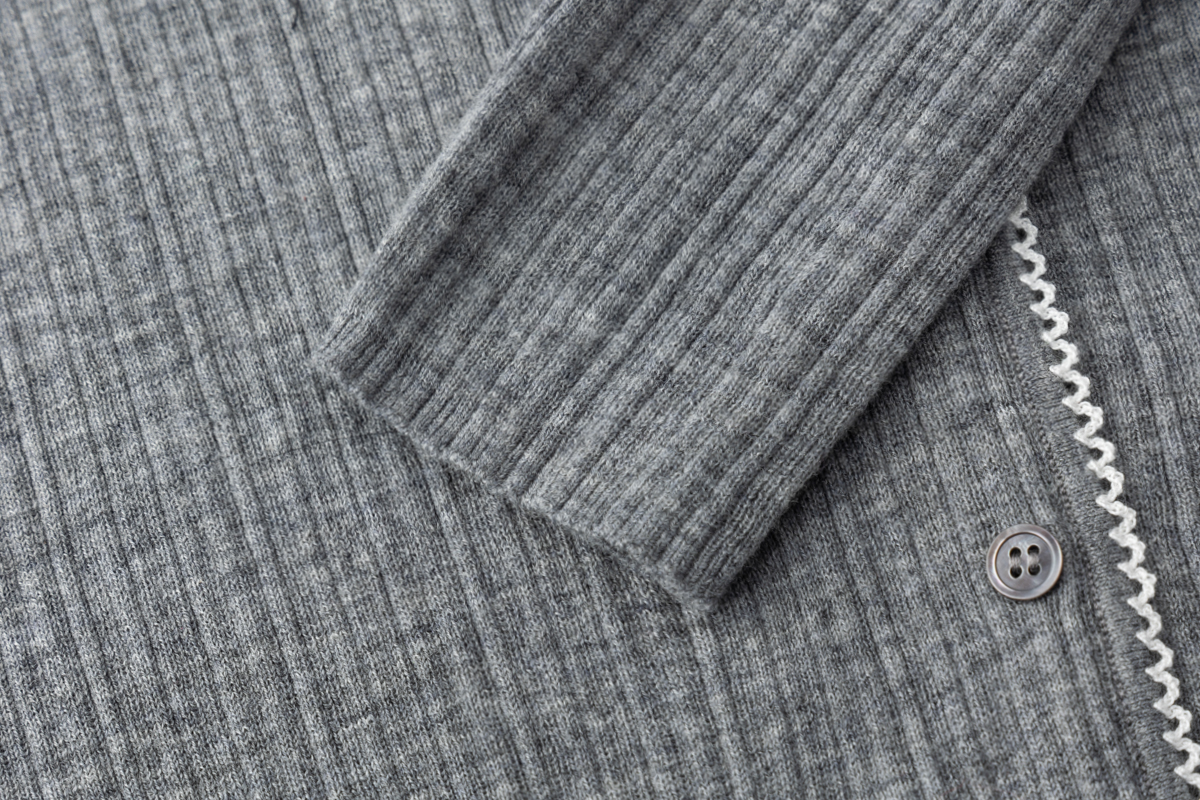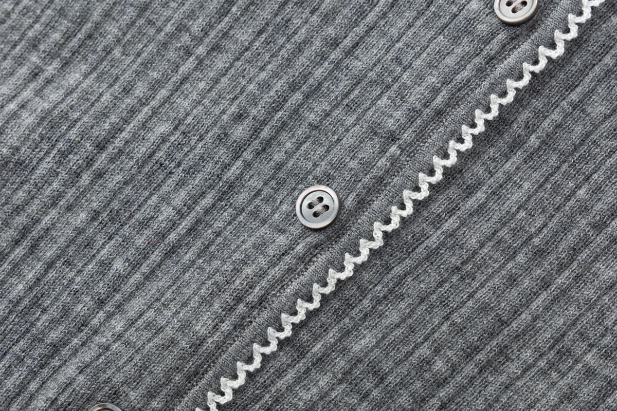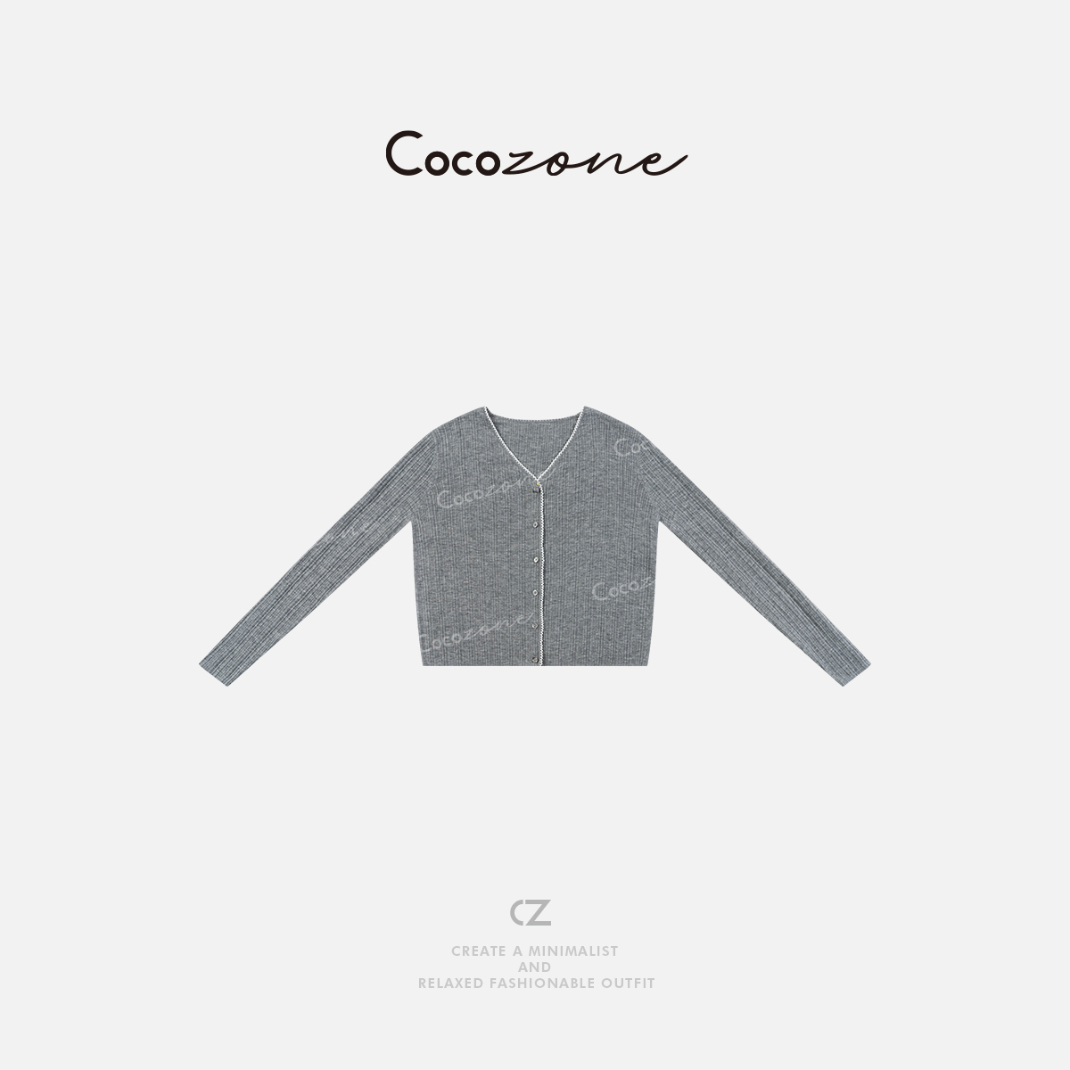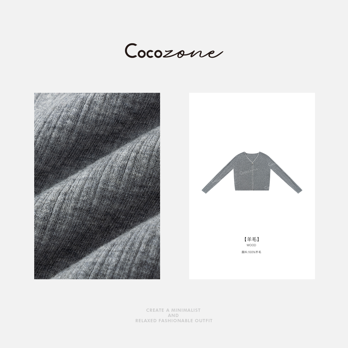 COCO ZONE 100绵羊毛早春撞色V领长袖针织开衫CD2A0182