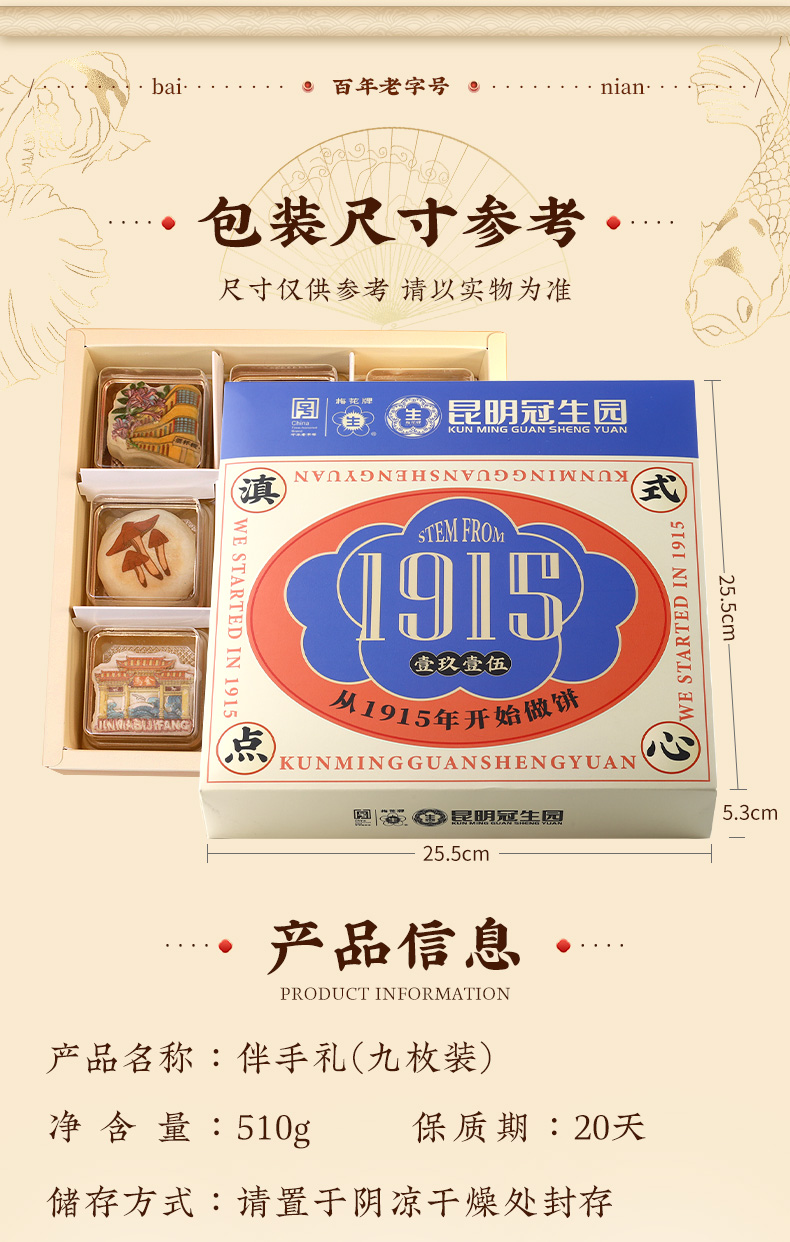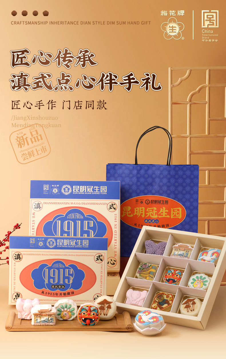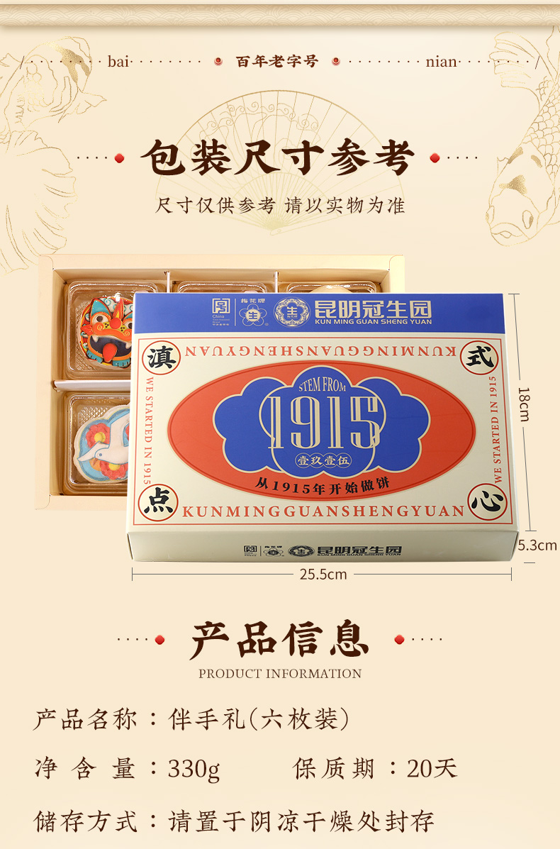 昆明冠生园滇式点心礼盒地标伴手礼礼盒(6枚装/9枚装)保质期20天