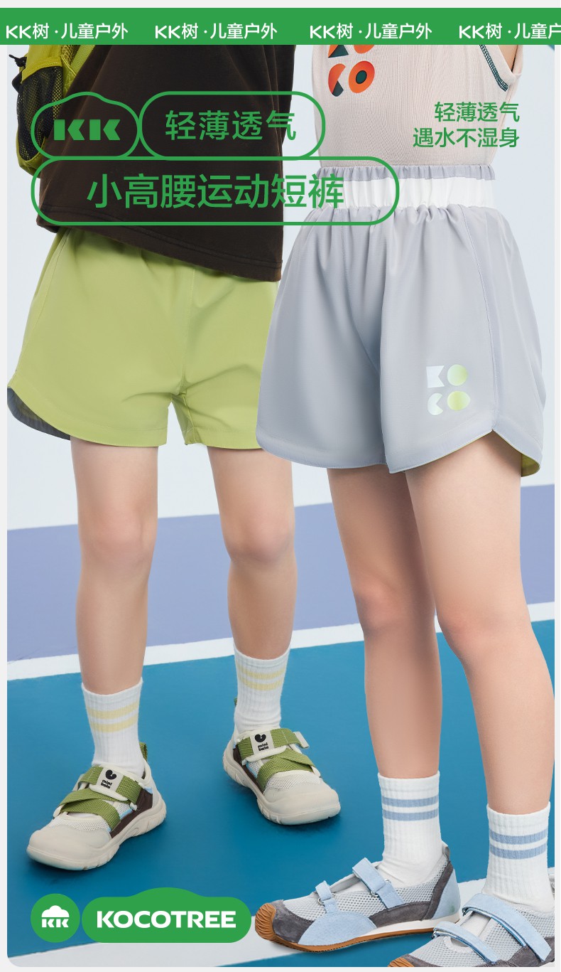 KK树童装女童短裤儿童弹力宽腰男童运动裤直筒透气休闲裤2025新款小高腰运动短裤