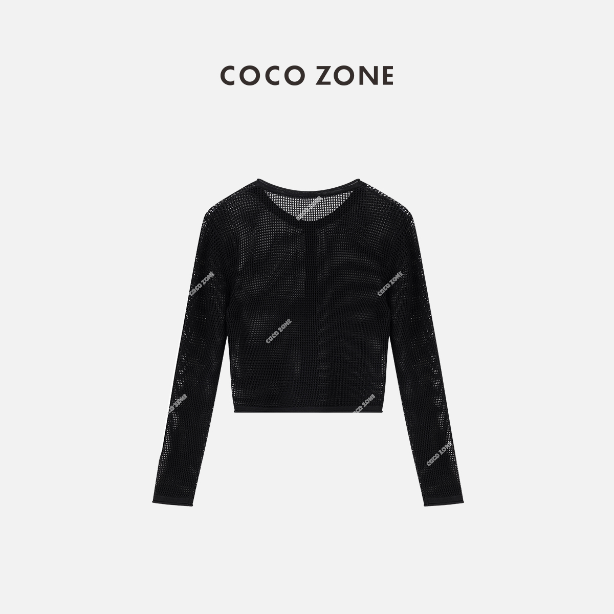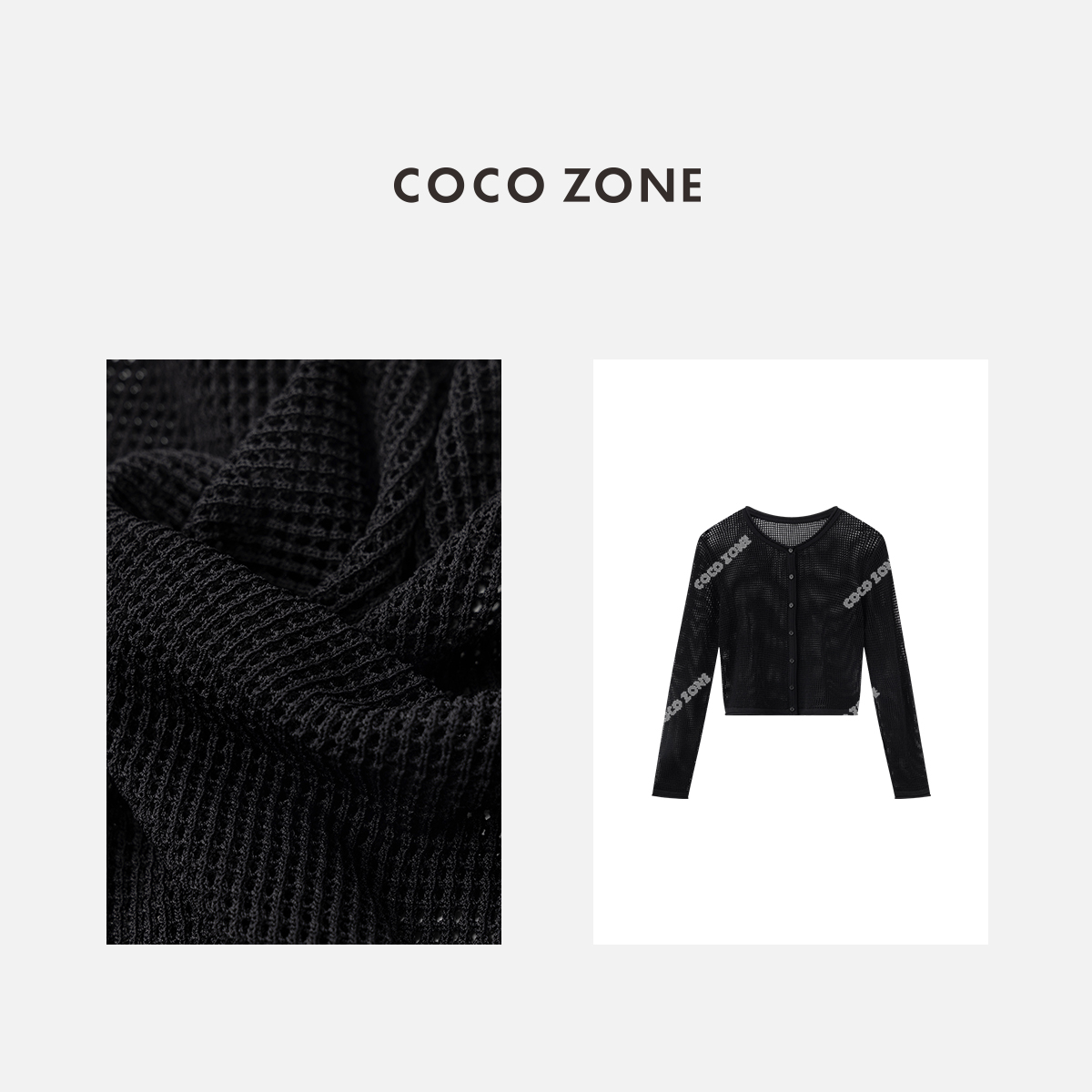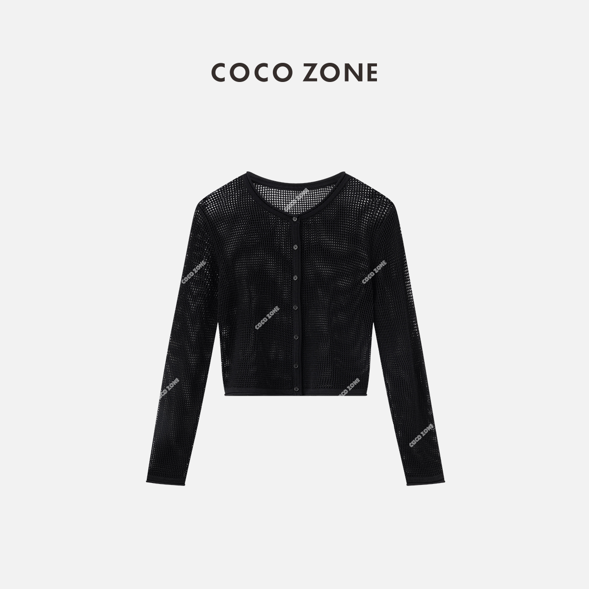 COCO ZONE2024夏季圆领镂空针织开衫显瘦百搭长袖上衣CC1B0697