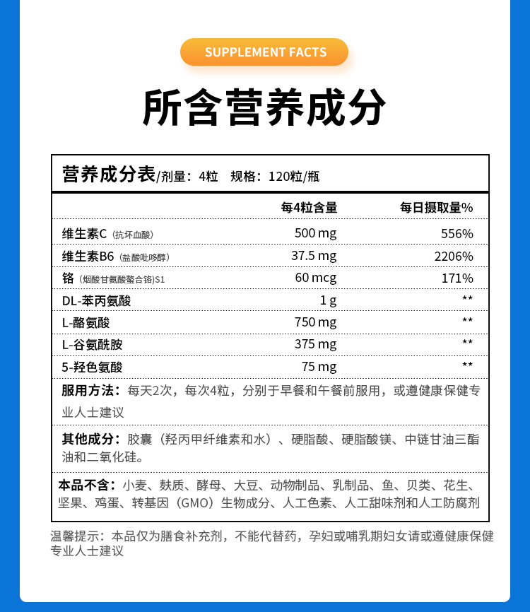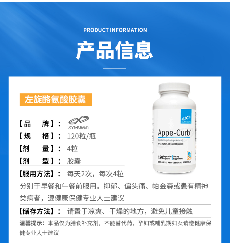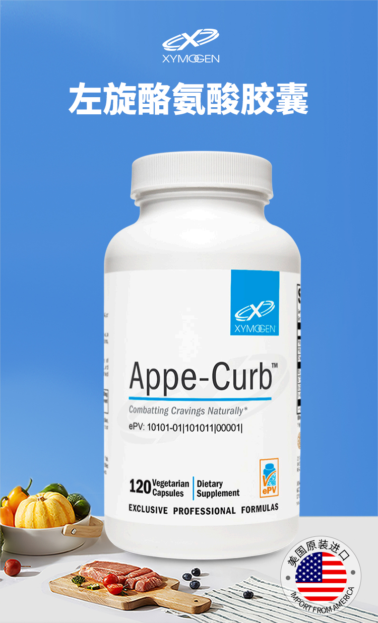 【效期至26年9月】左旋酪氨酸胶囊 XYMOGEN Appe-Curb 120粒/瓶