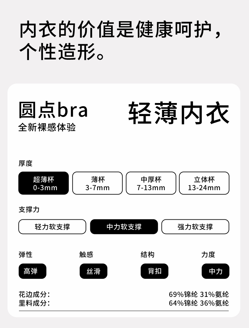 提供让女性自信,有幸福感的内衣 帮助女性打破刻板印象,解放传统文化带给女性的束缚 助力女性勇敢成长为更想成为的自己。