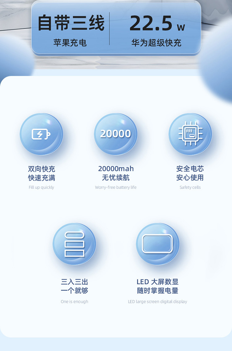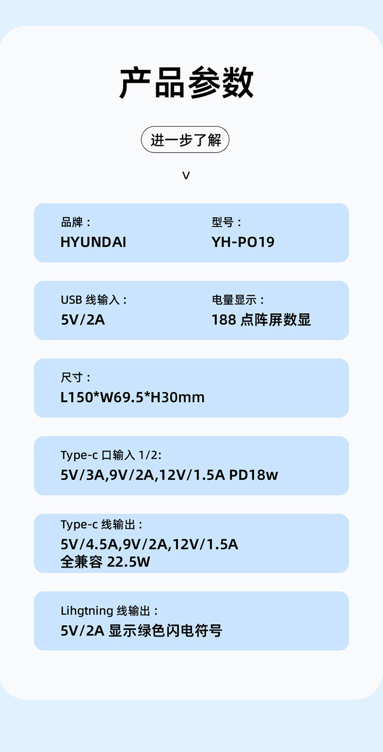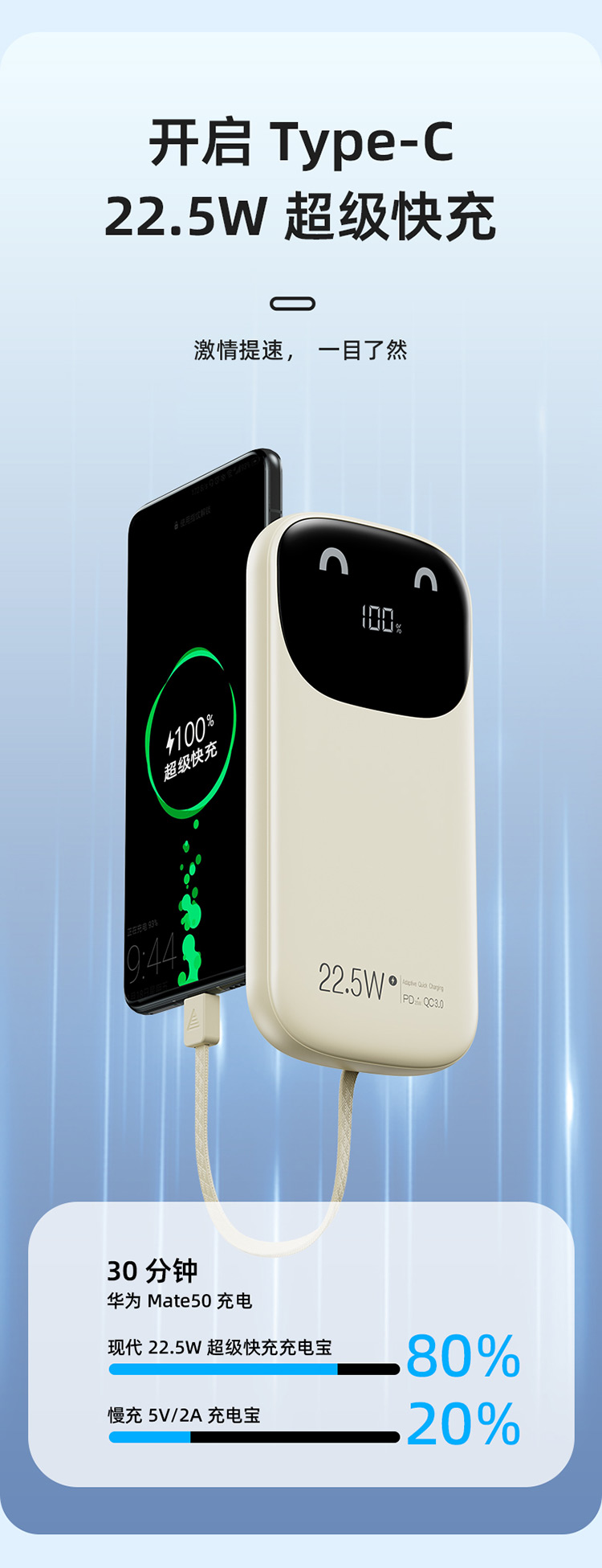 HYUNDAI 自带线移动电源22.5W快充-20000毫安 YH-P109