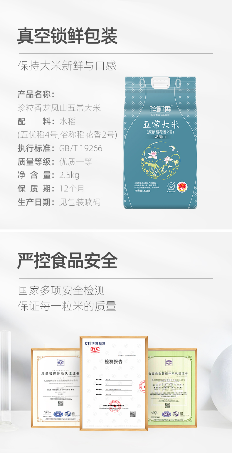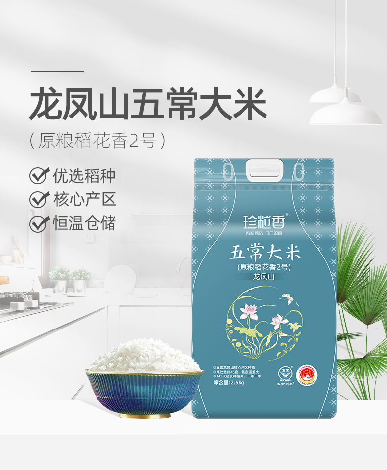 珍粒香龙凤山五常大米2.5kg5斤GB/T19266优质一等一年一季原粮稻花香2号