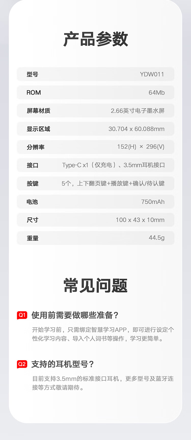 网易有道单词卡M3(64MB)白色