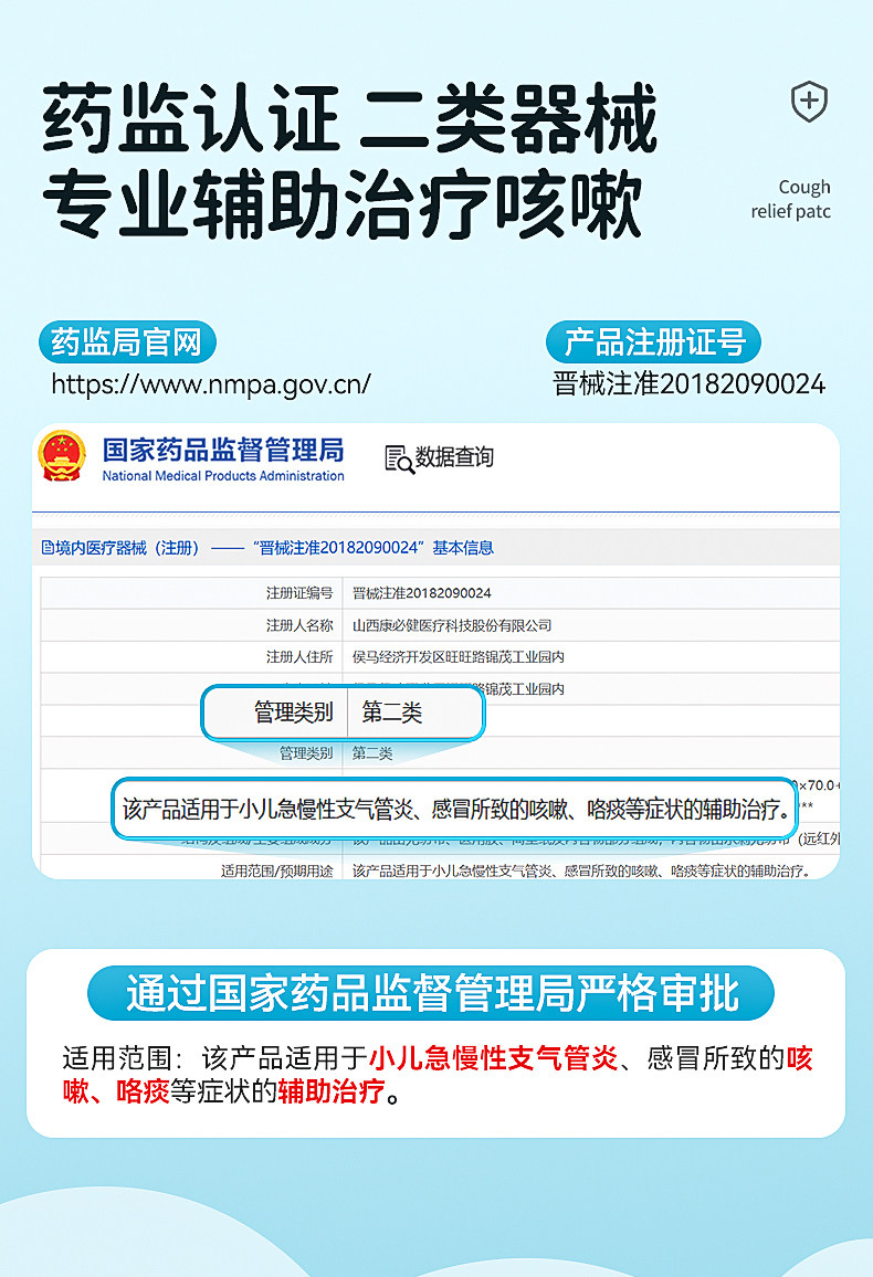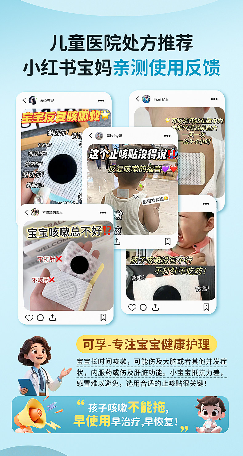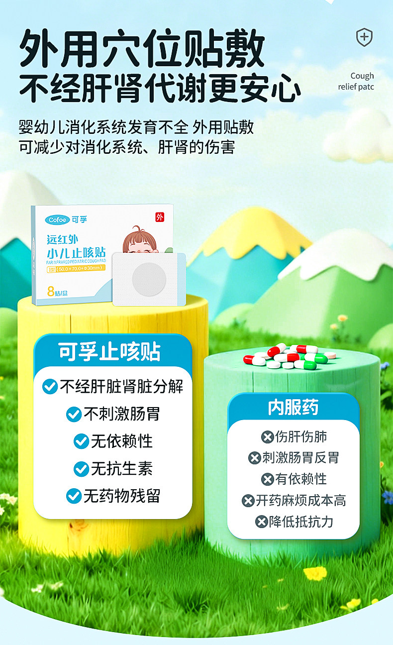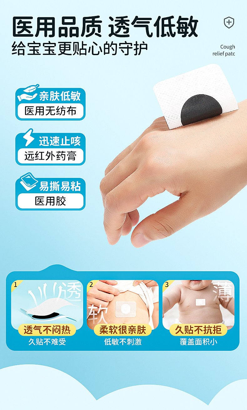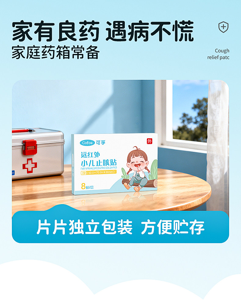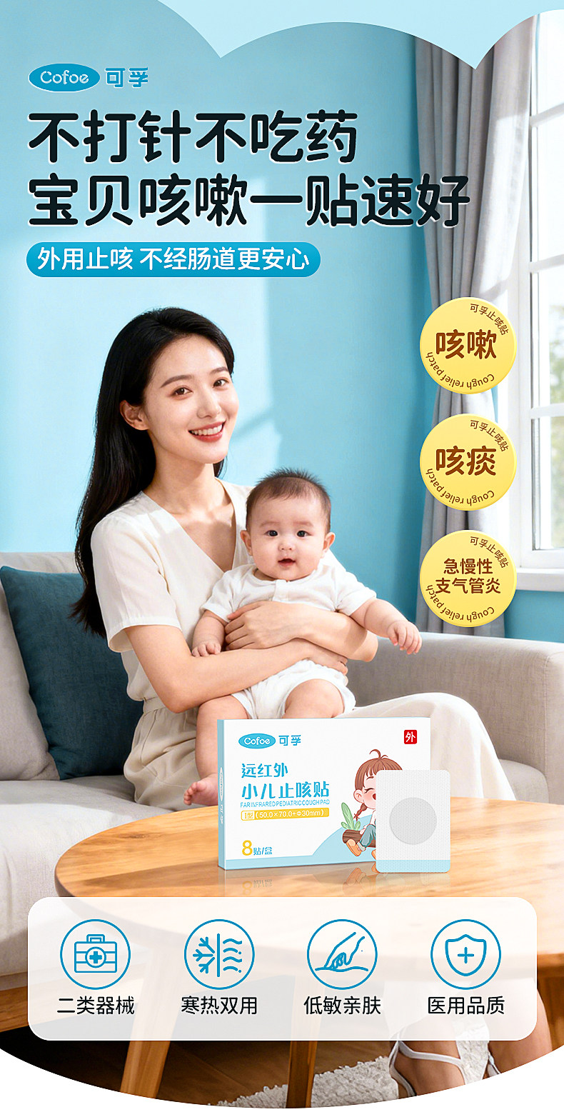 可孚小儿止咳贴远红外支气管炎穴位宝宝感冒儿童咳嗽化痰神器哮喘