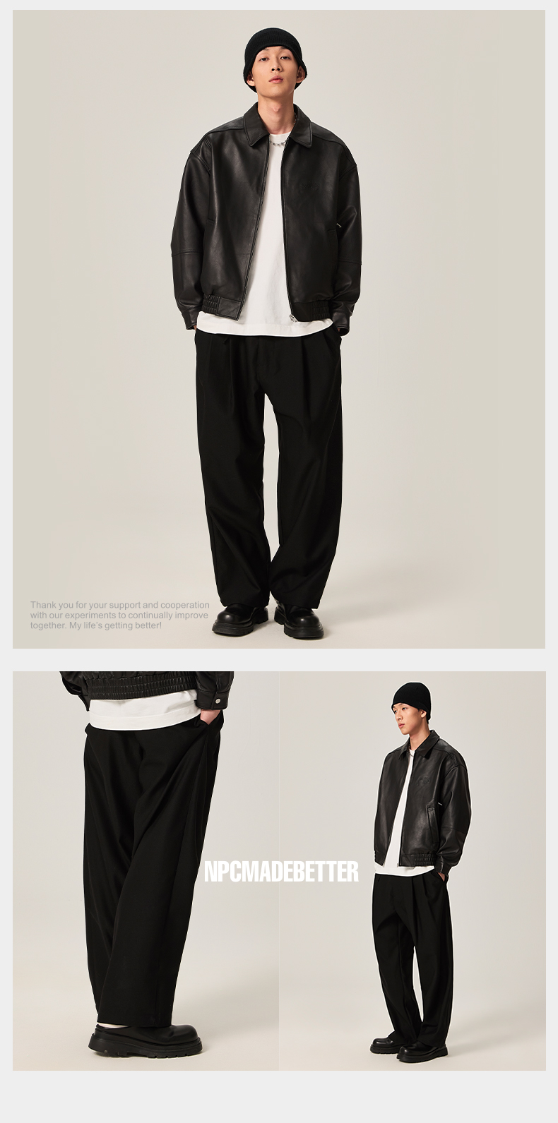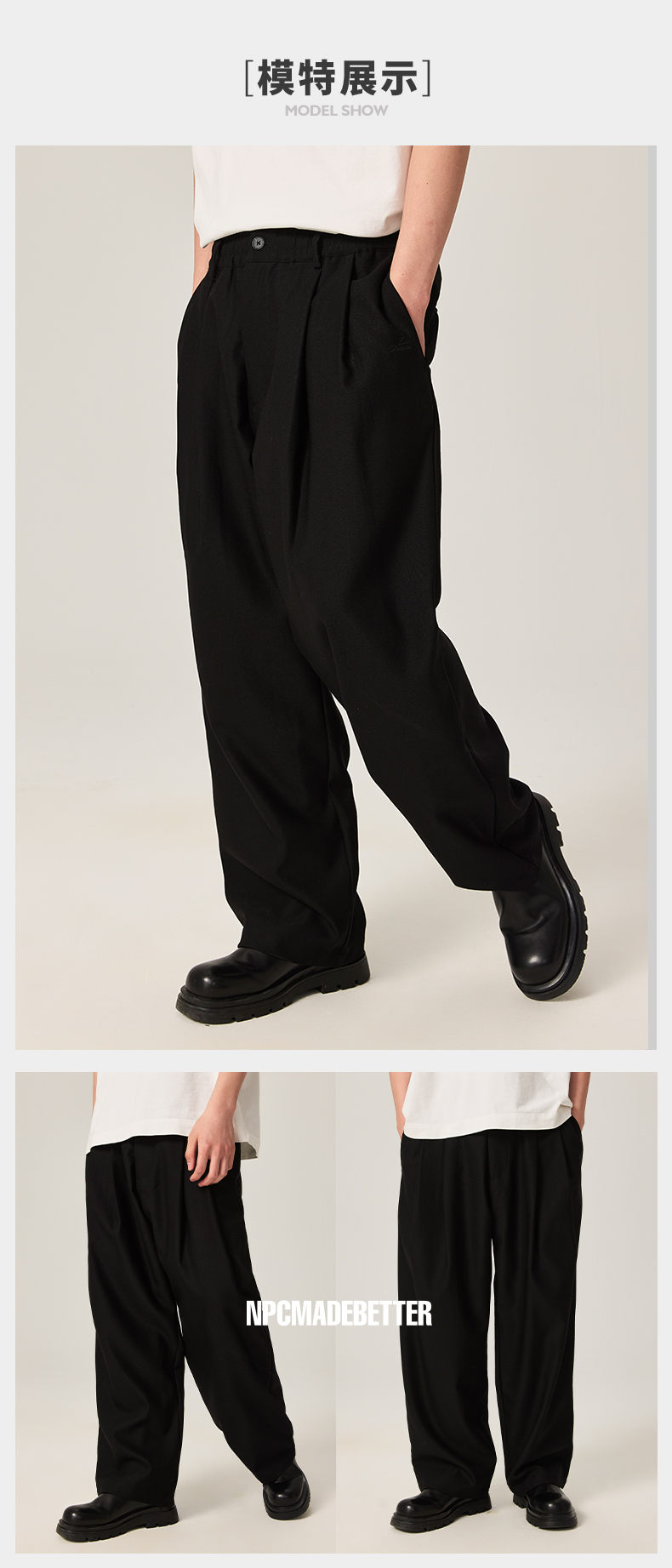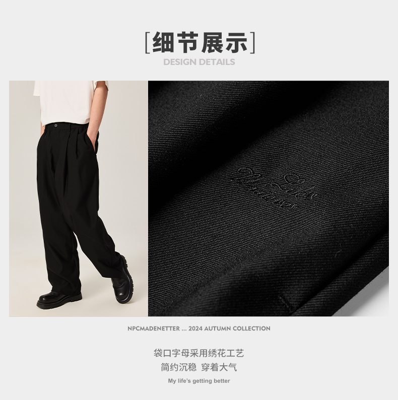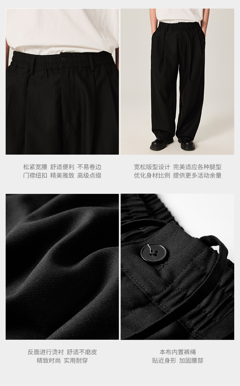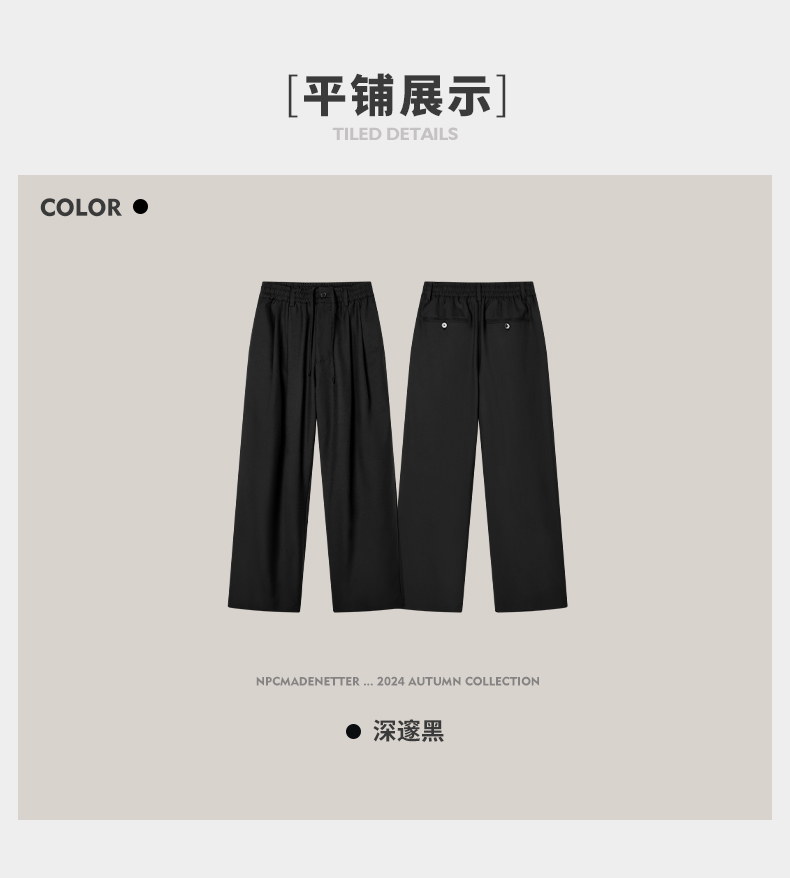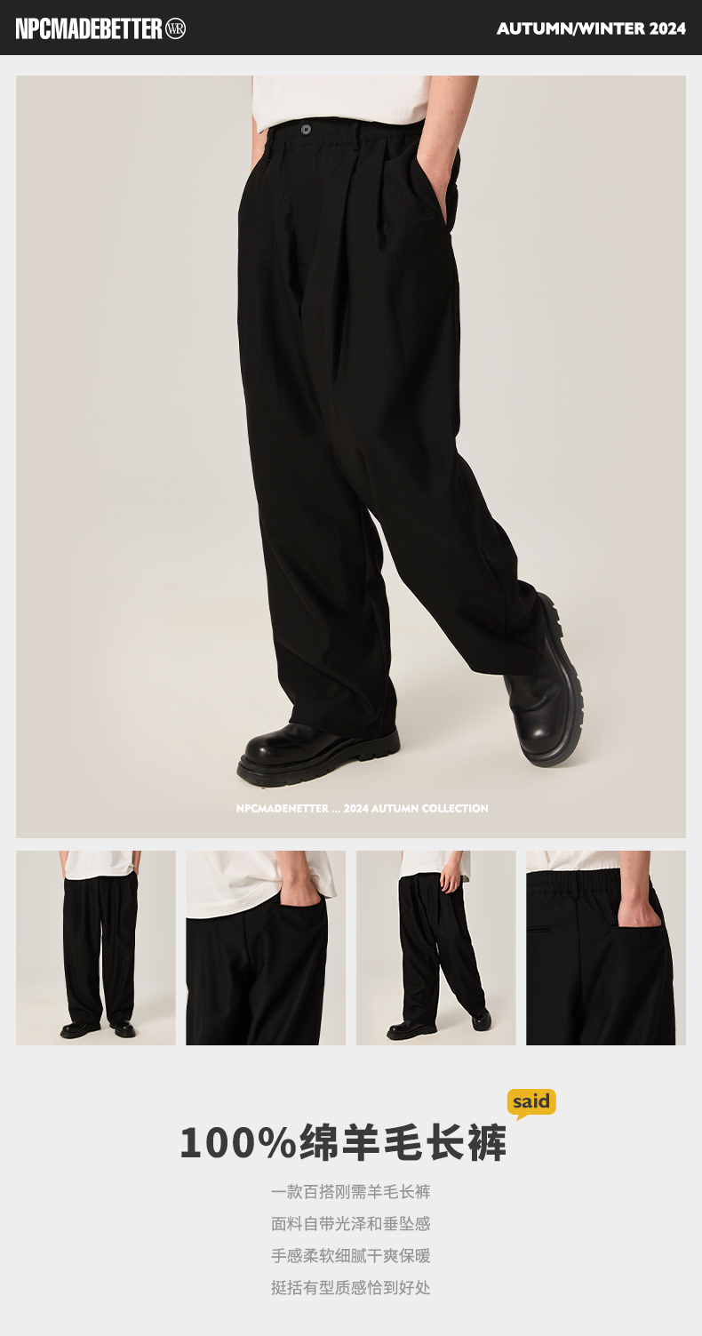 NPC潮牌100%绵羊毛长裤松紧宽腰裤装秋季新款男自然垂感NP46TR06
