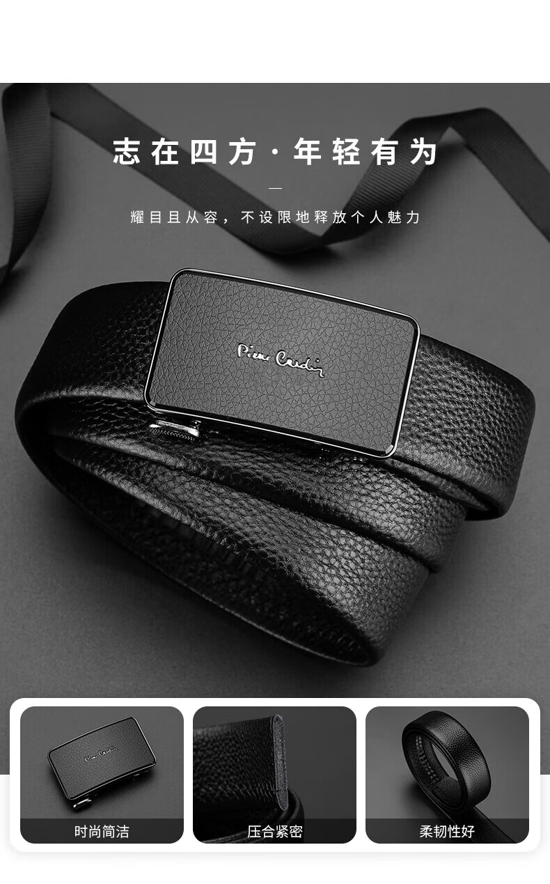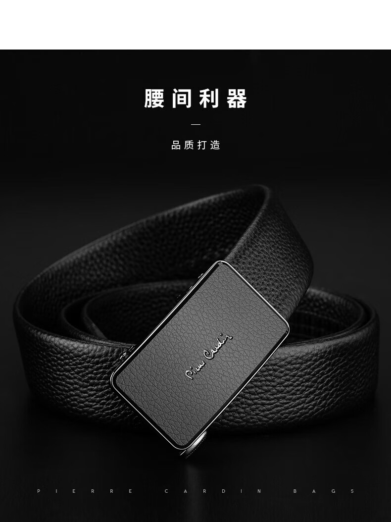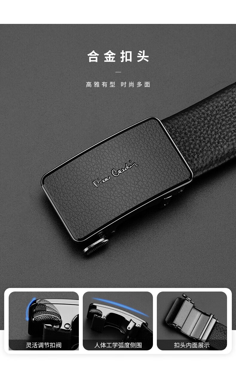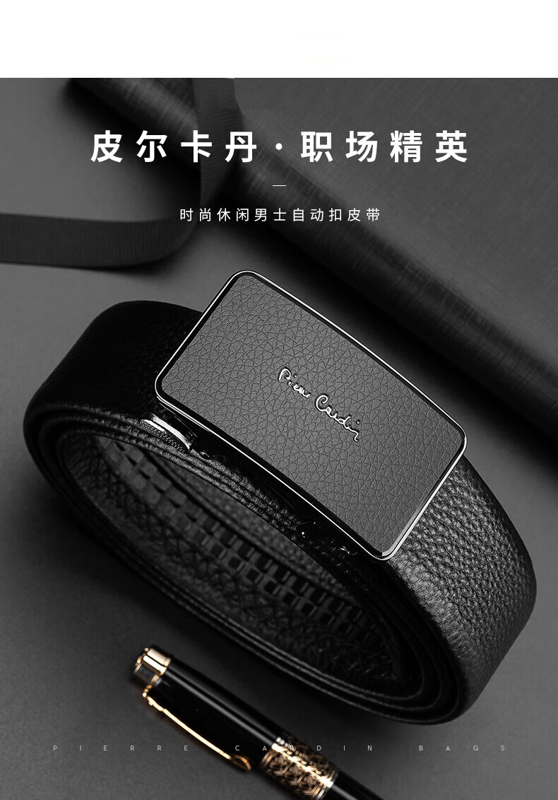 皮尔卡丹皮带男自动扣头层牛皮腰带J2N826Z-1081102A2