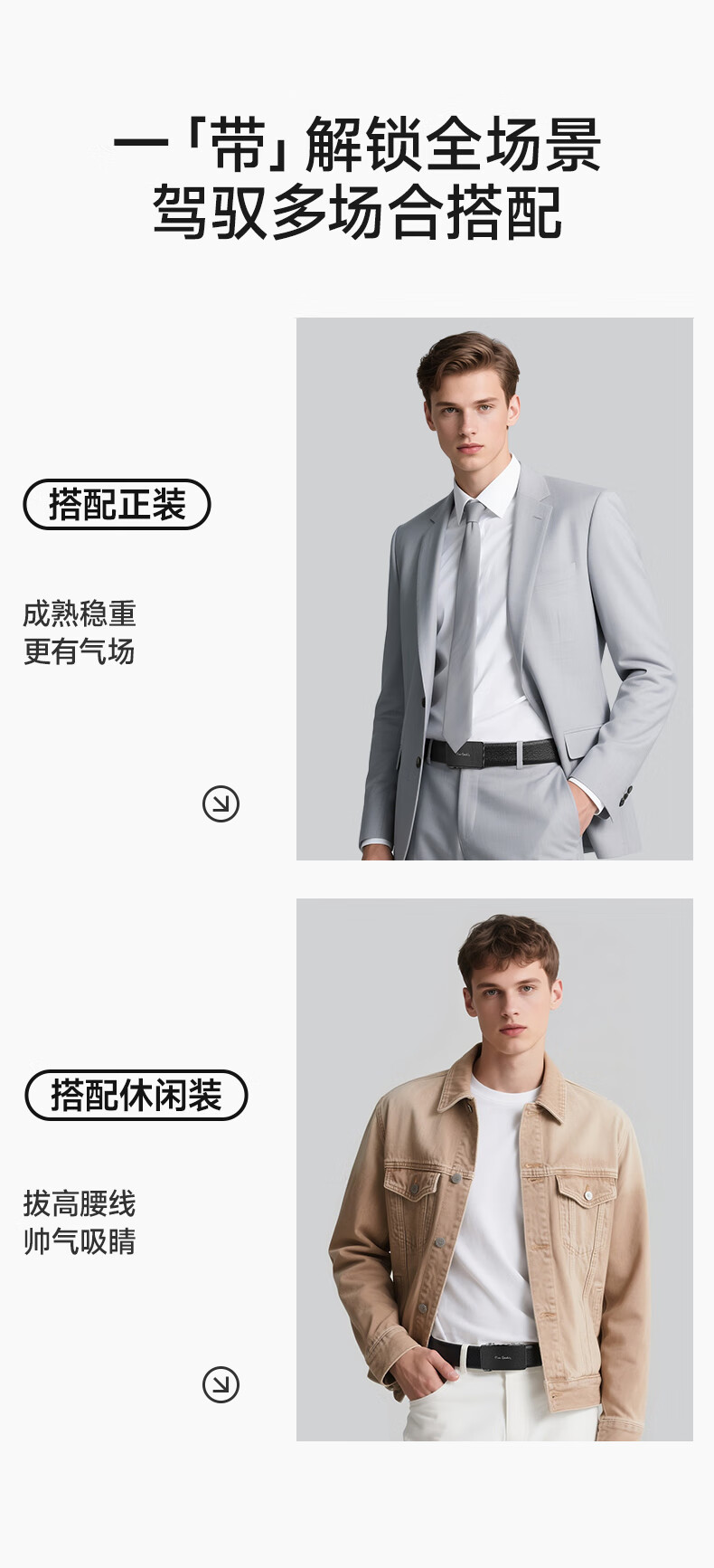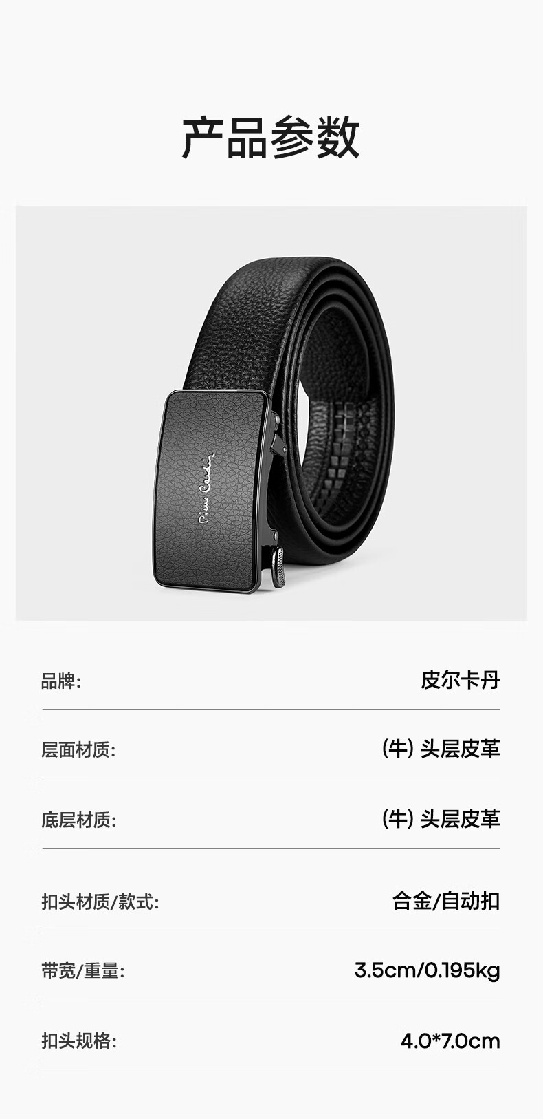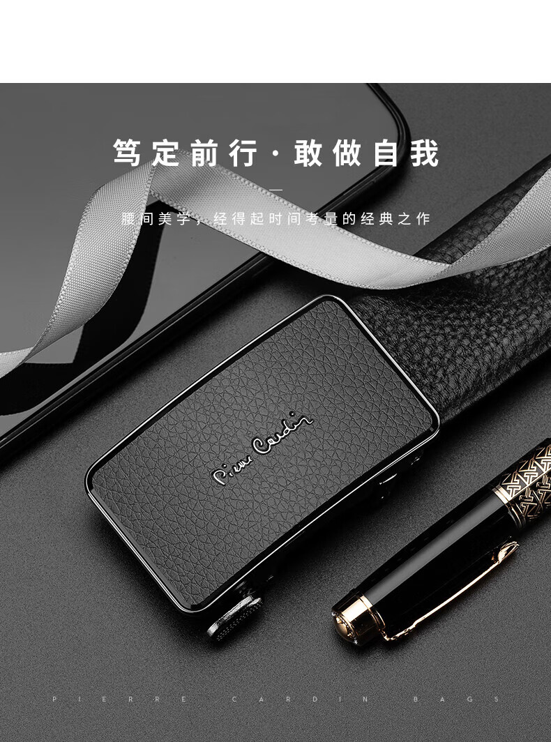 皮尔卡丹皮带男自动扣头层牛皮腰带J2N826Z-1081102A2