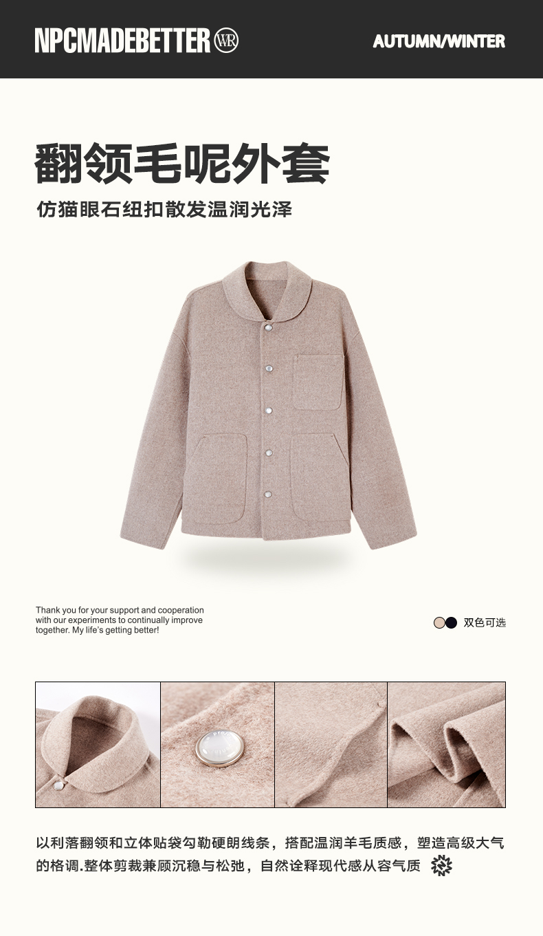 NPC潮牌100%绵羊毛仿【猫眼石】纽扣毛呢外套男静奢风秋NP58WC29