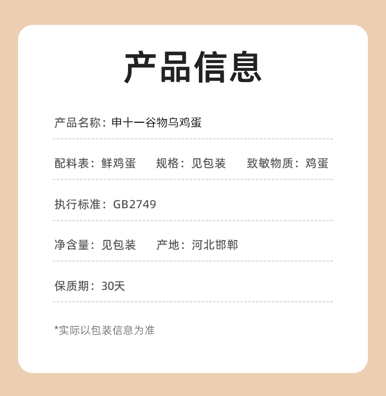 申十一谷物乌鸡蛋绿壳鸡蛋30枚鸡蛋+泡沫盒+稻谷壳JLD103-30枚