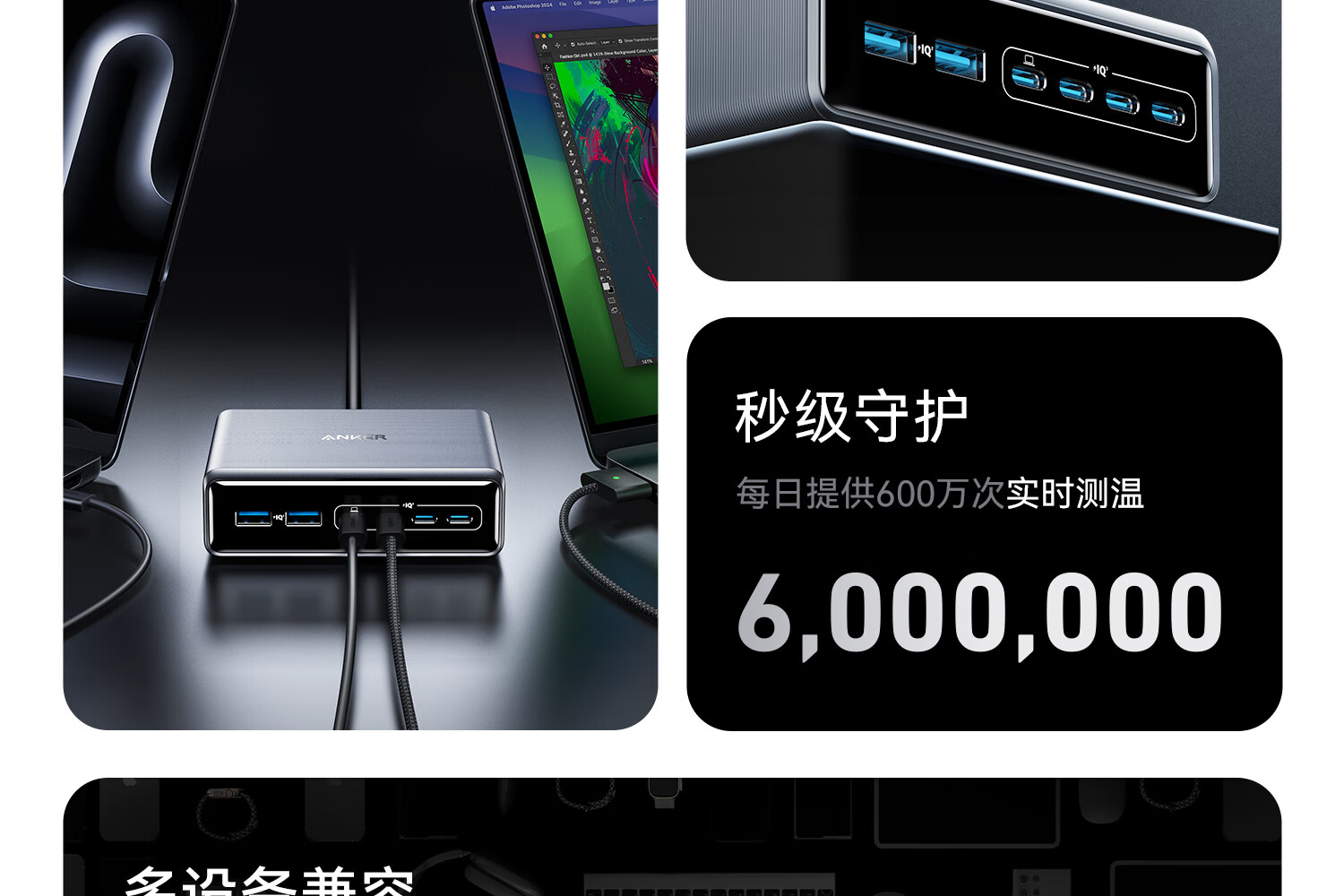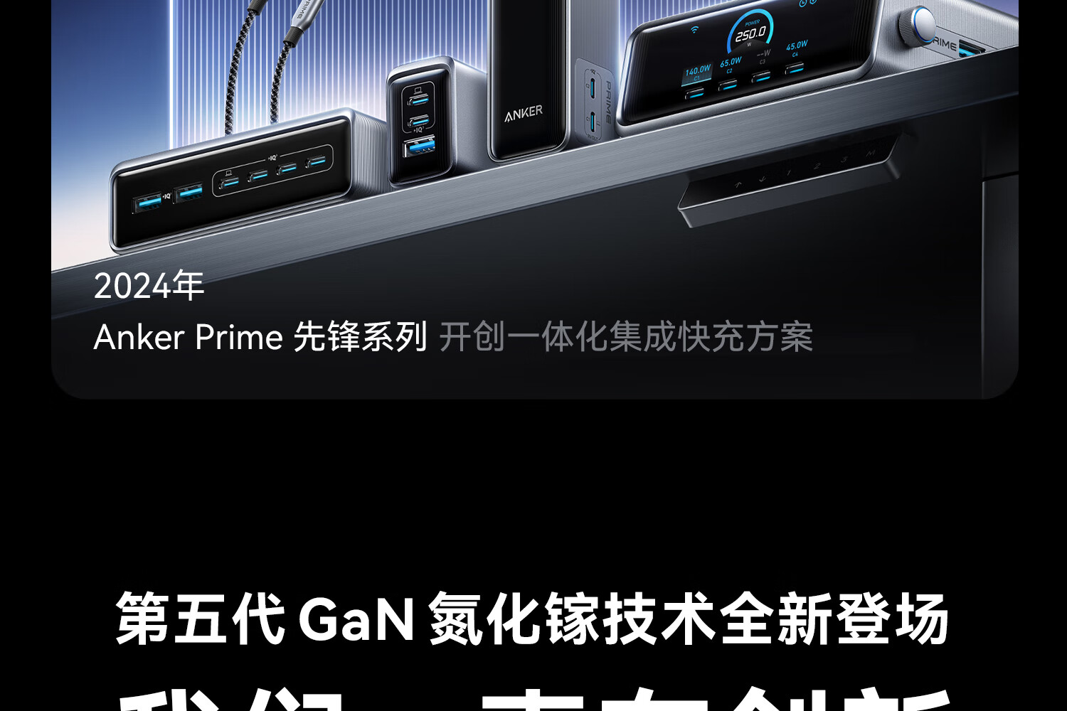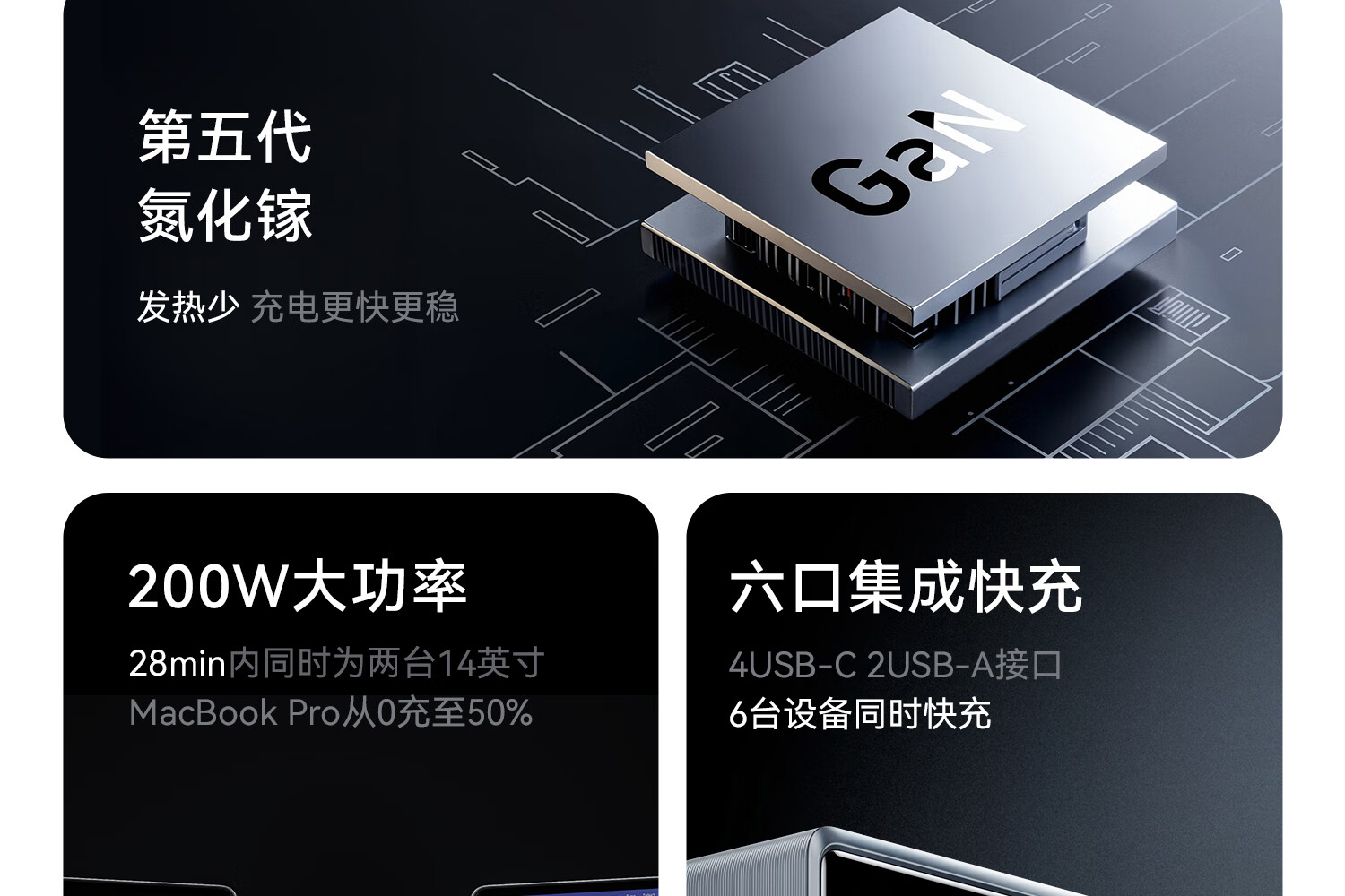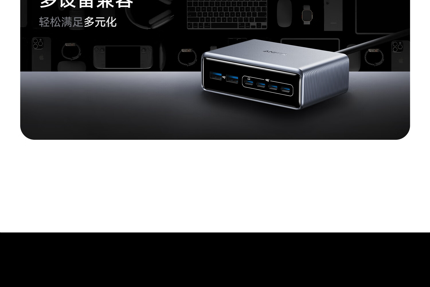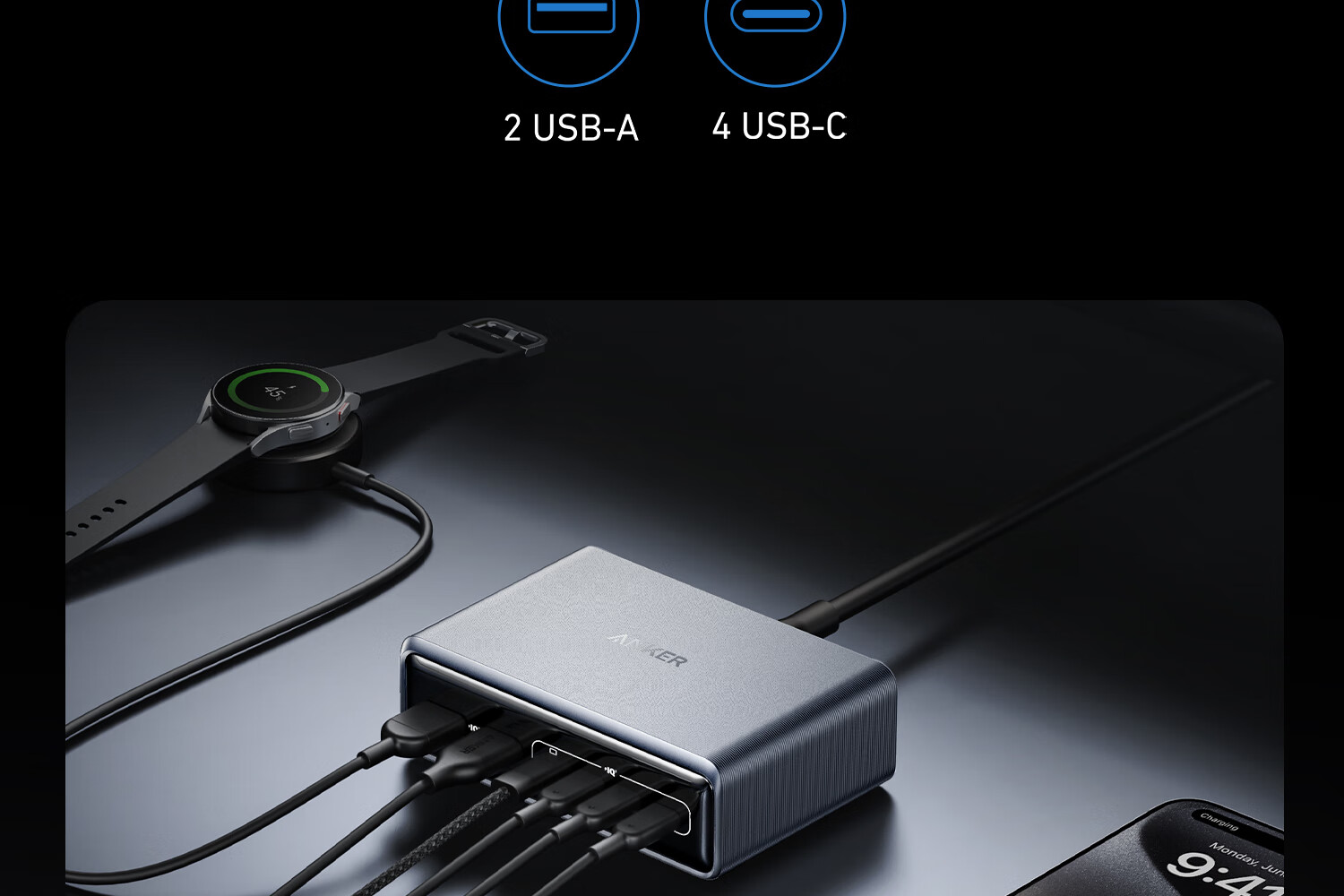安克Anker —200W 6口氮化镓桌面充电器A2683