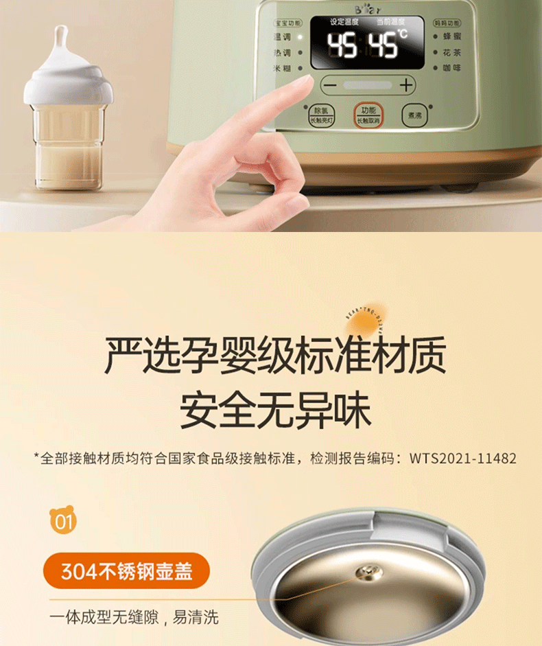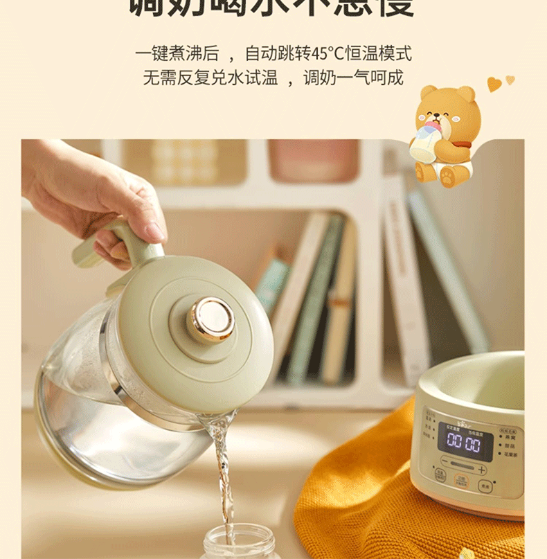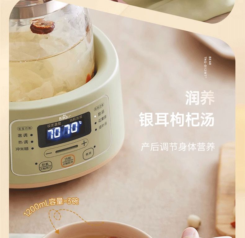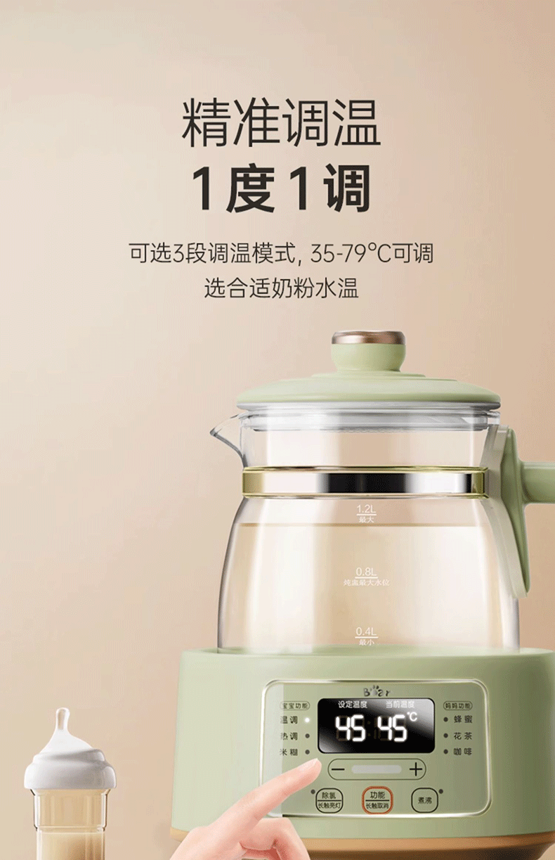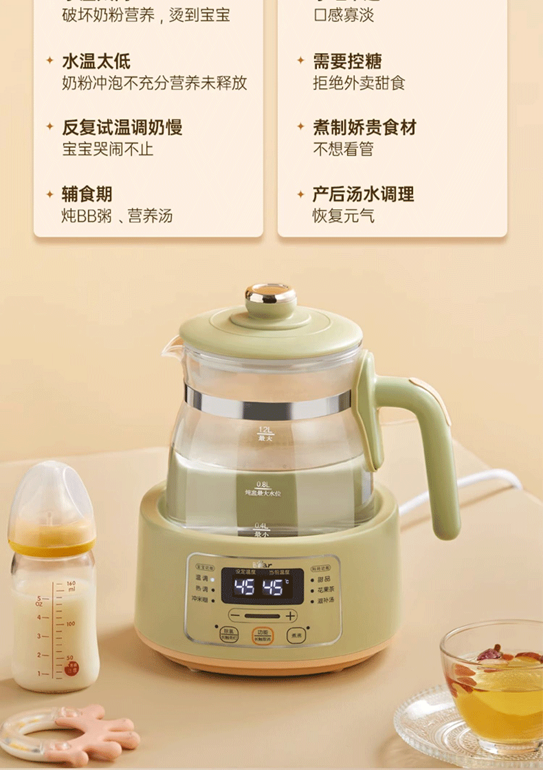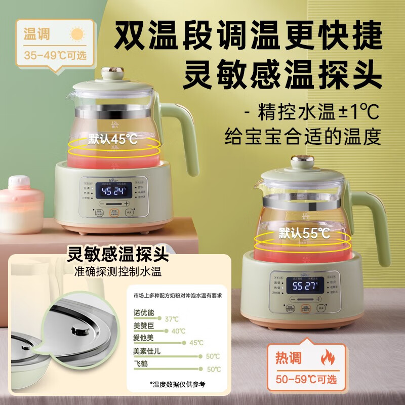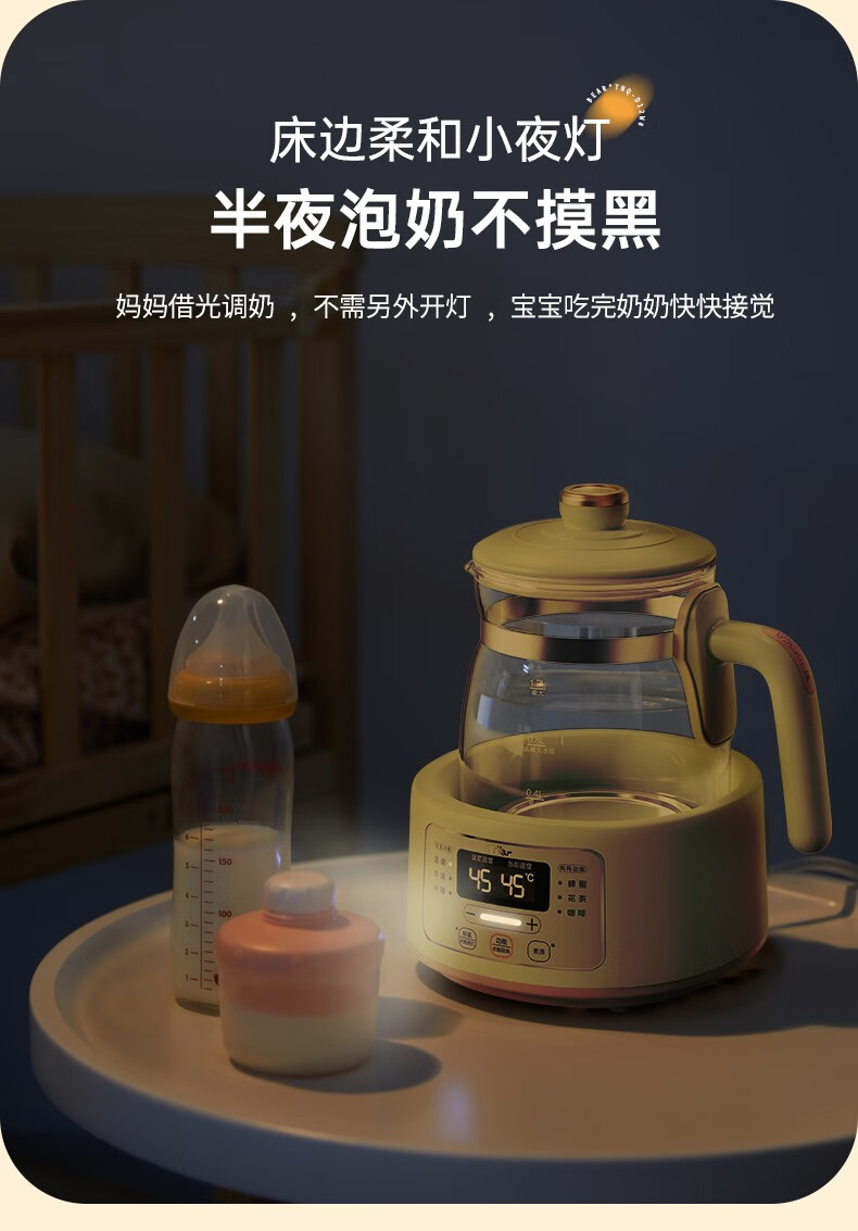 小熊(Bear)恒温水壶婴儿恒温壶调奶器温奶器暖奶家用养生壶冲奶粉电热水壶 小夜灯/316不锈钢 TNQ-D12W7