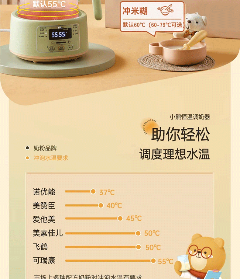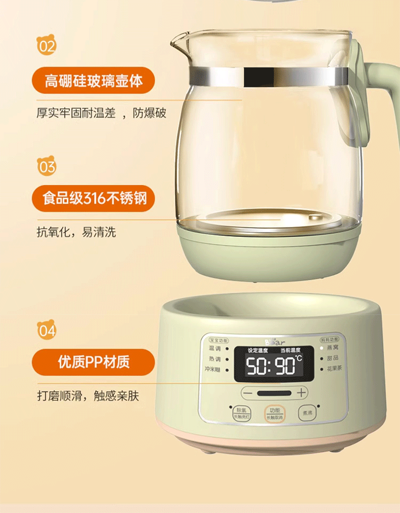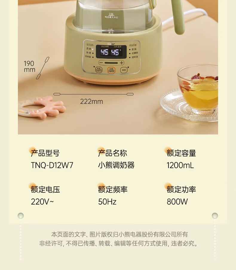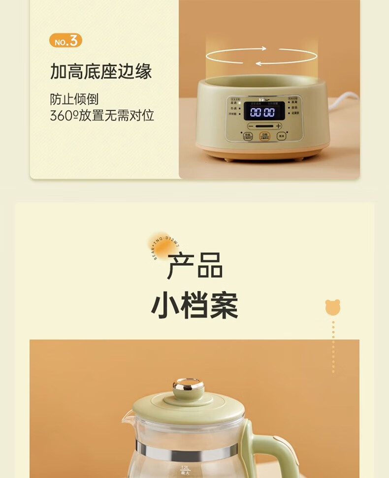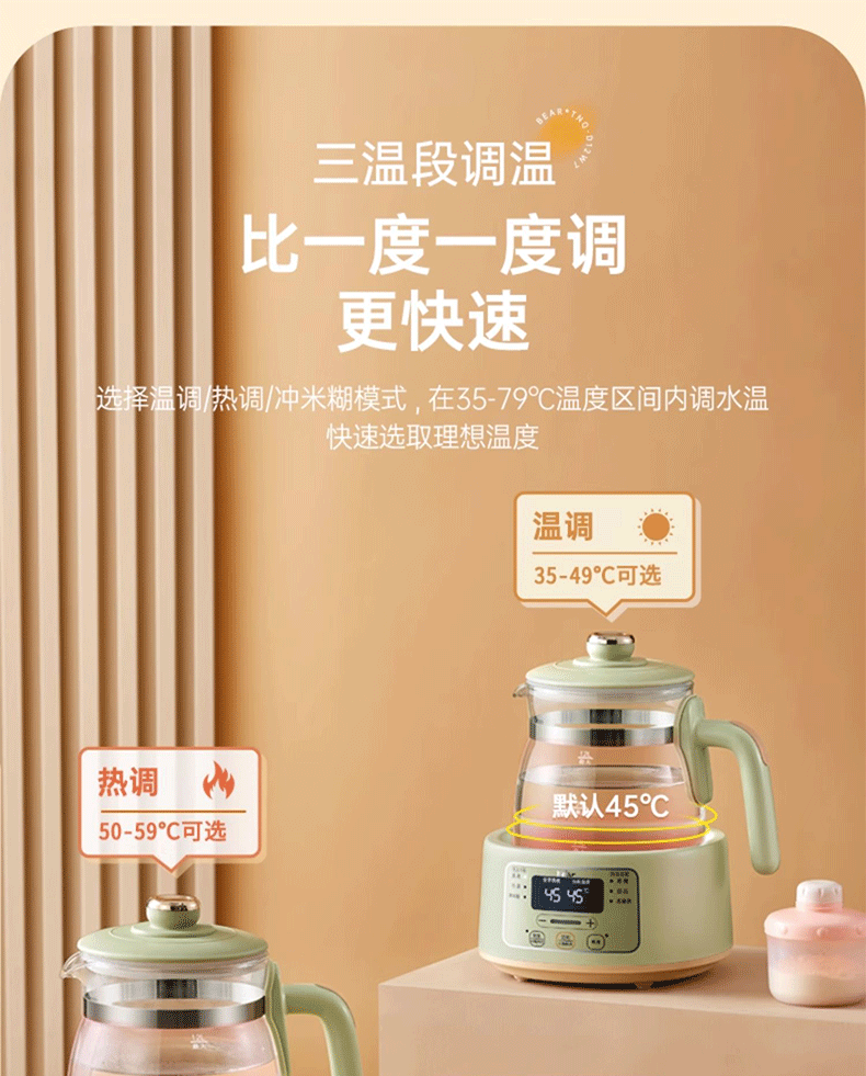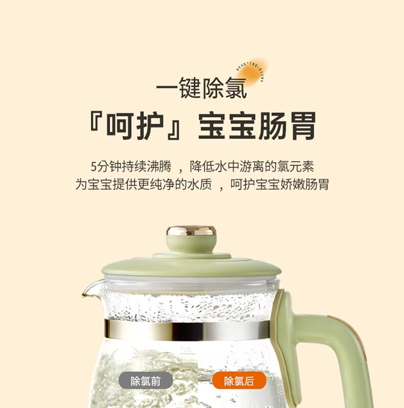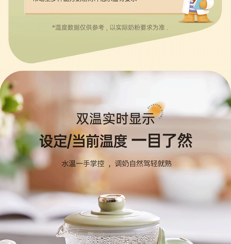 小熊(Bear)恒温水壶婴儿恒温壶调奶器温奶器暖奶家用养生壶冲奶粉电热水壶 小夜灯/316不锈钢 TNQ-D12W7