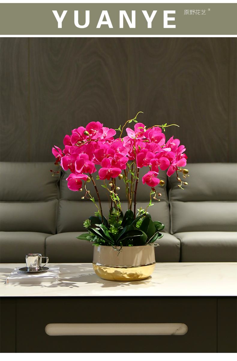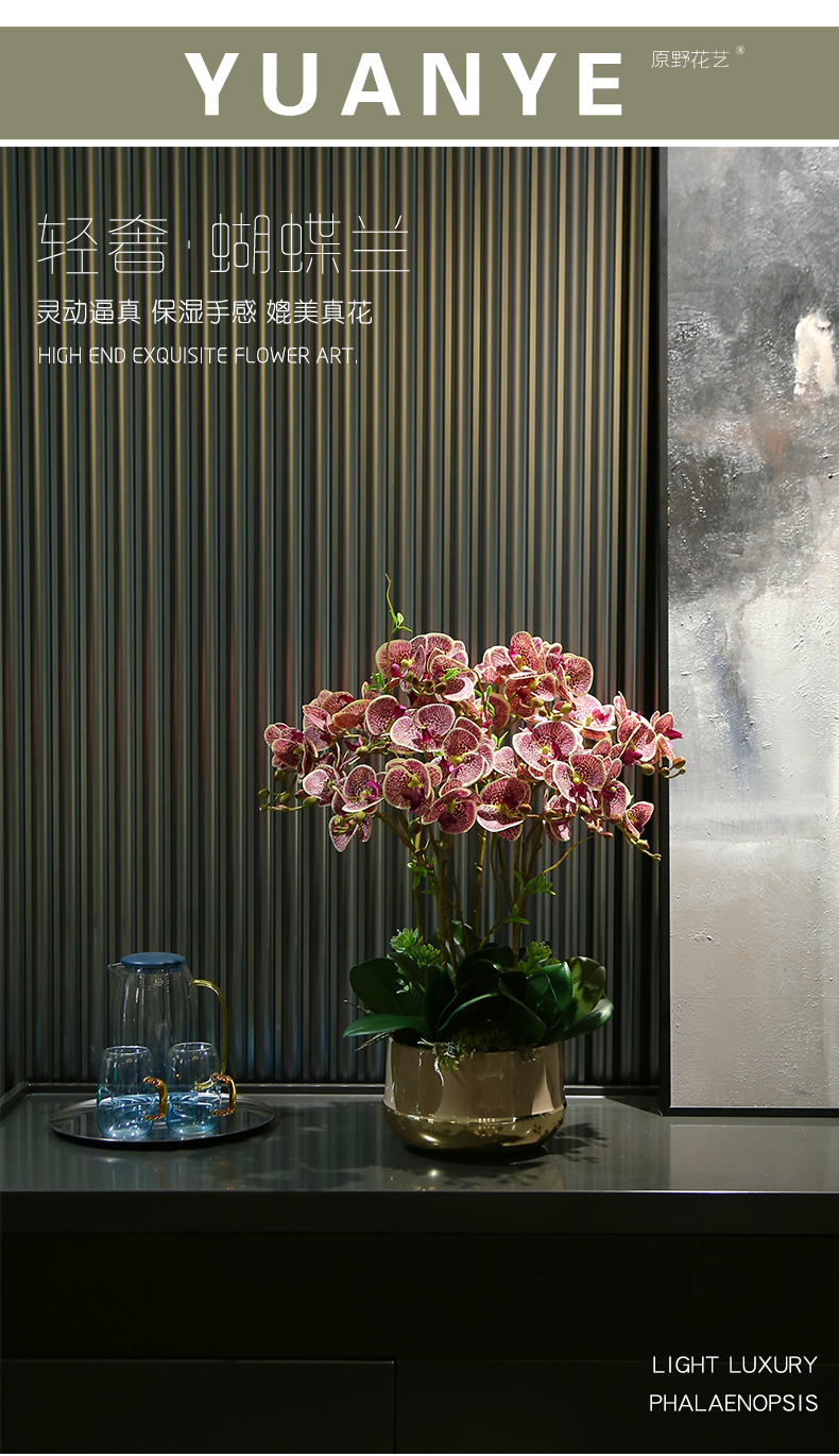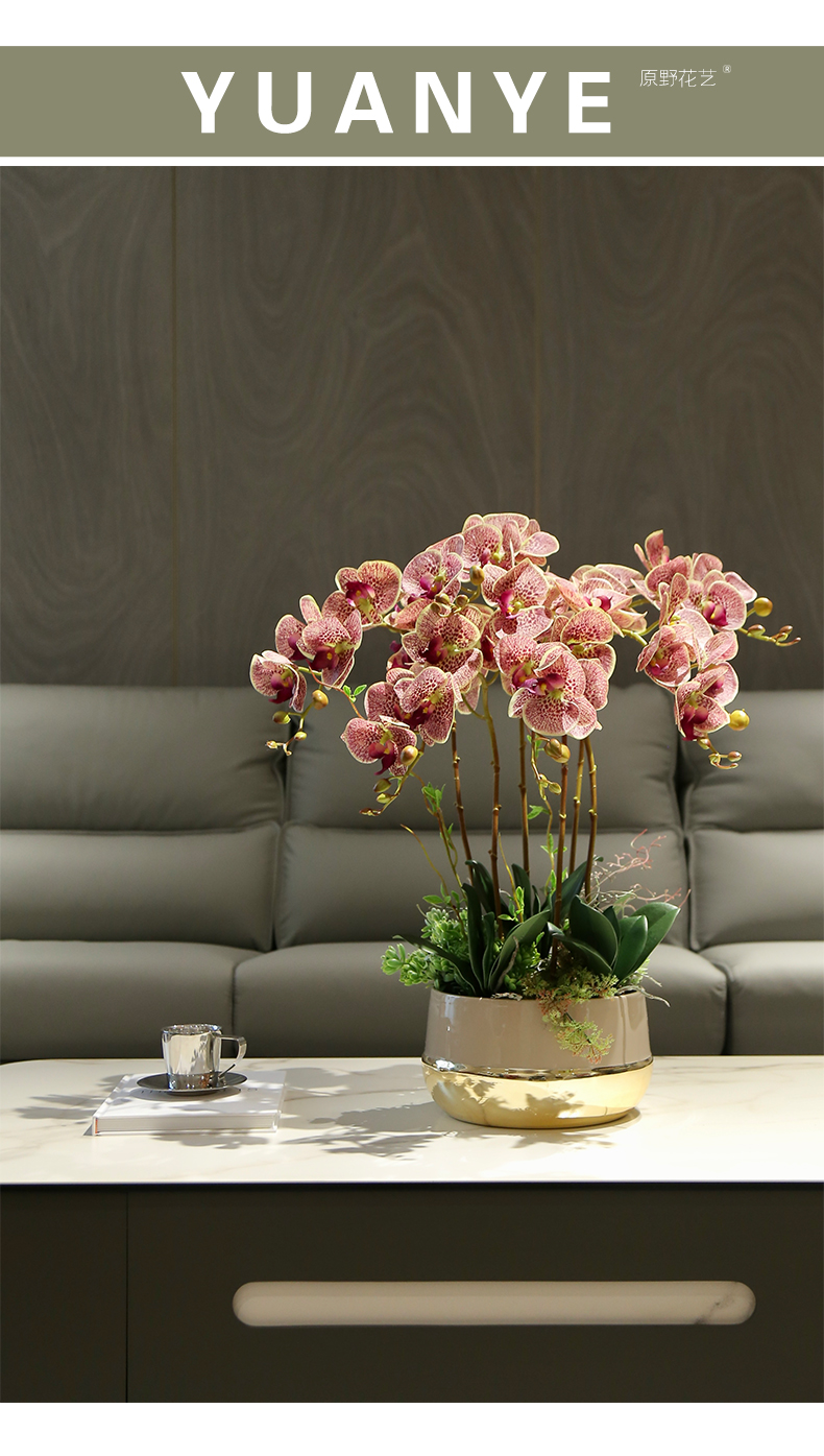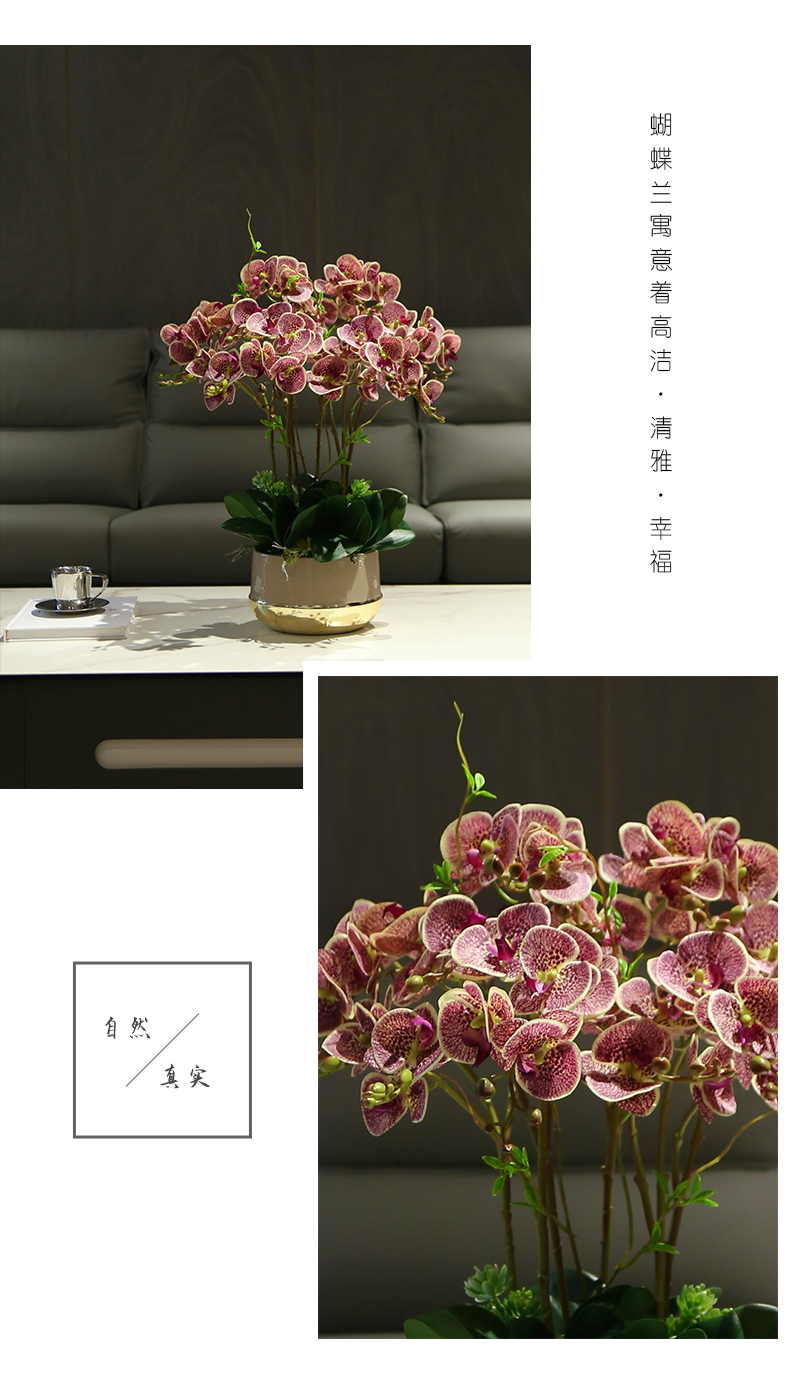 蝴蝶兰仿真花轻奢高档兰花手感保湿假花盆景客厅大堂酒店装饰摆件