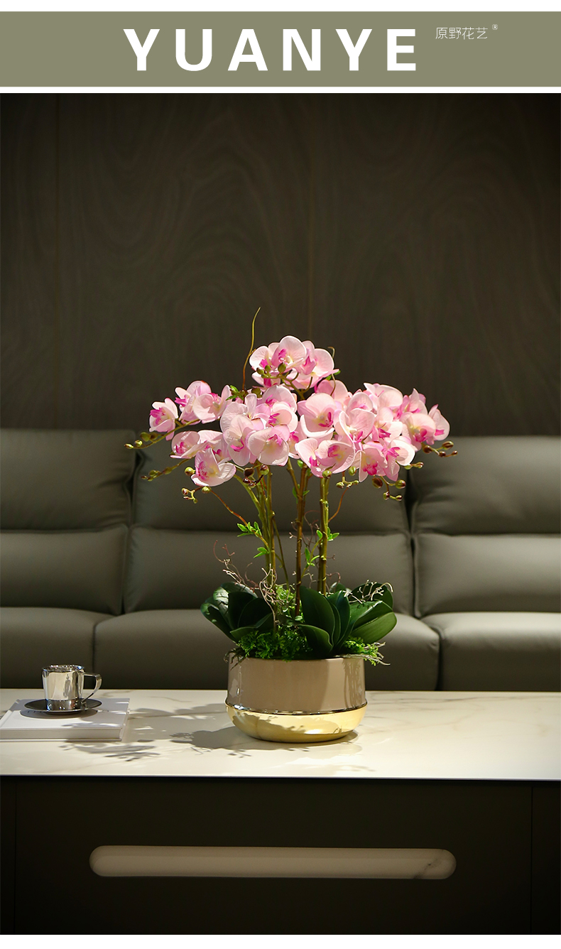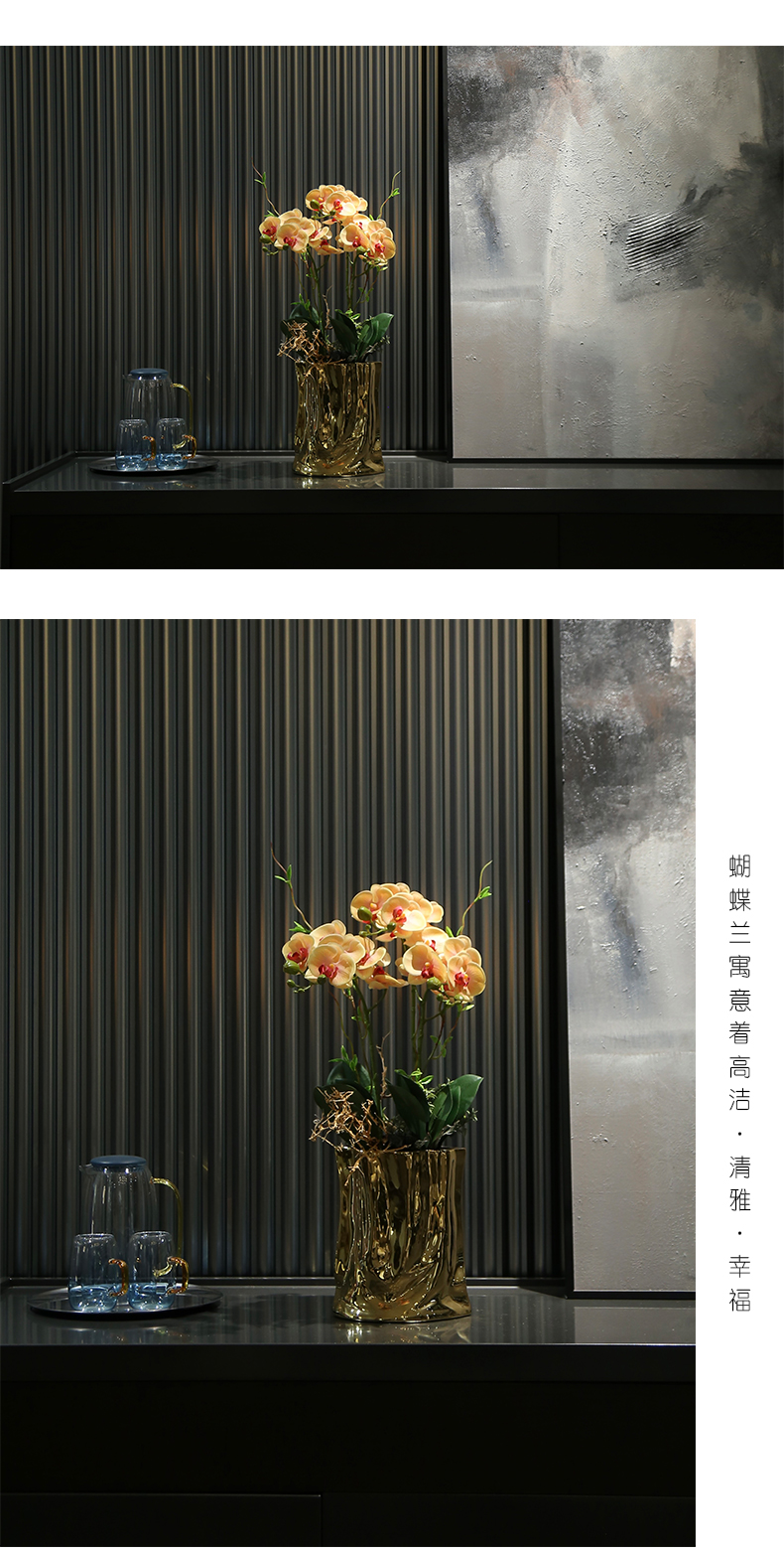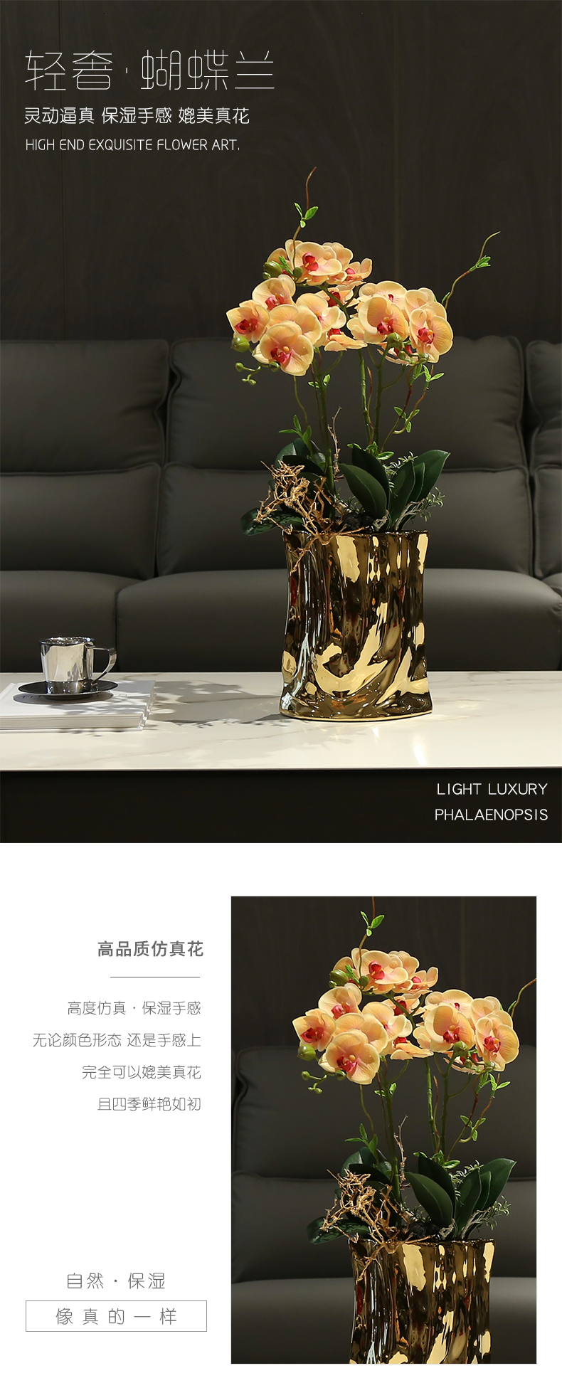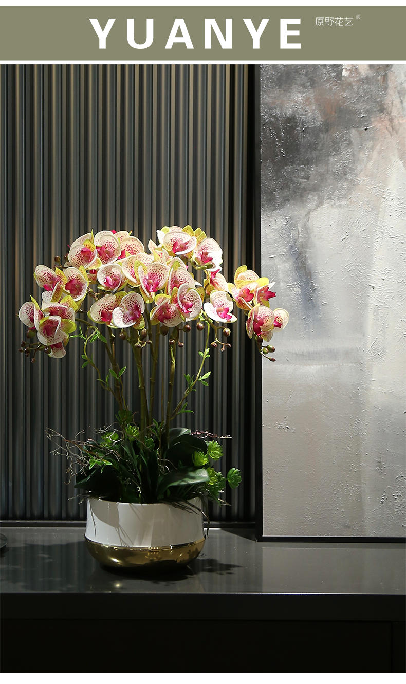 蝴蝶兰仿真花轻奢高档兰花手感保湿假花盆景客厅大堂酒店装饰摆件