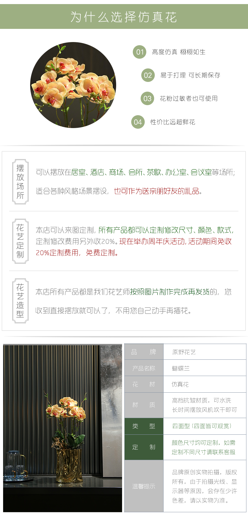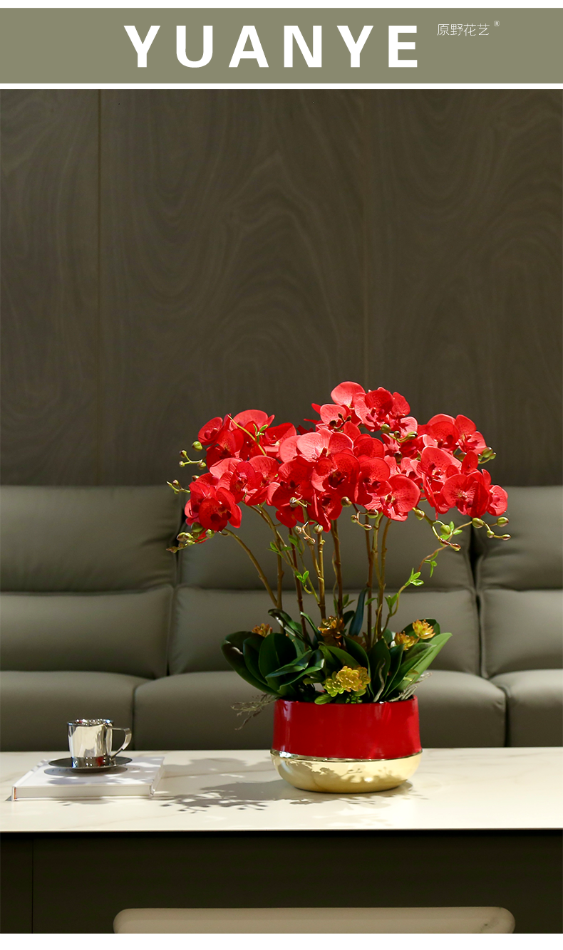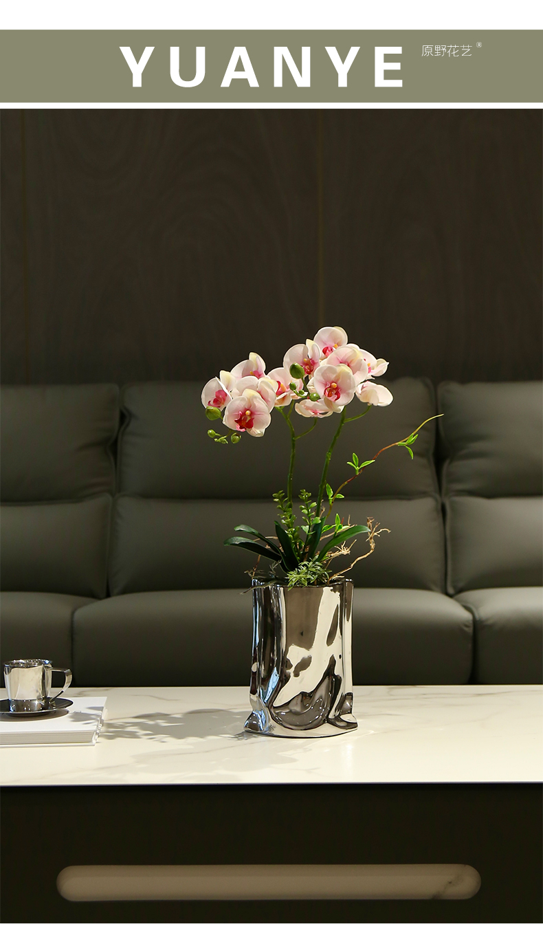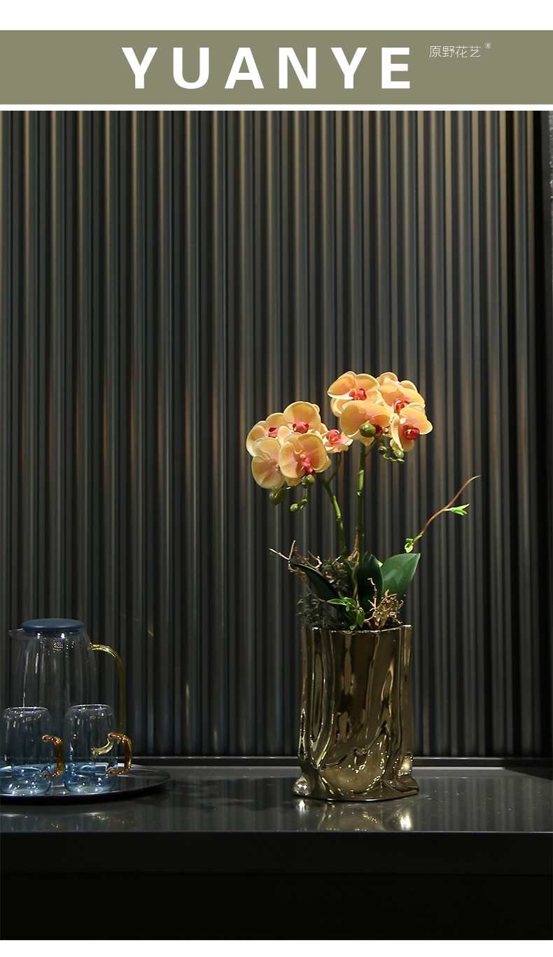 蝴蝶兰仿真花轻奢高档兰花手感保湿假花盆景客厅大堂酒店装饰摆件