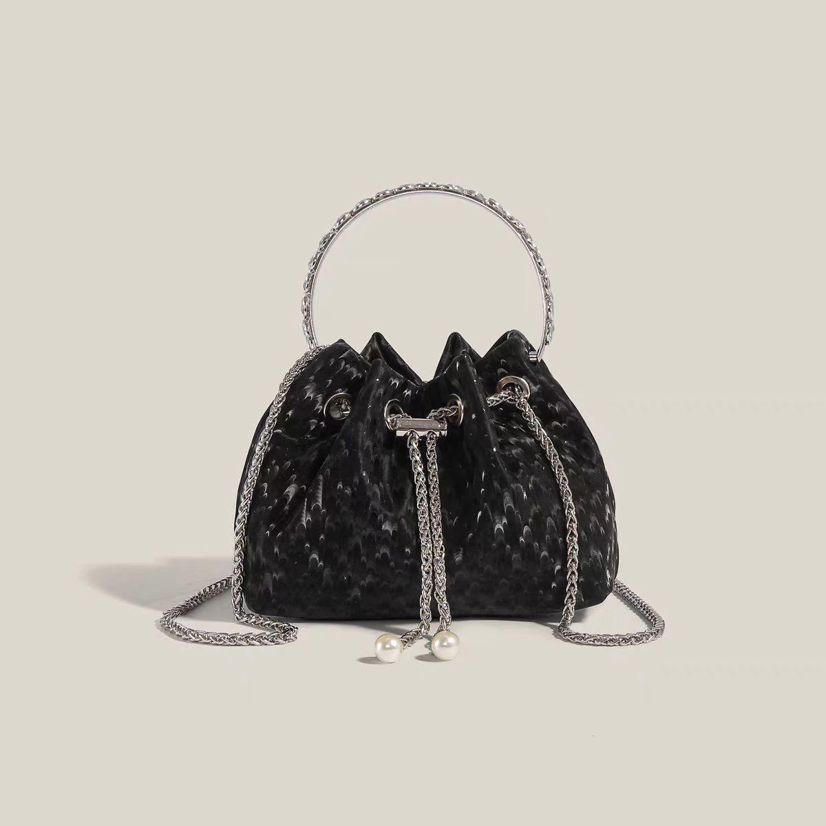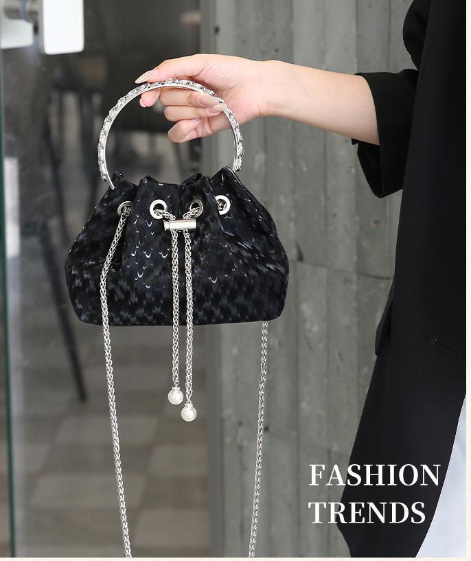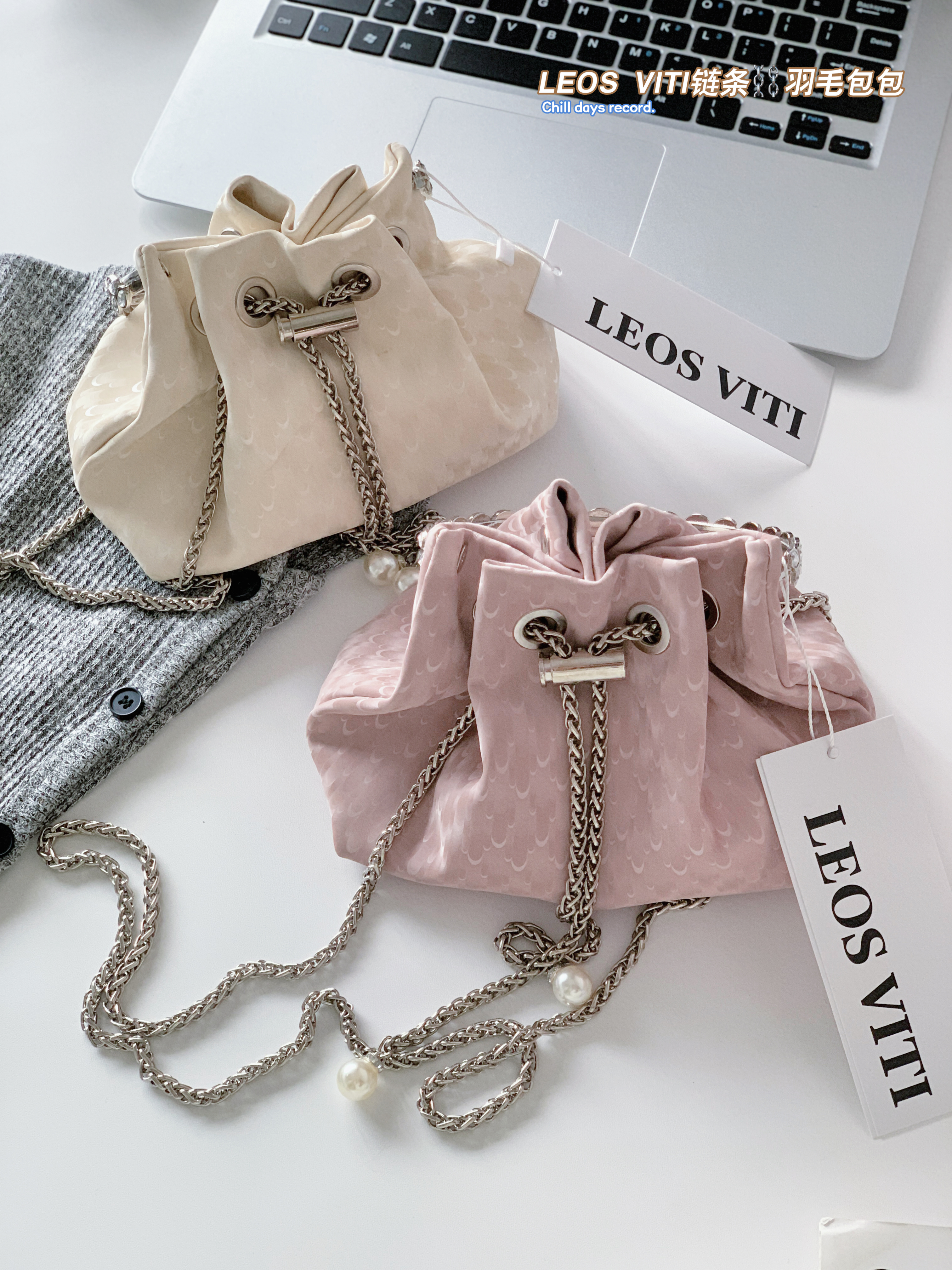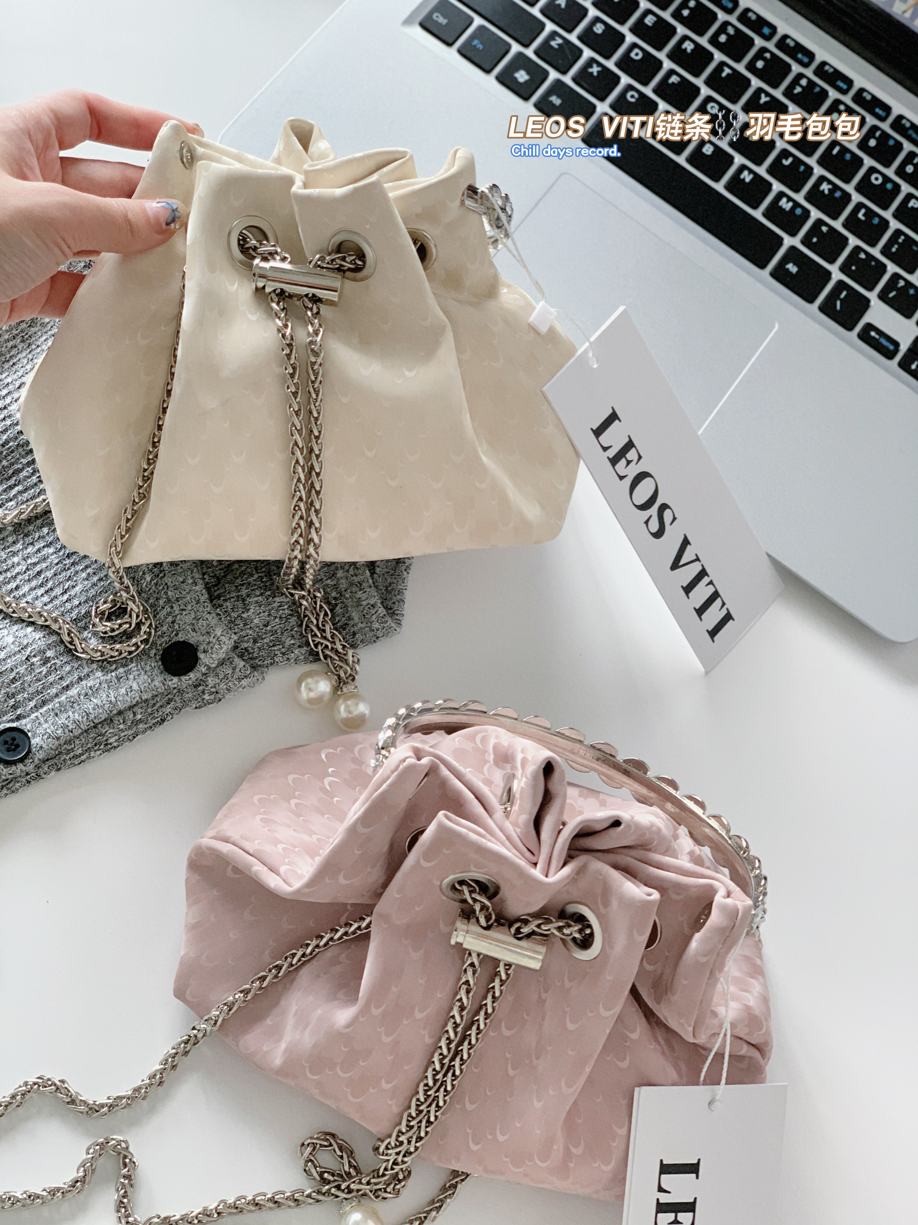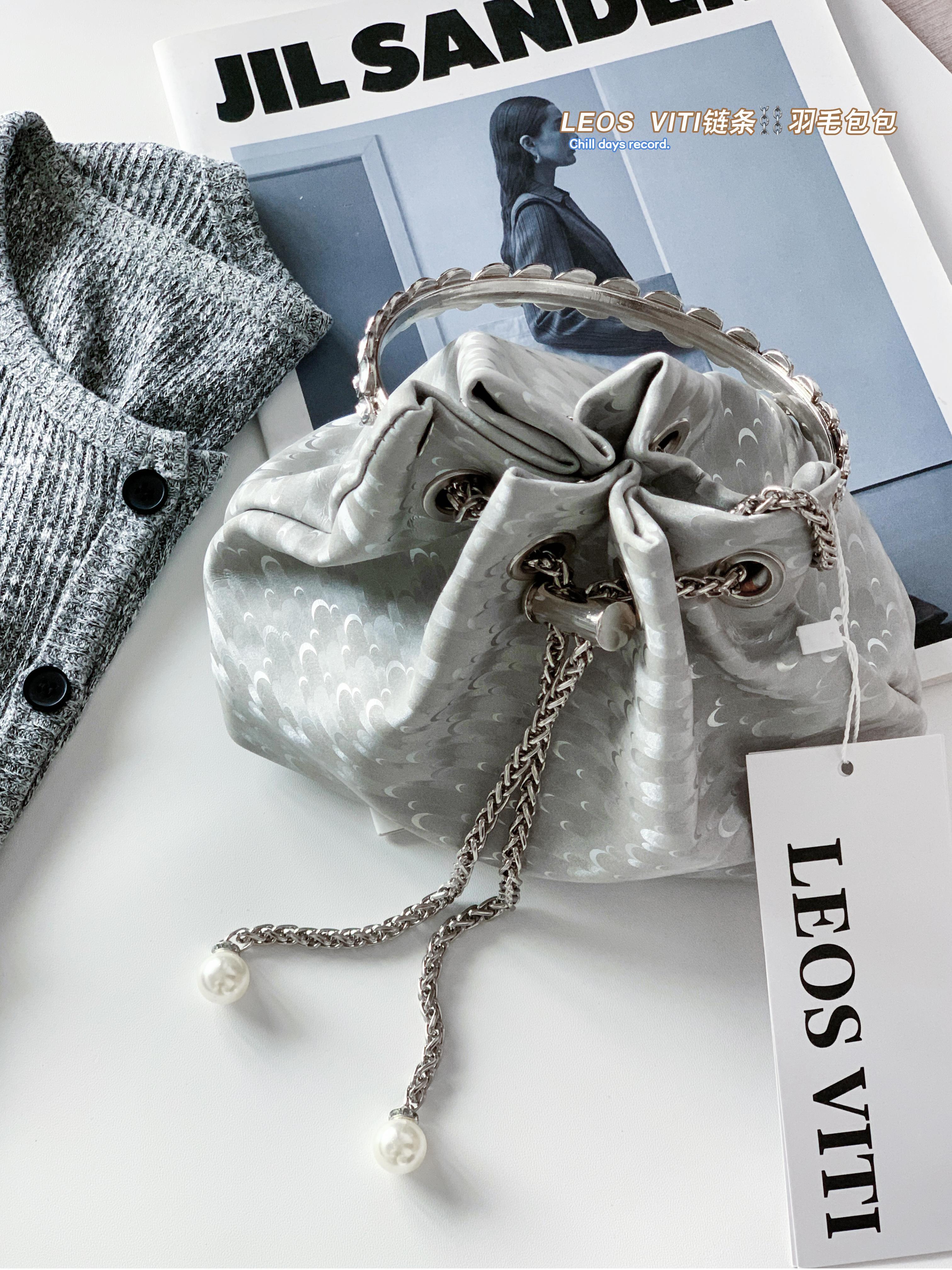 【品名】Leos Viti链条羽毛包包【颜色】黑色、白色、粉色、银色【材质】pu【尺寸】长20cm 厚度12cm 高度19cm【发货地】广州