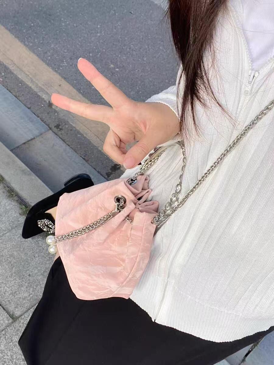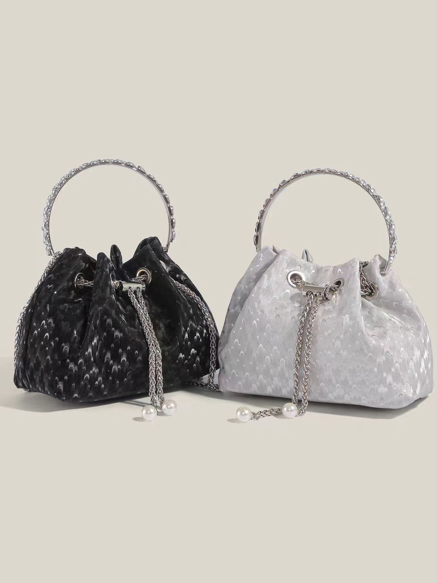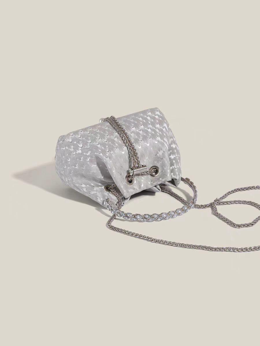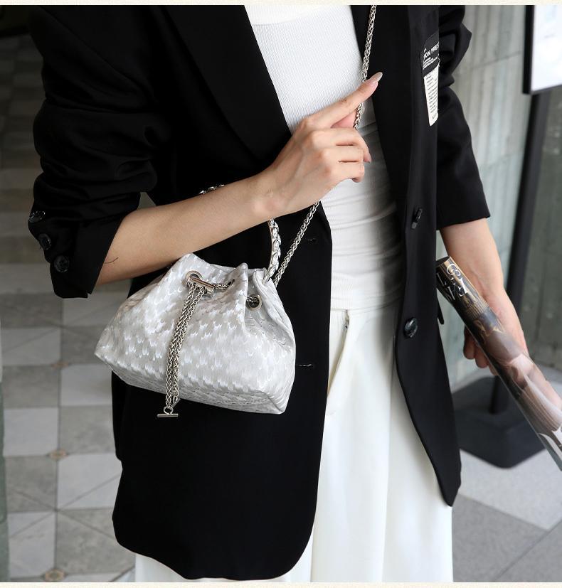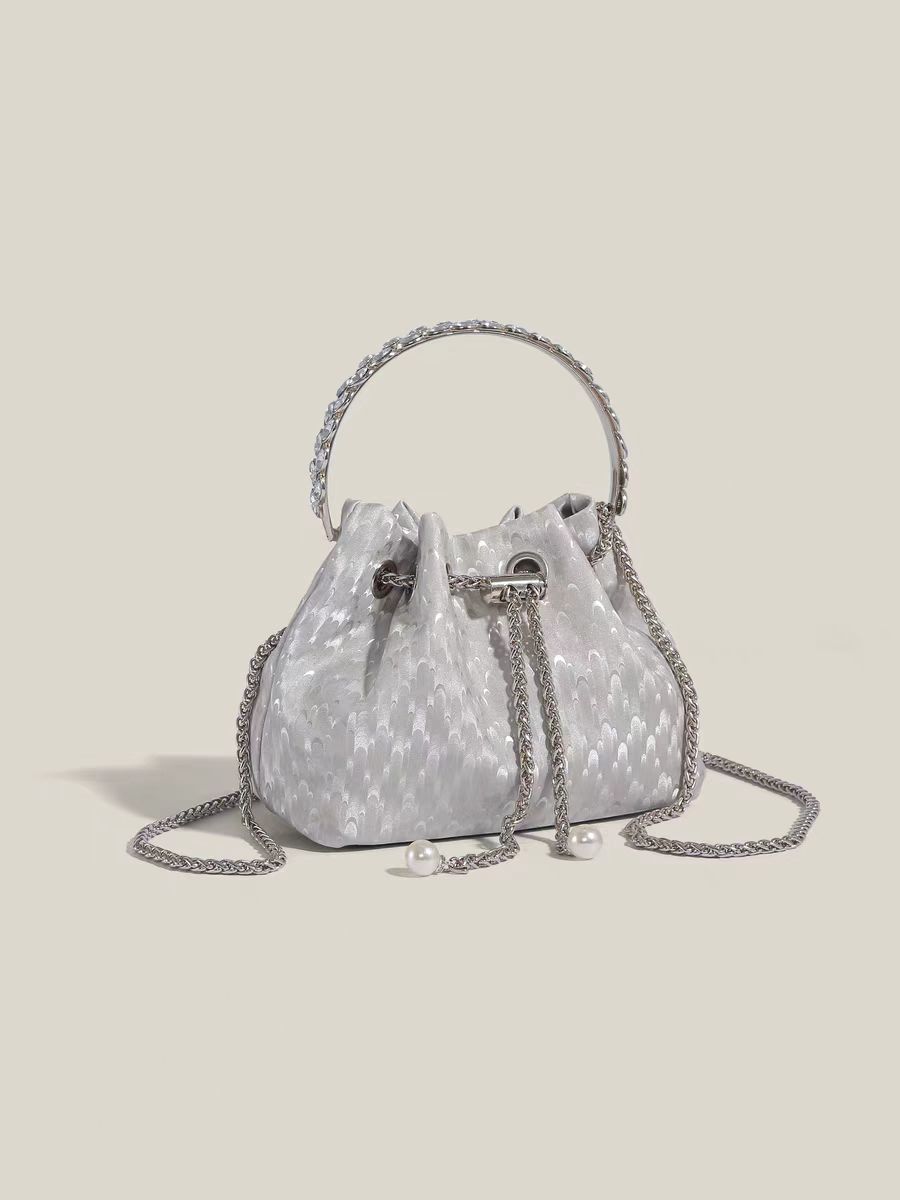 【品名】Leos Viti链条羽毛包包【颜色】黑色、白色、粉色、银色【材质】pu【尺寸】长20cm 厚度12cm 高度19cm【发货地】广州