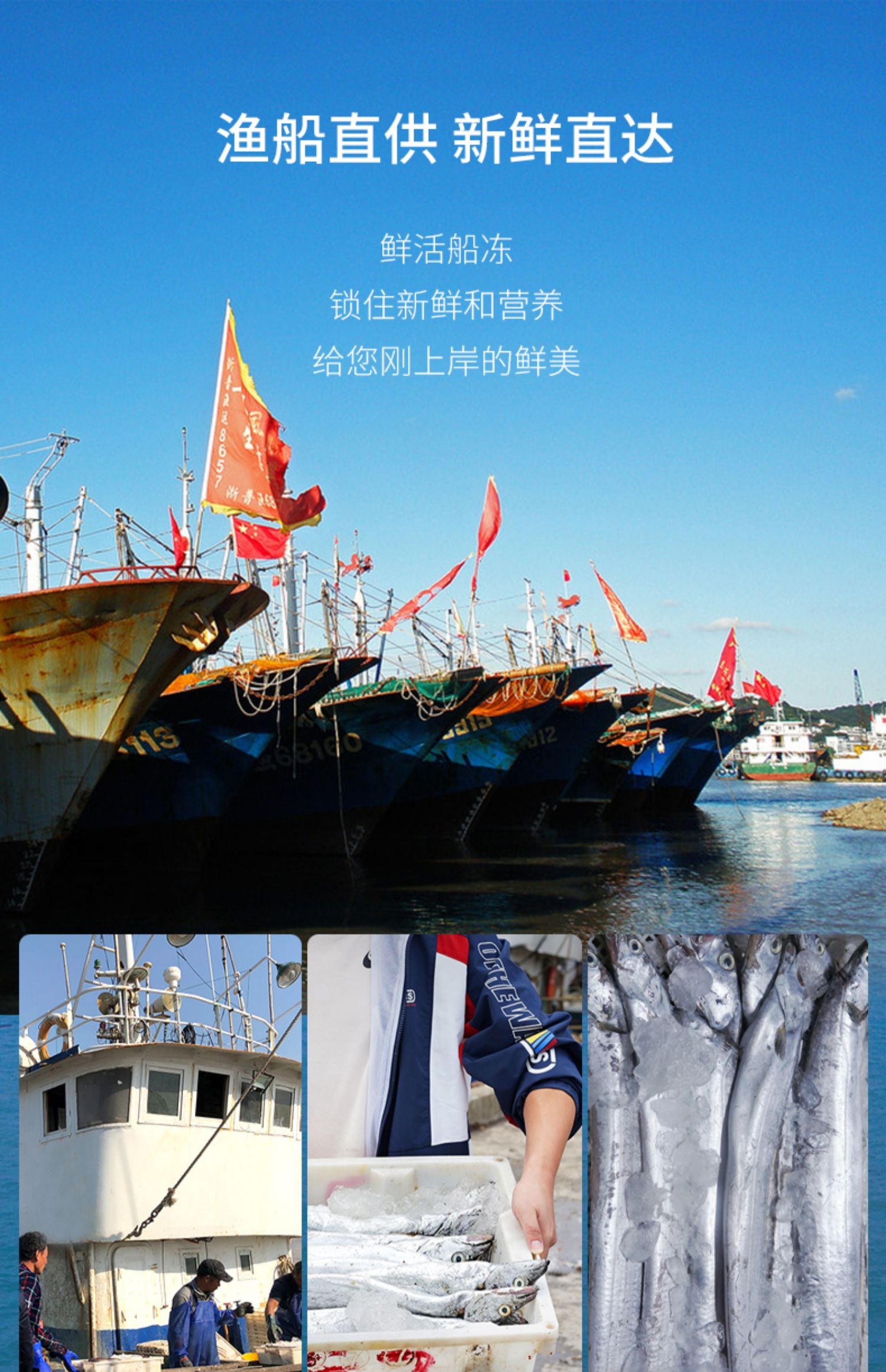 鲜到鲜得真正舟山带鱼 1000g装(8-9条装)去头去尾