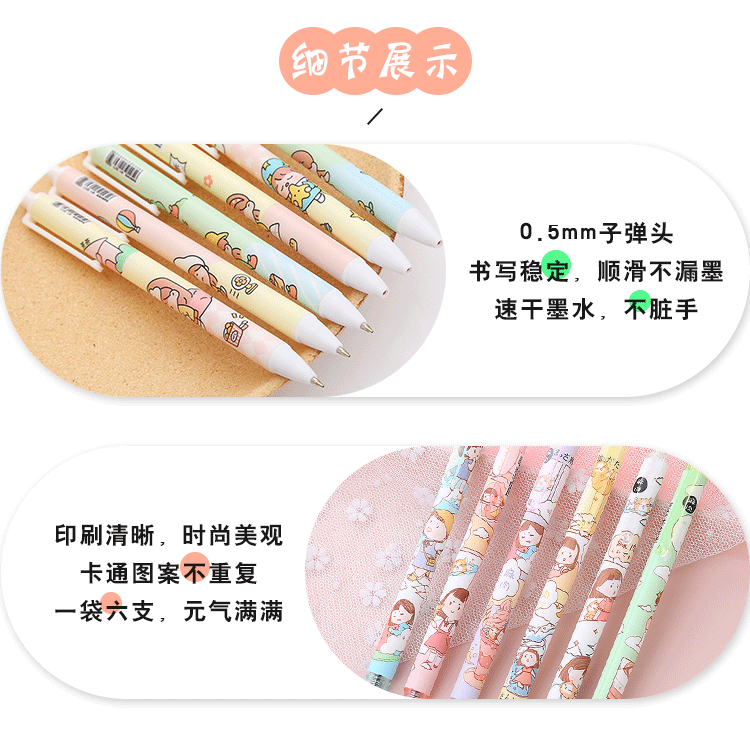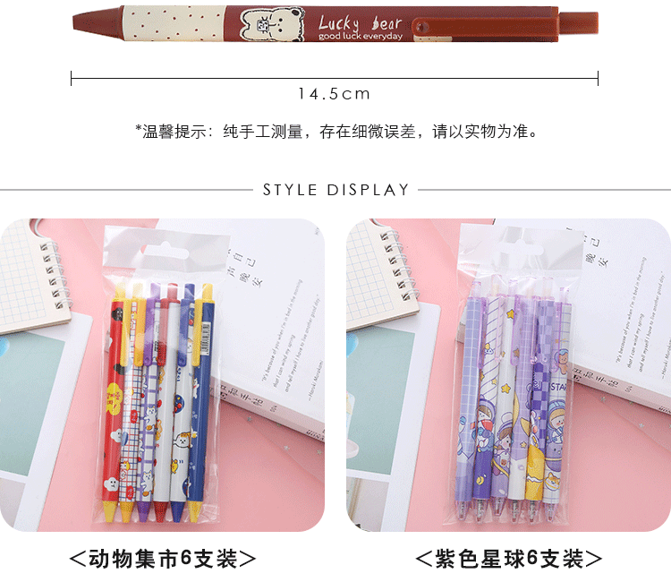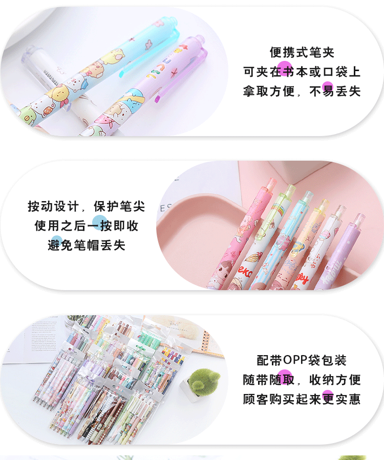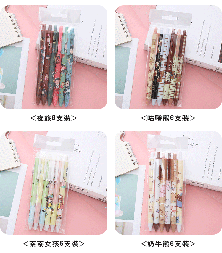 奶牛熊按动中性笔黑色子弹头0.5mm/支高颜值学生按压水笔办公文具/支