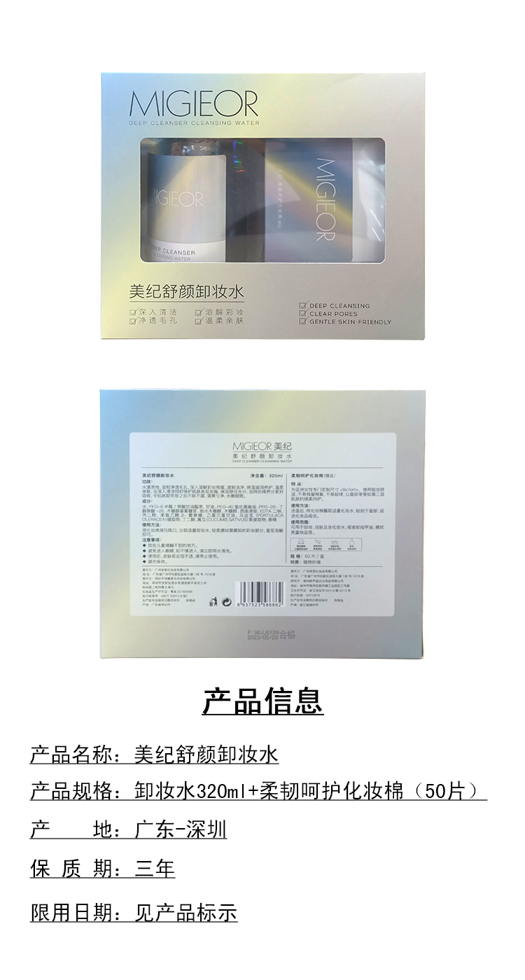 美纪舒颜卸妆水320ml+50片【30171357】
