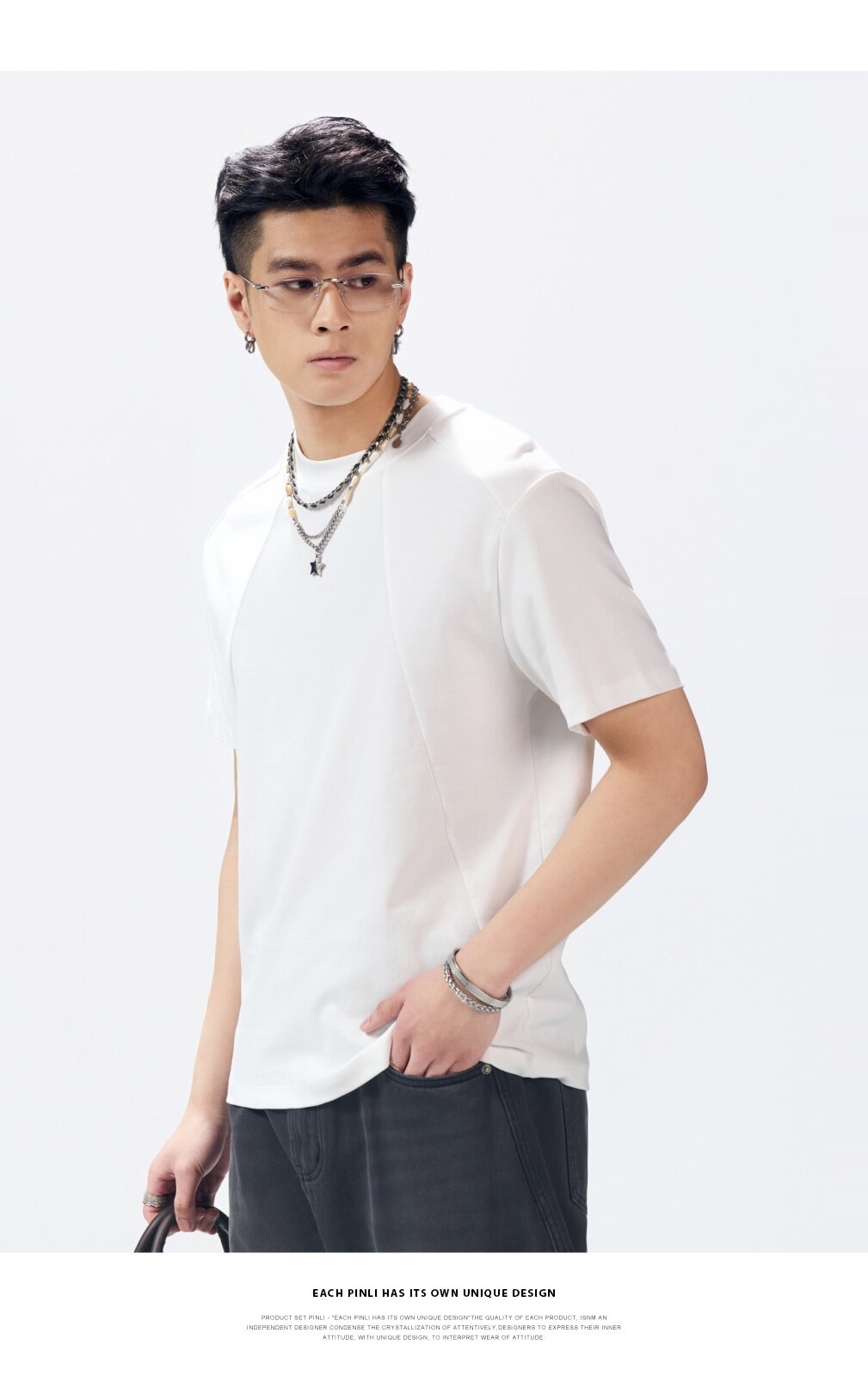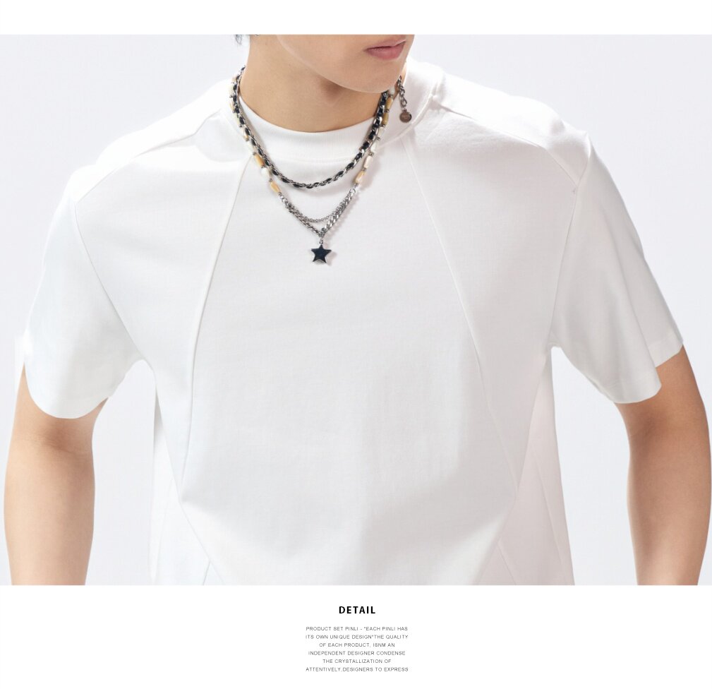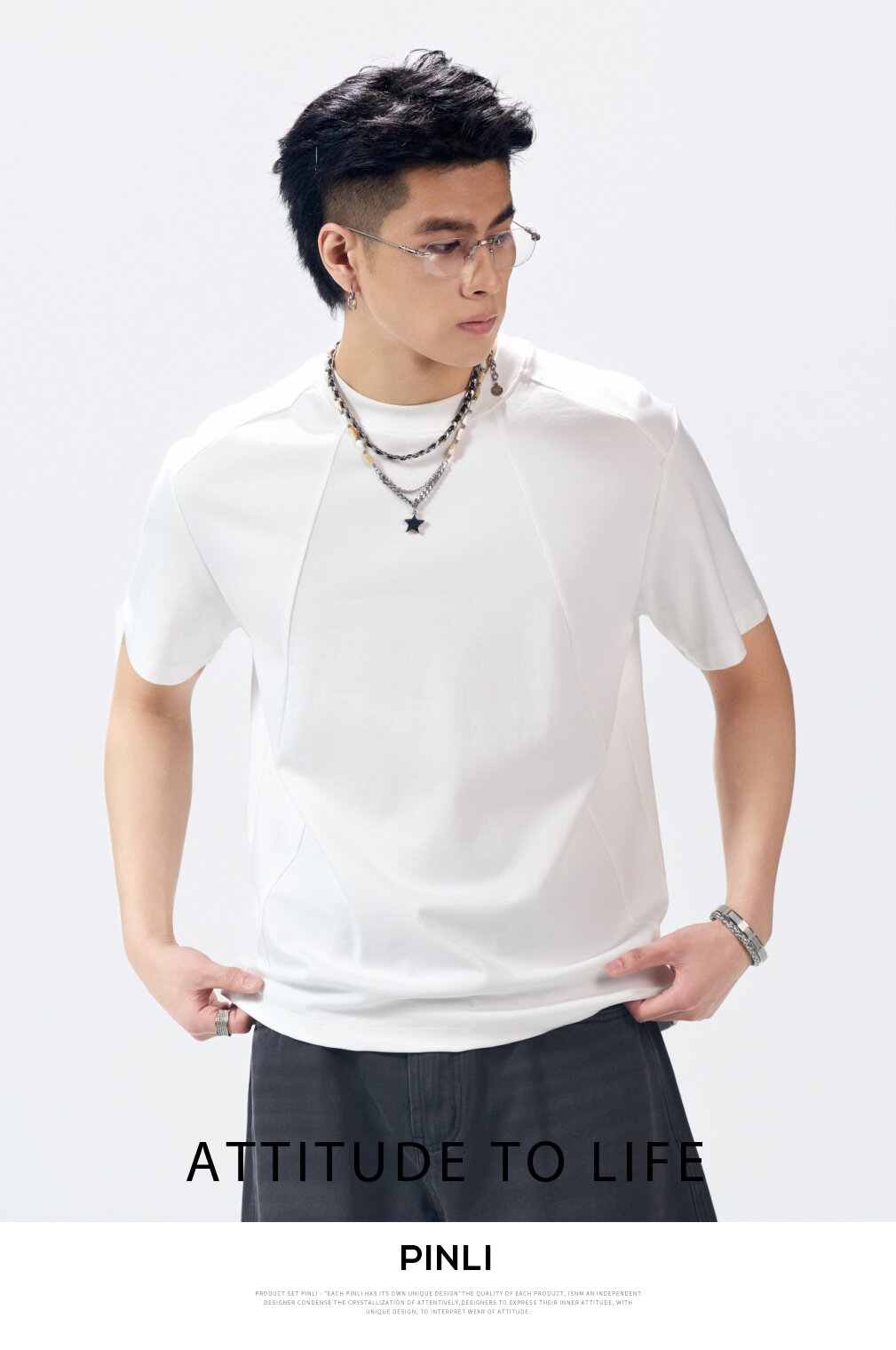 PINLI品立2026夏季新款青年纯色百搭圆领落肩袖短袖T恤上衣潮牌男GD262111046