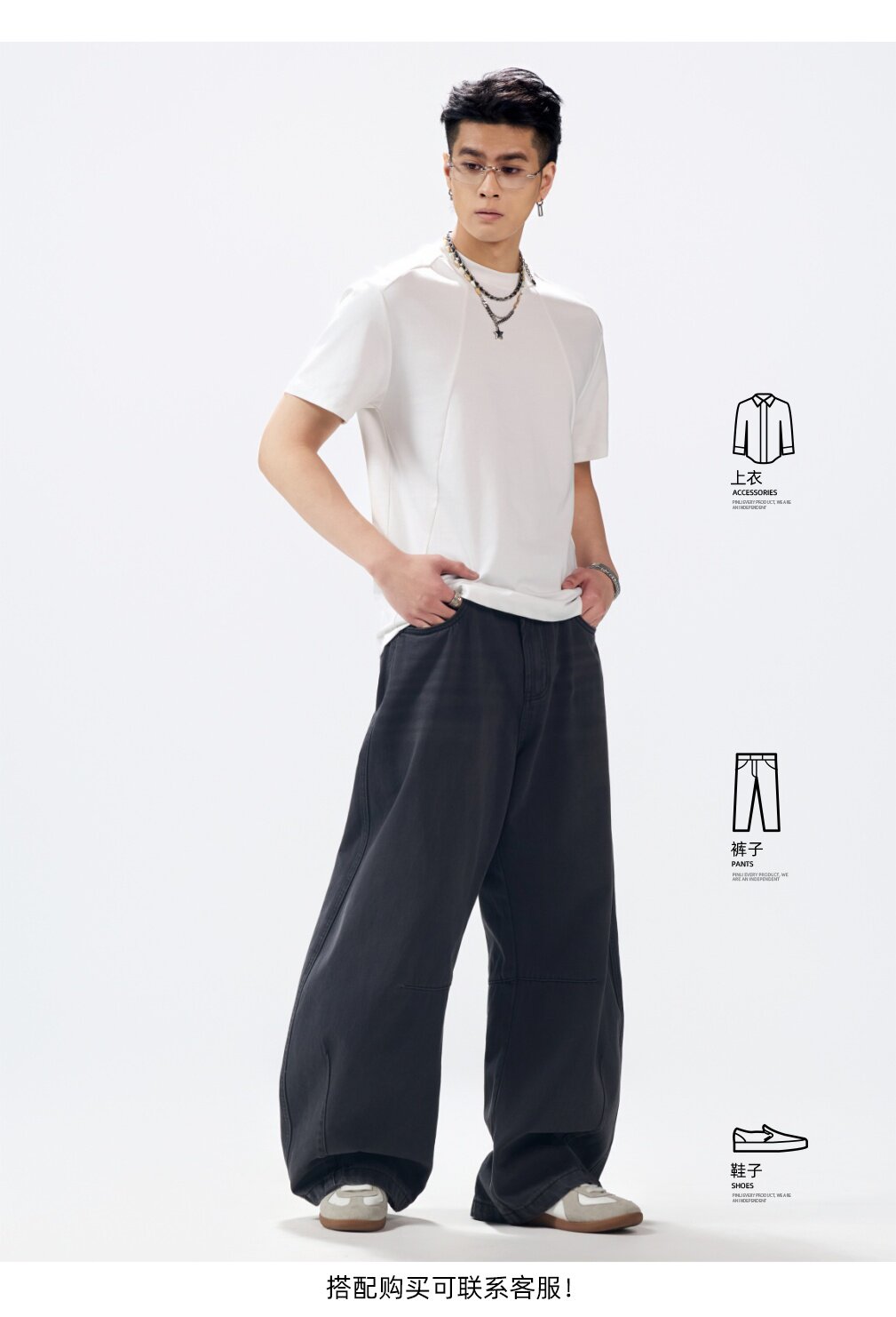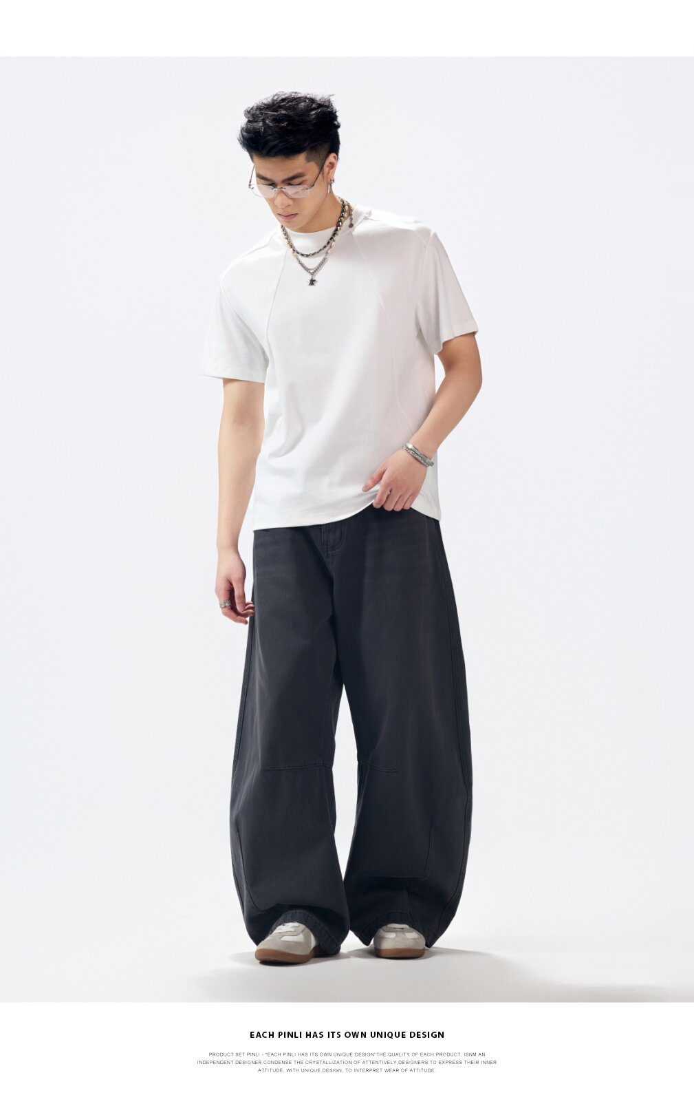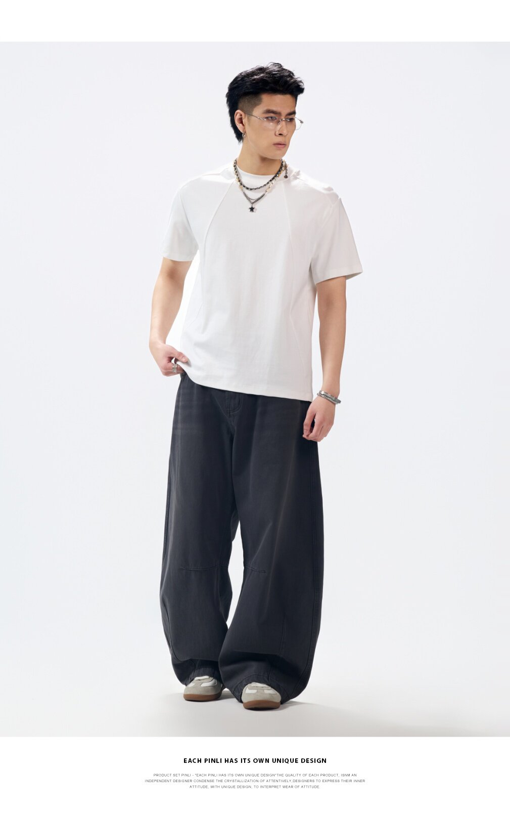 PINLI品立2026夏季新款青年纯色百搭圆领落肩袖短袖T恤上衣潮牌男GD262111046