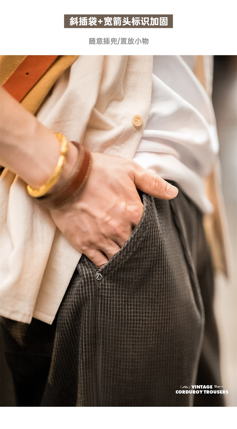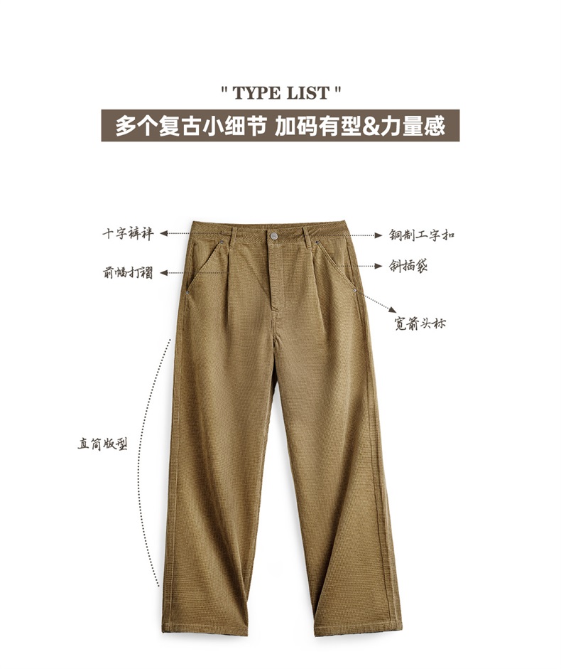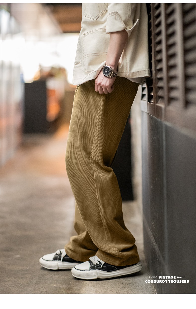 工装优选美式复古玉米粒灯芯绒休闲裤肌理感宽松纯棉直筒裤子男秋