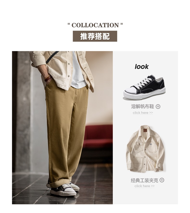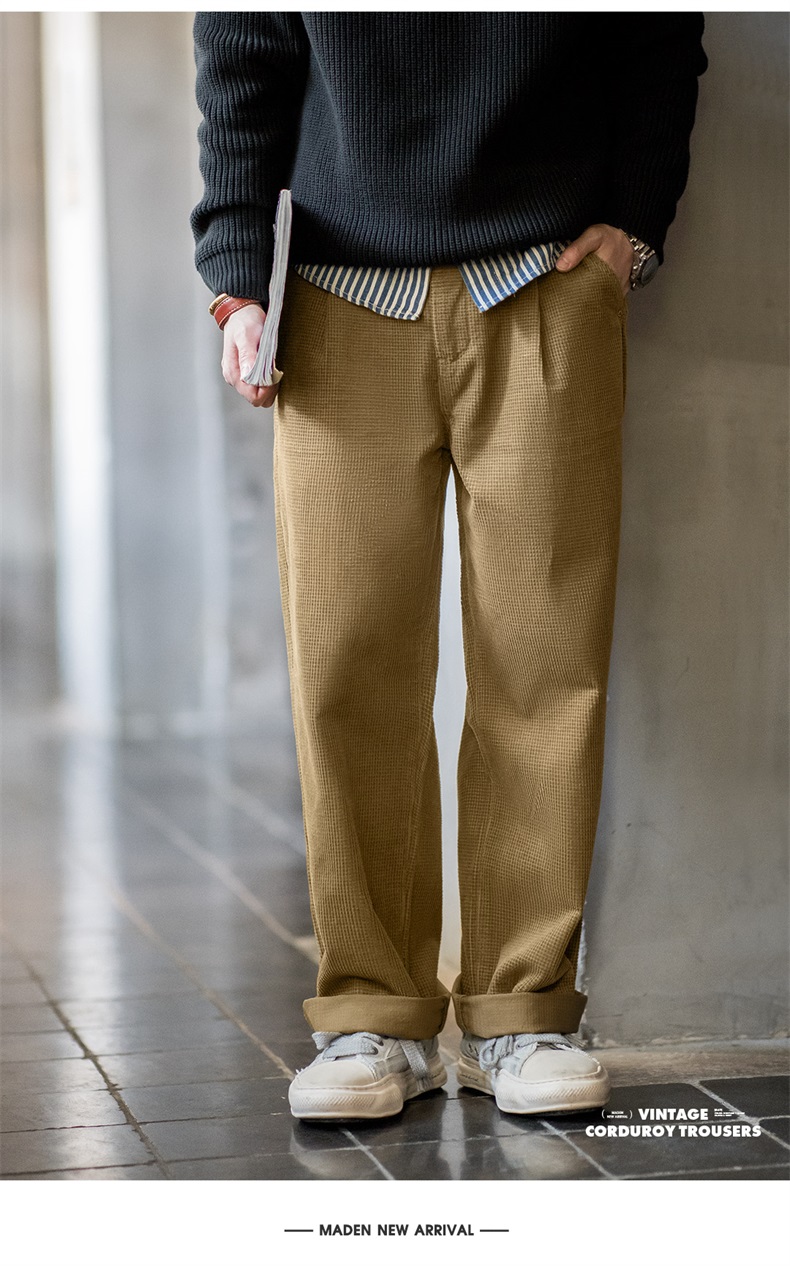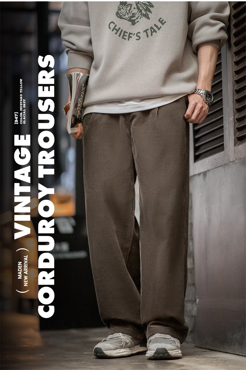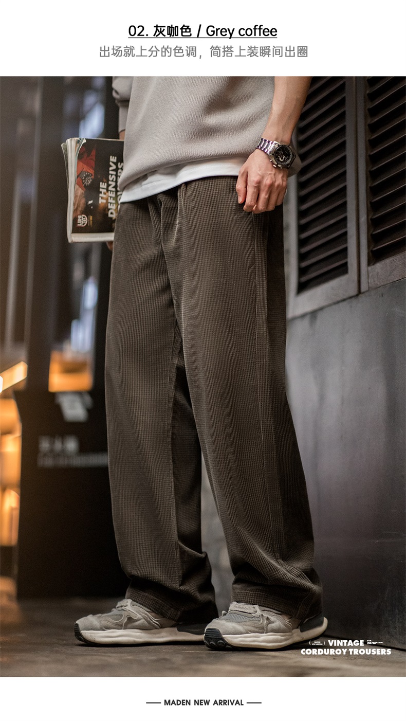 工装优选美式复古玉米粒灯芯绒休闲裤肌理感宽松纯棉直筒裤子男秋