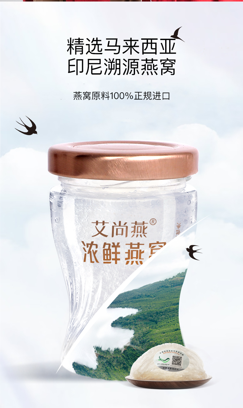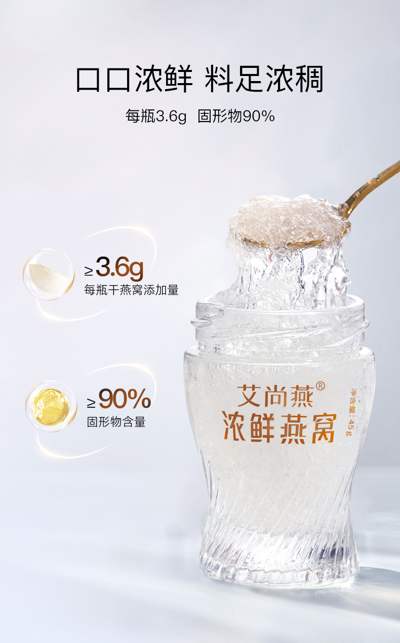 艾尚燕0糖即食燕窝45g10瓶浓度90%孕妇老人女性滋补营养节日送礼盒装