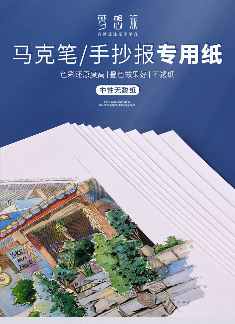 梦想派画纸专业马克纸/动漫纸/手抄报纸绘画不透纸纸张马克纸手抄报纸画纸a3a48k白卡纸