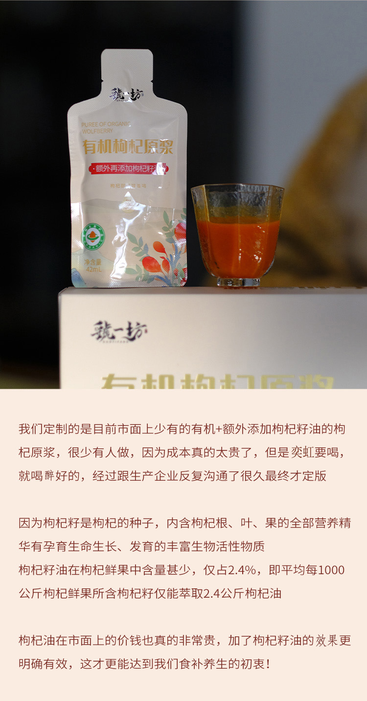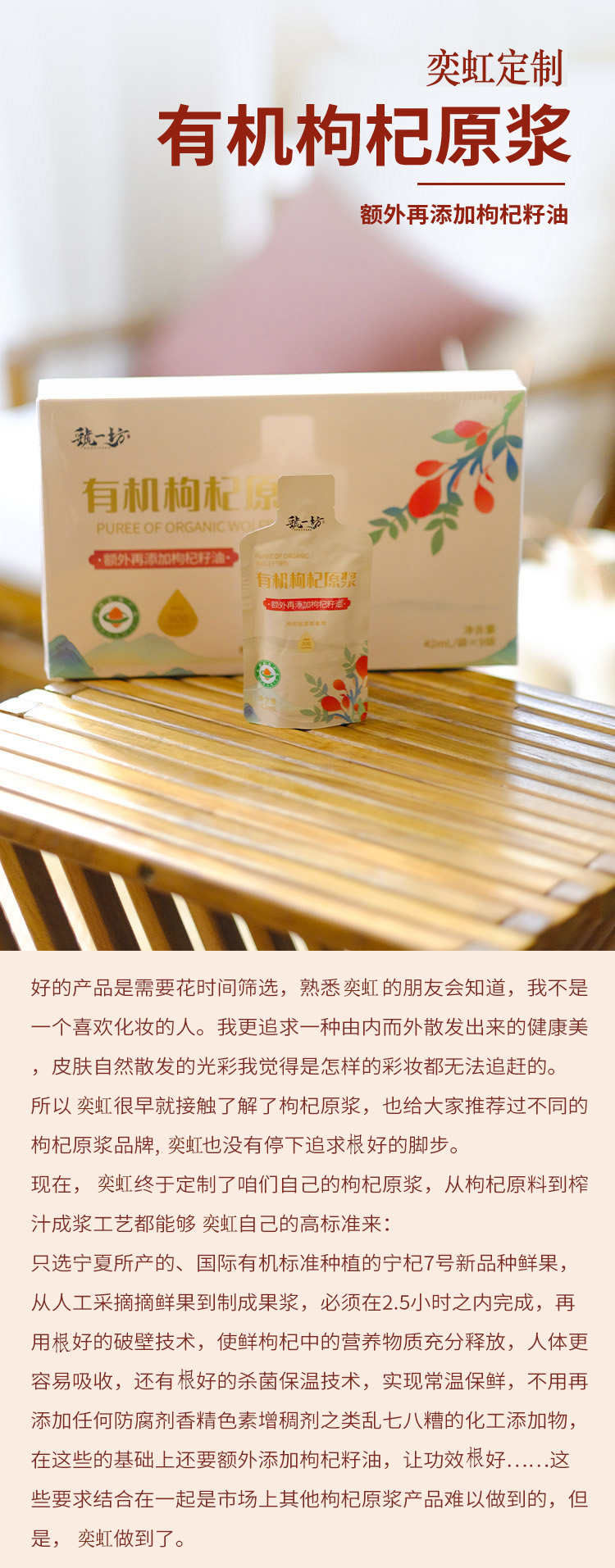 【春季护肝活动加量不加价】【枸杞原浆】奕虹定制,有机枸杞籽油原浆,额外添加枸杞籽油 多国有机认证 宁夏宁杞7号鲜果 采摘到成浆仅2.5小时 高压微粒化技术 无任何添加剂 国际食品安全三认证