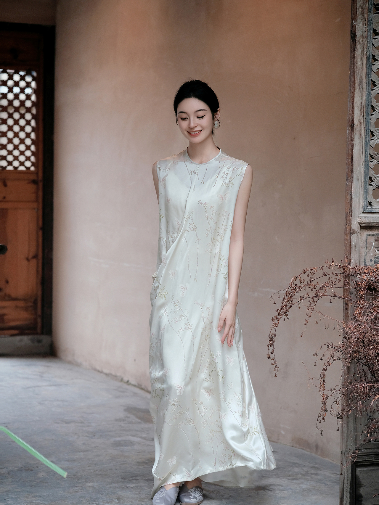 盛唐牡丹| 文竹戏蝶真丝提花长裙
