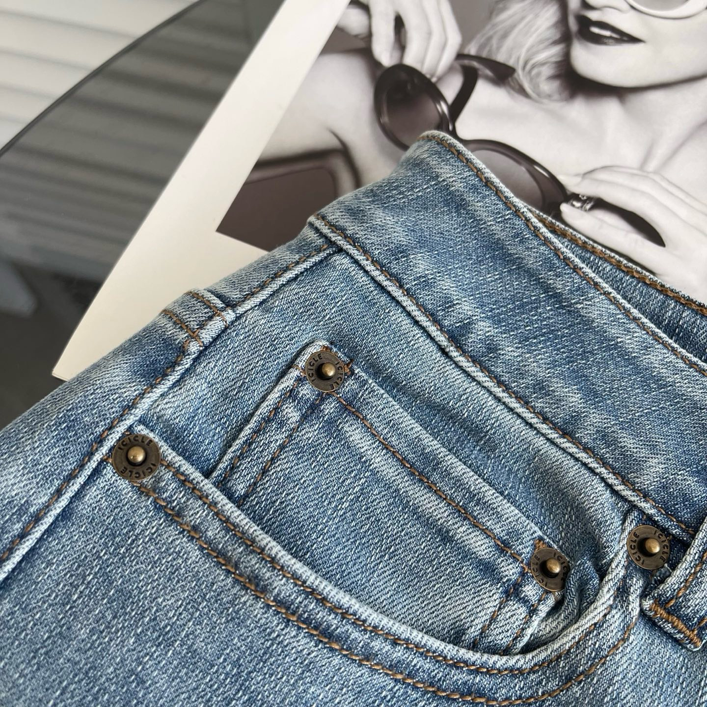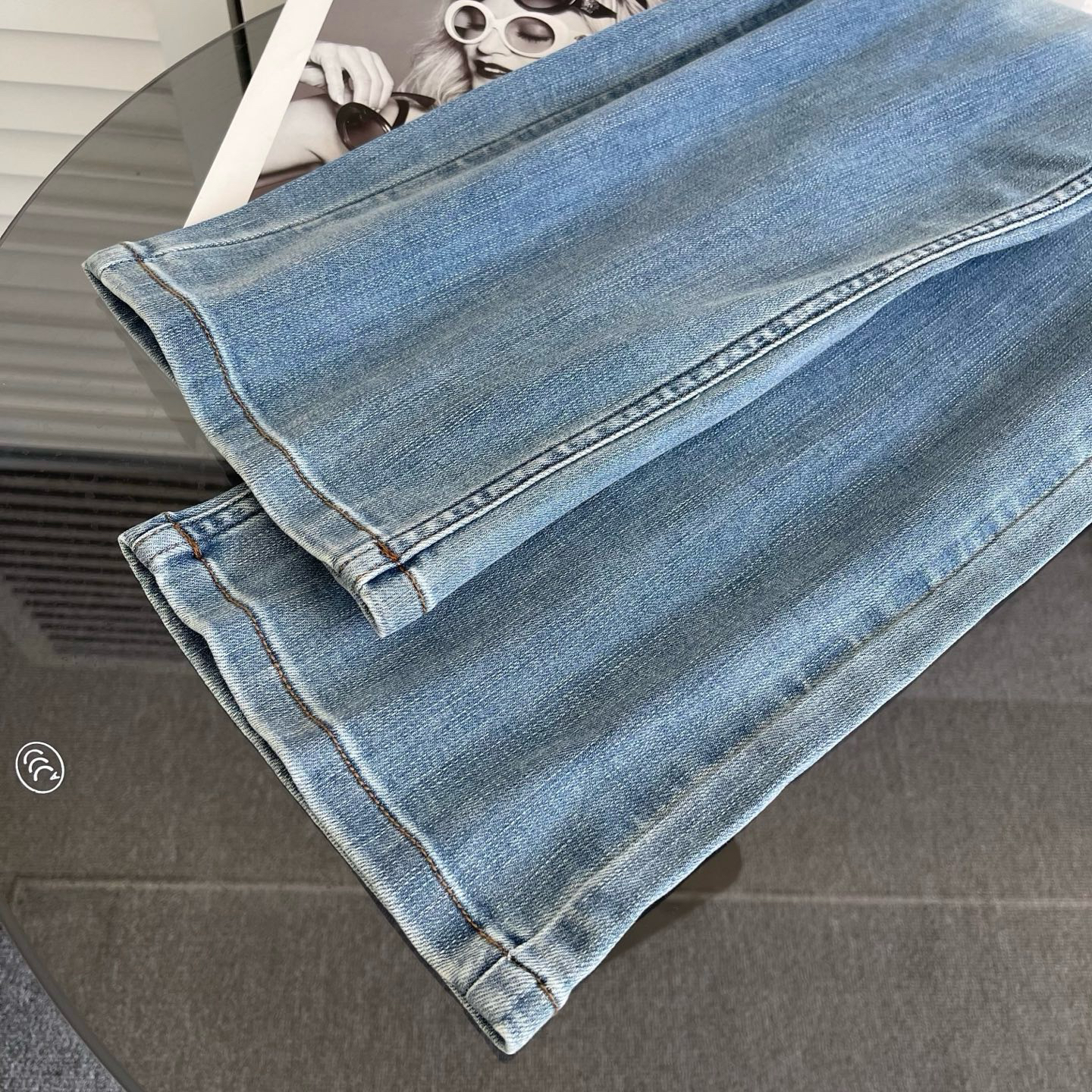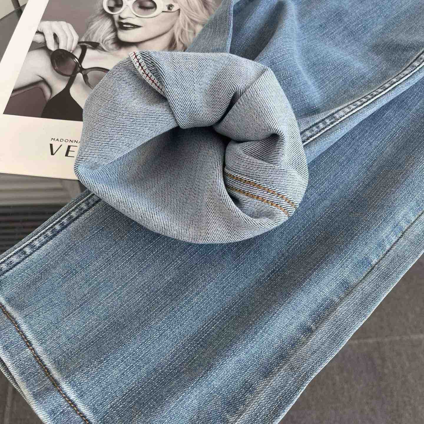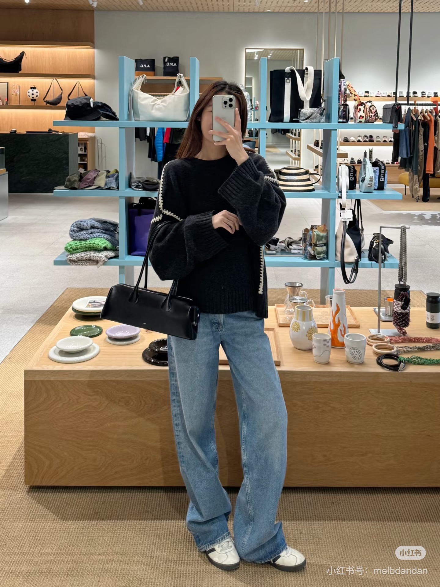 浅蓝水洗牛仔,做旧纹理自带复古滤镜,高腰直筒,悄悄拉长腿部线条,梨形身材也能穿出“腿精”既视感