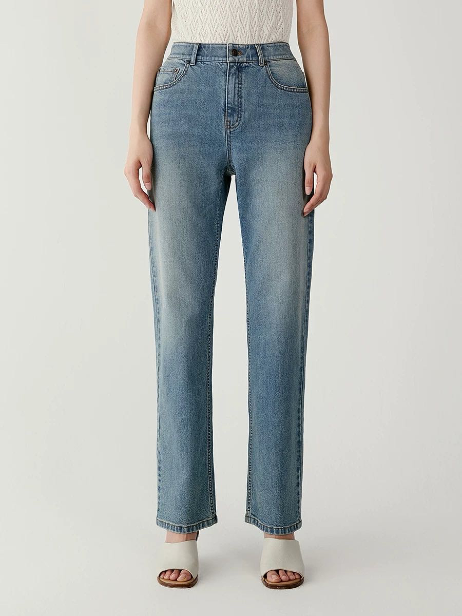 小禾 水洗蓝 随性 小直筒 牛仔裤