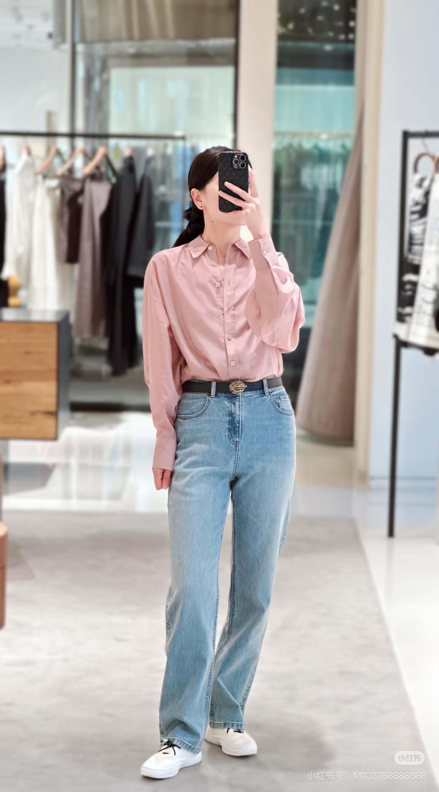 搭配白衬衫+细腰带,塞衣角优化比例,通勤时干练利落