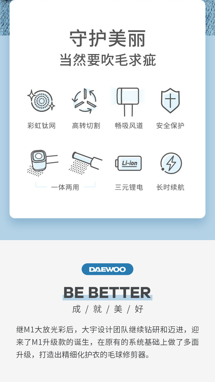 *韩国大宇毛球修剪器M1pro充电式剃毛机衣服去刮除毛球家用神器