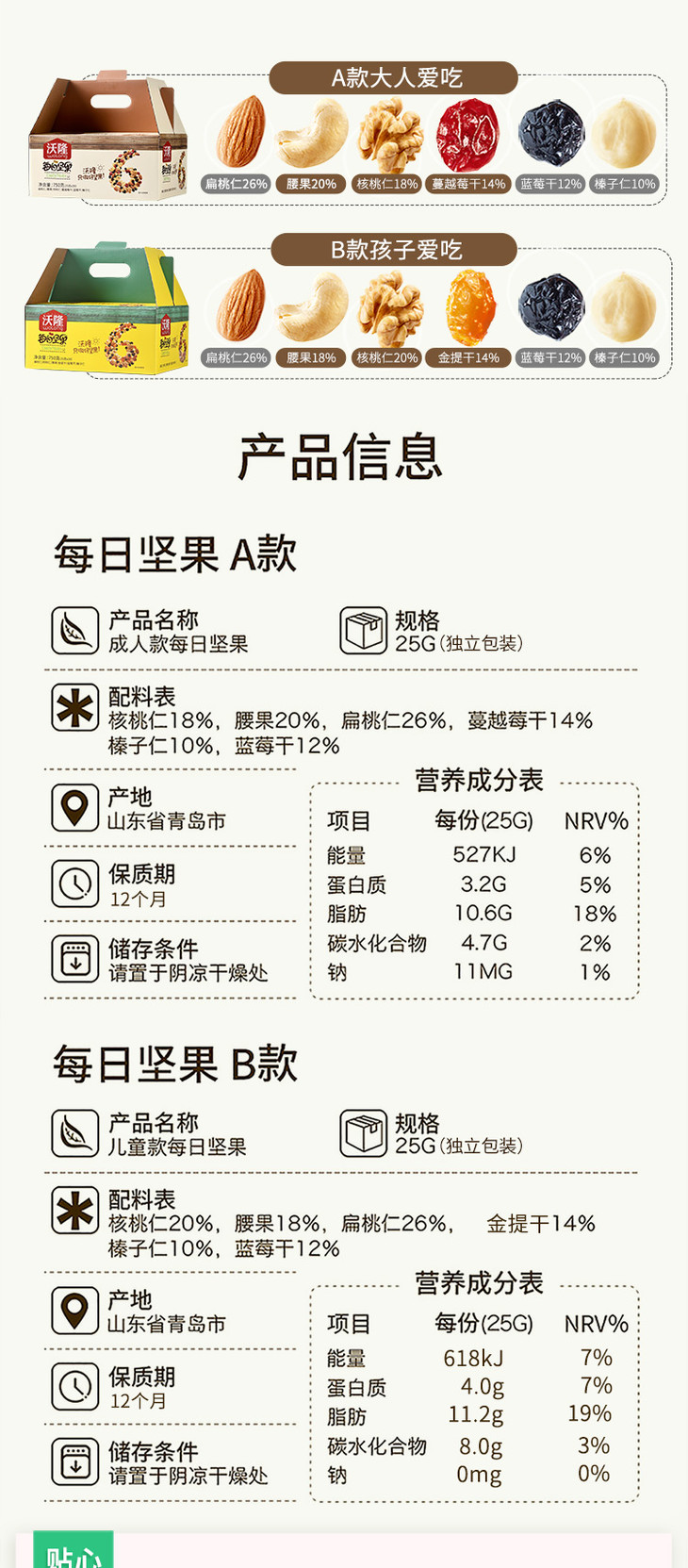 【团购】沃隆每日坚果25g*30袋750g