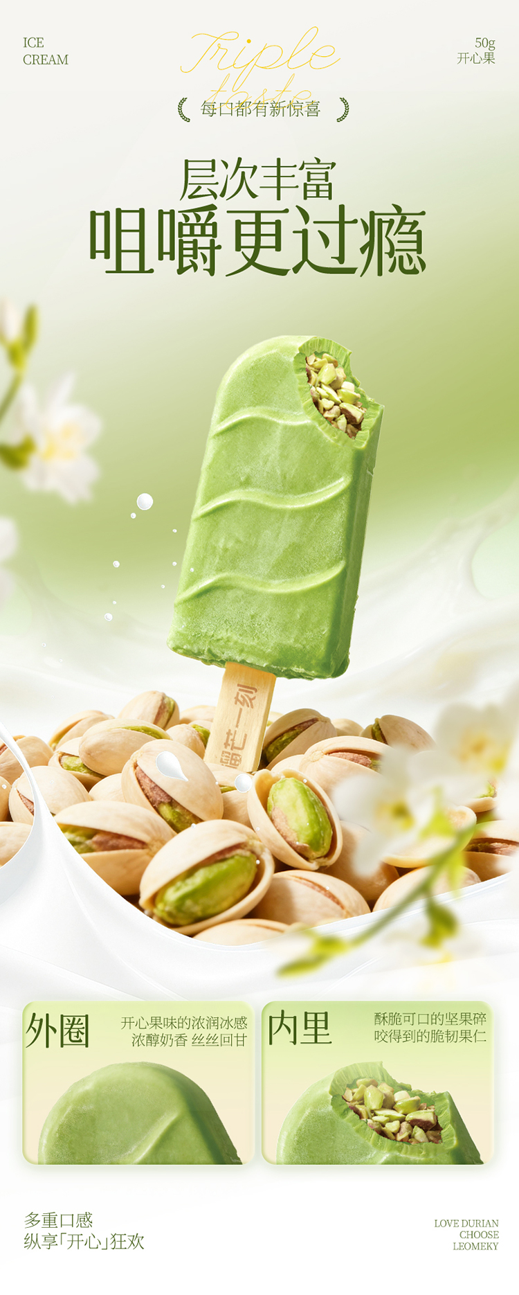 【129元任选10件】榴芒一刻开心果牛乳冰淇淋50克/支